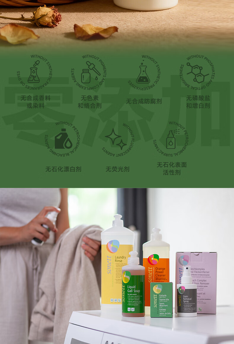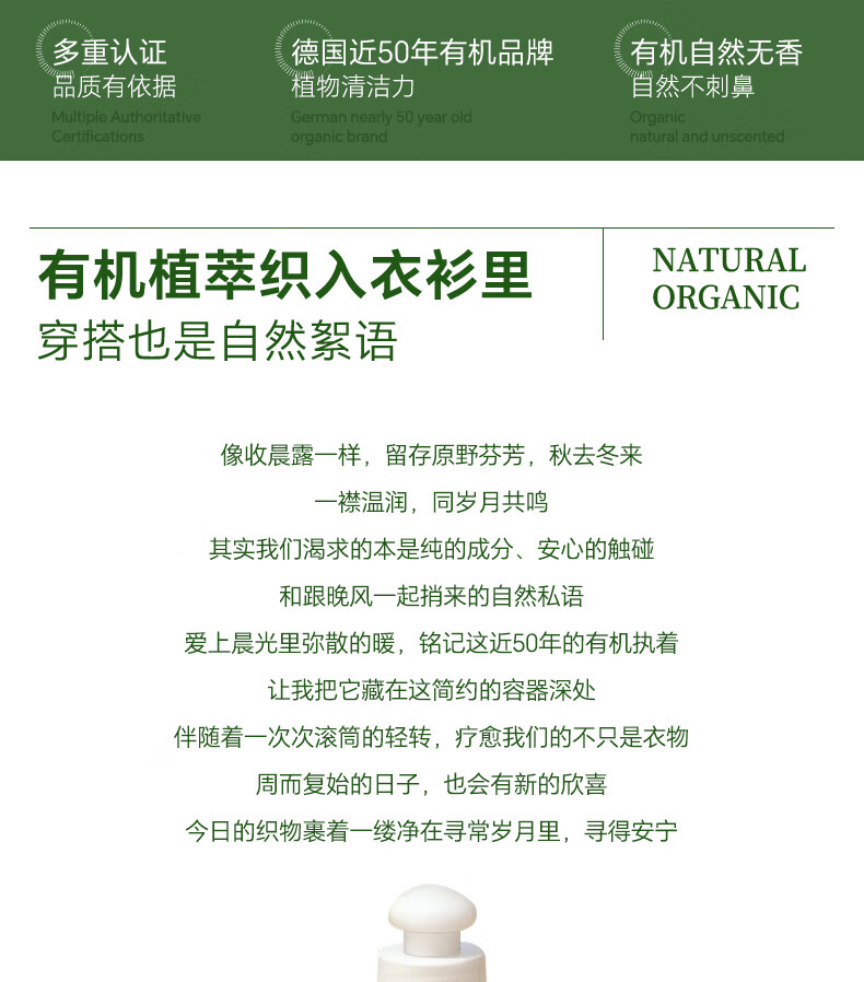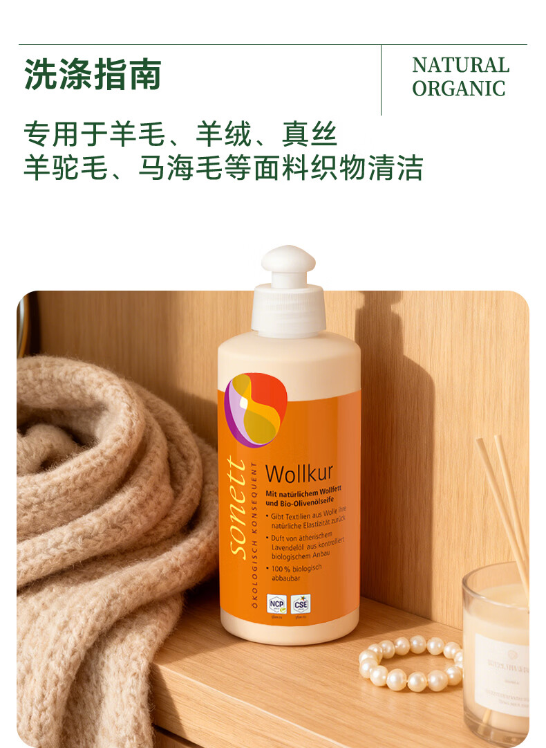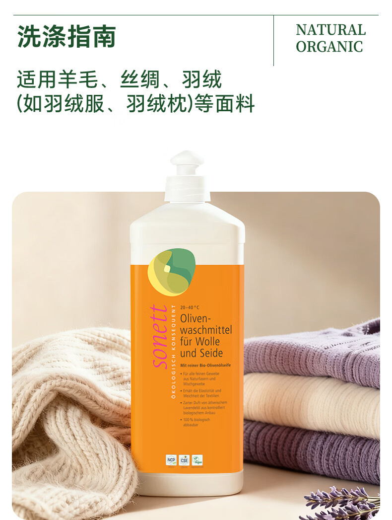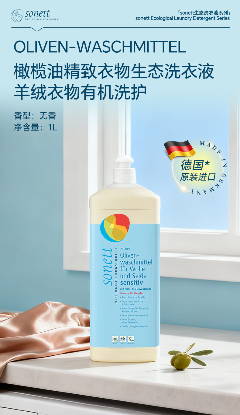 sonett裳奈进口真丝羊毛洗衣液护衣护色天然有机清洁剂蓬松固色 橄榄油无香1L