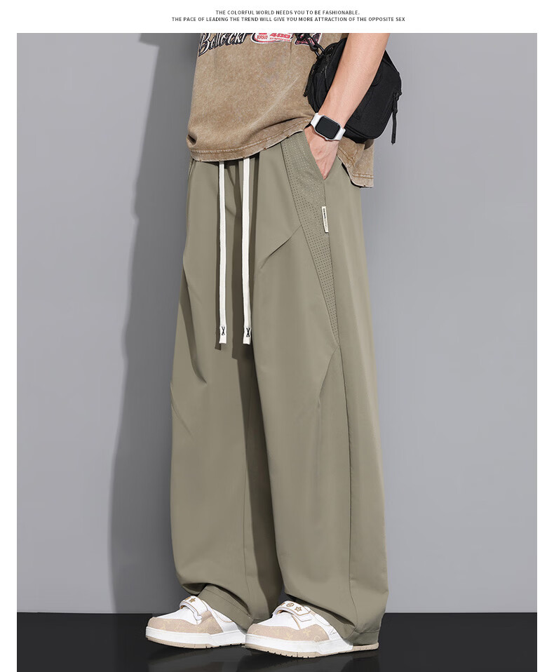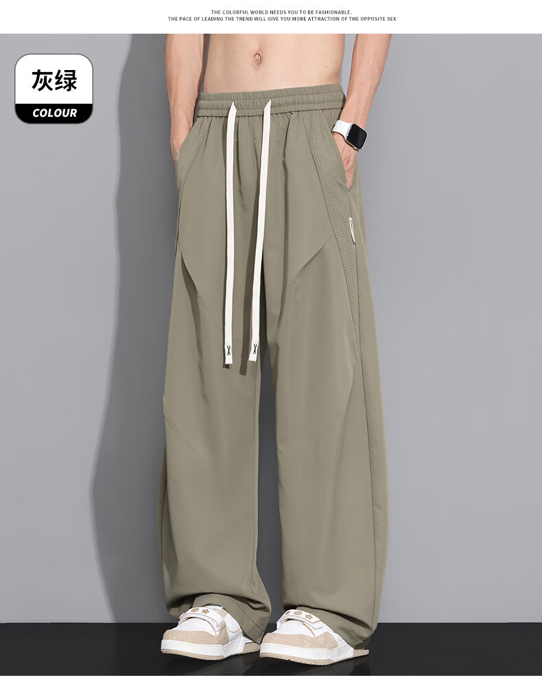 ROYAL PALM POLO SPORTS CLUB美式运动休闲裤男士夏季薄款宽松直筒阔腿大码潮流长裤子男 绿灰色 XL