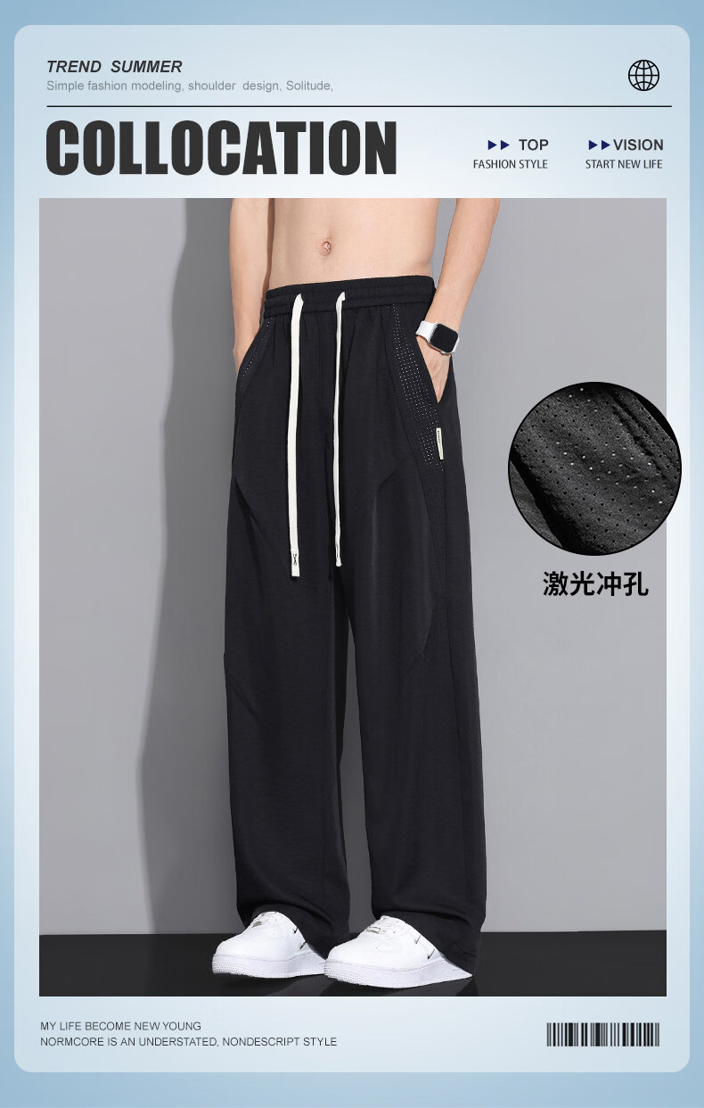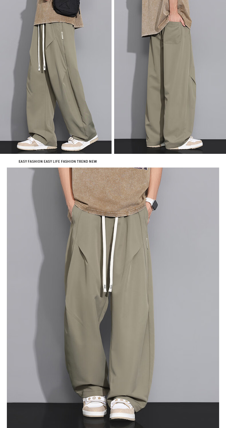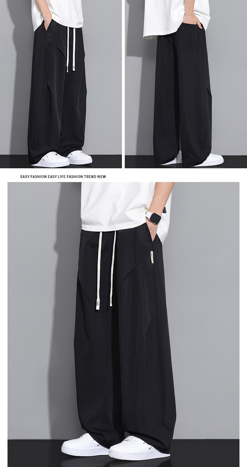 BAA AND BAA垂感裤子男春夏季潮牌宽松直筒阔腿裤2025新款男士休闲百搭长裤 黑色春秋款 C138-OPX M 【建议80-105斤】