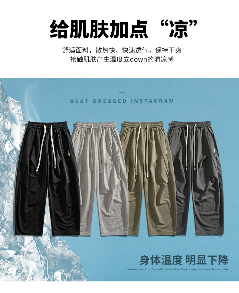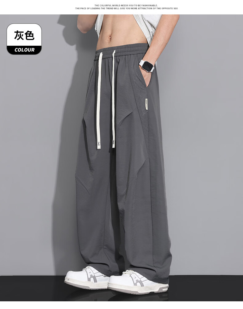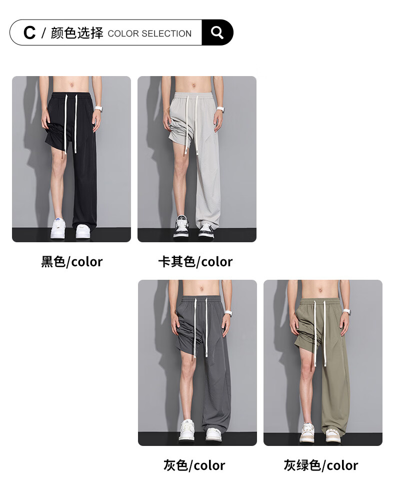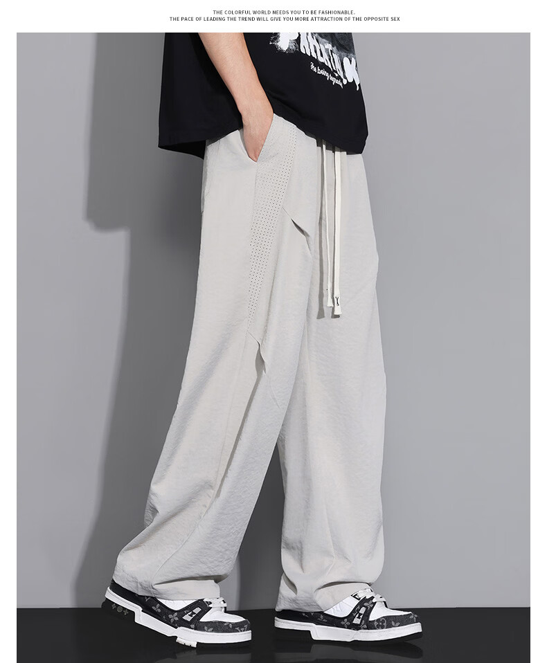 BAA AND BAA垂感裤子男春夏季潮牌宽松直筒阔腿裤2025新款男士休闲百搭长裤 黑色春秋款 C138-OPX M 【建议80-105斤】