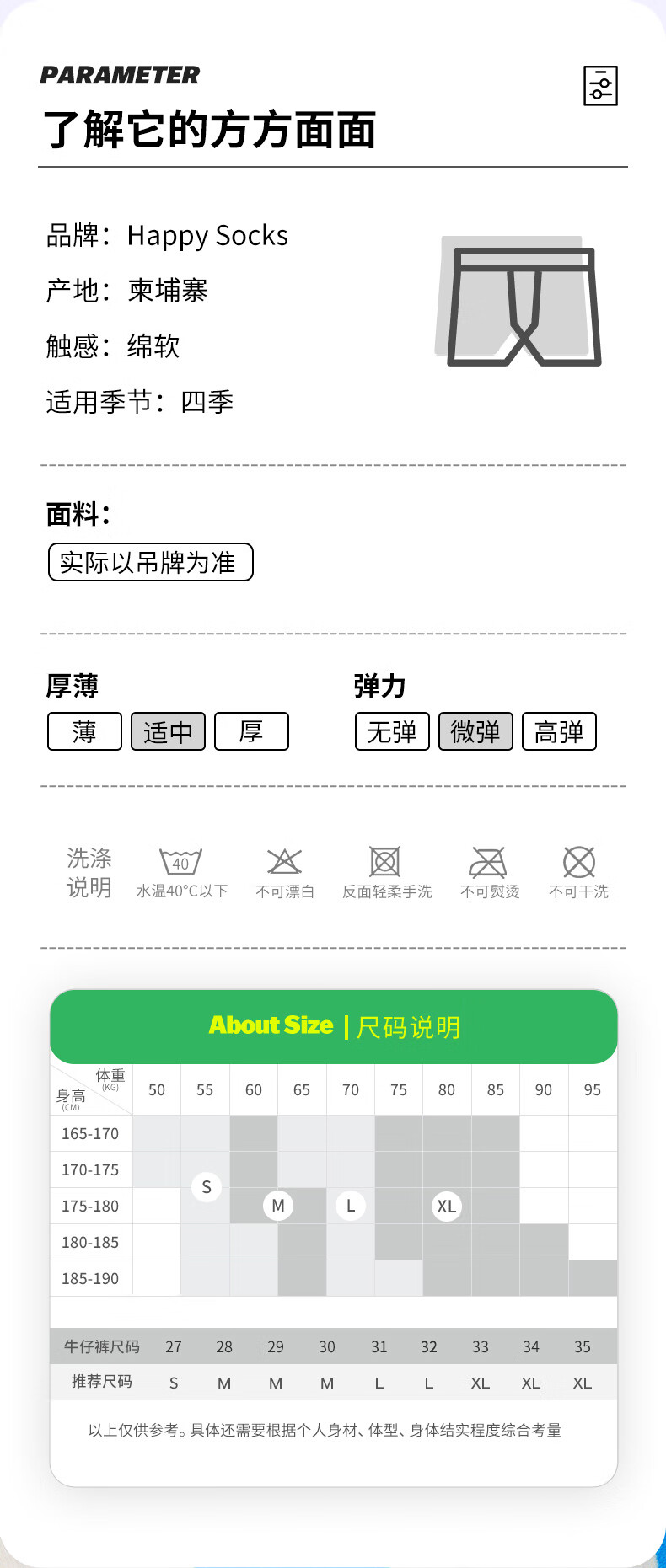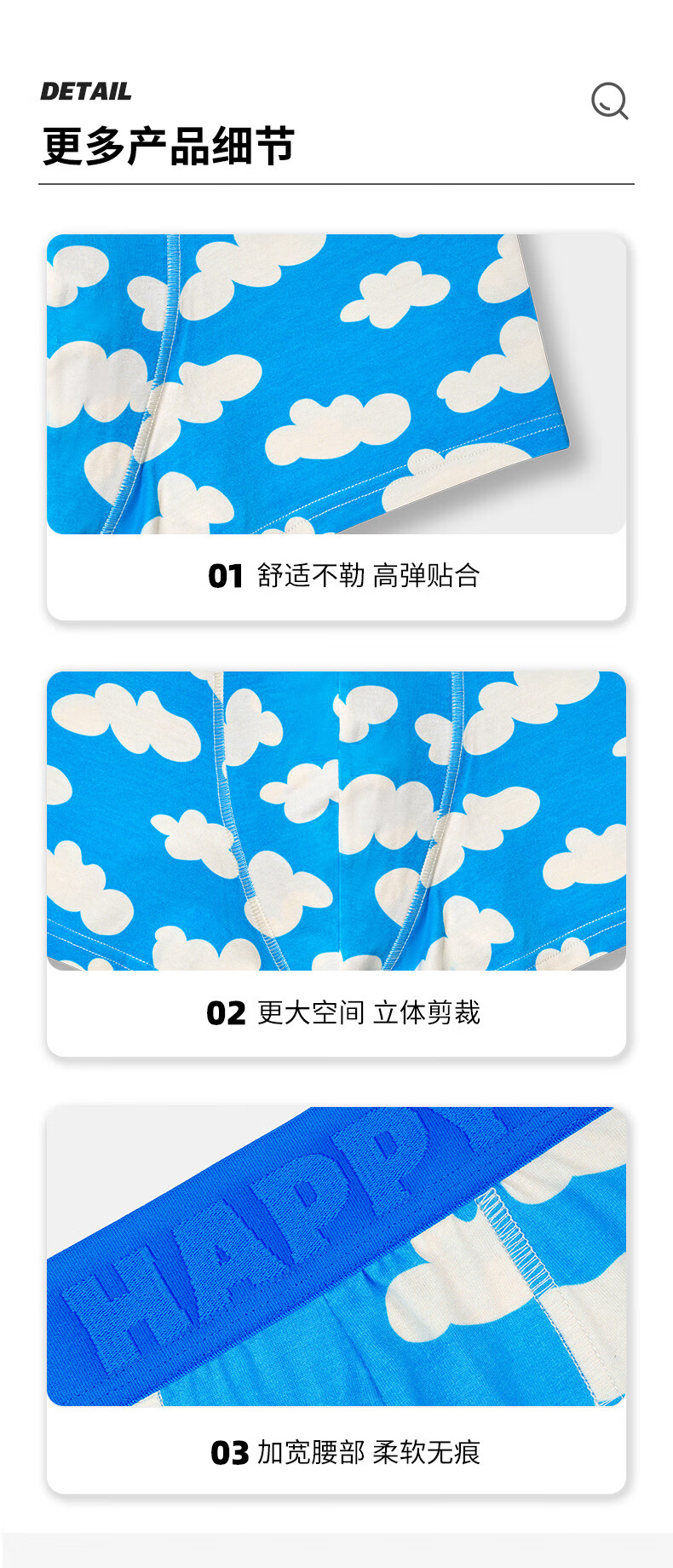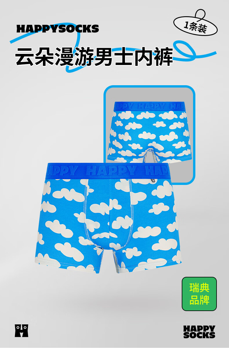 Happy Socks瑞典潮牌云朵男士内裤时尚四角裤平角裤 M