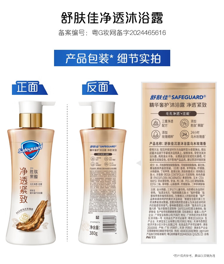 舒肤佳净透沐浴露乌木玫瑰380g添加胜肽紧致持久留香