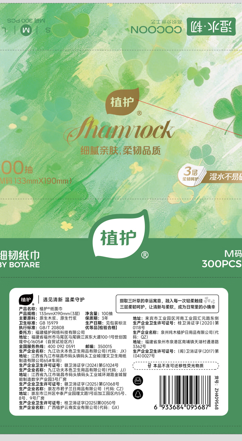 植护三叶草细韧抽纸3层110抽24包亲肤柔韧餐巾纸擦手用纸家庭整箱装