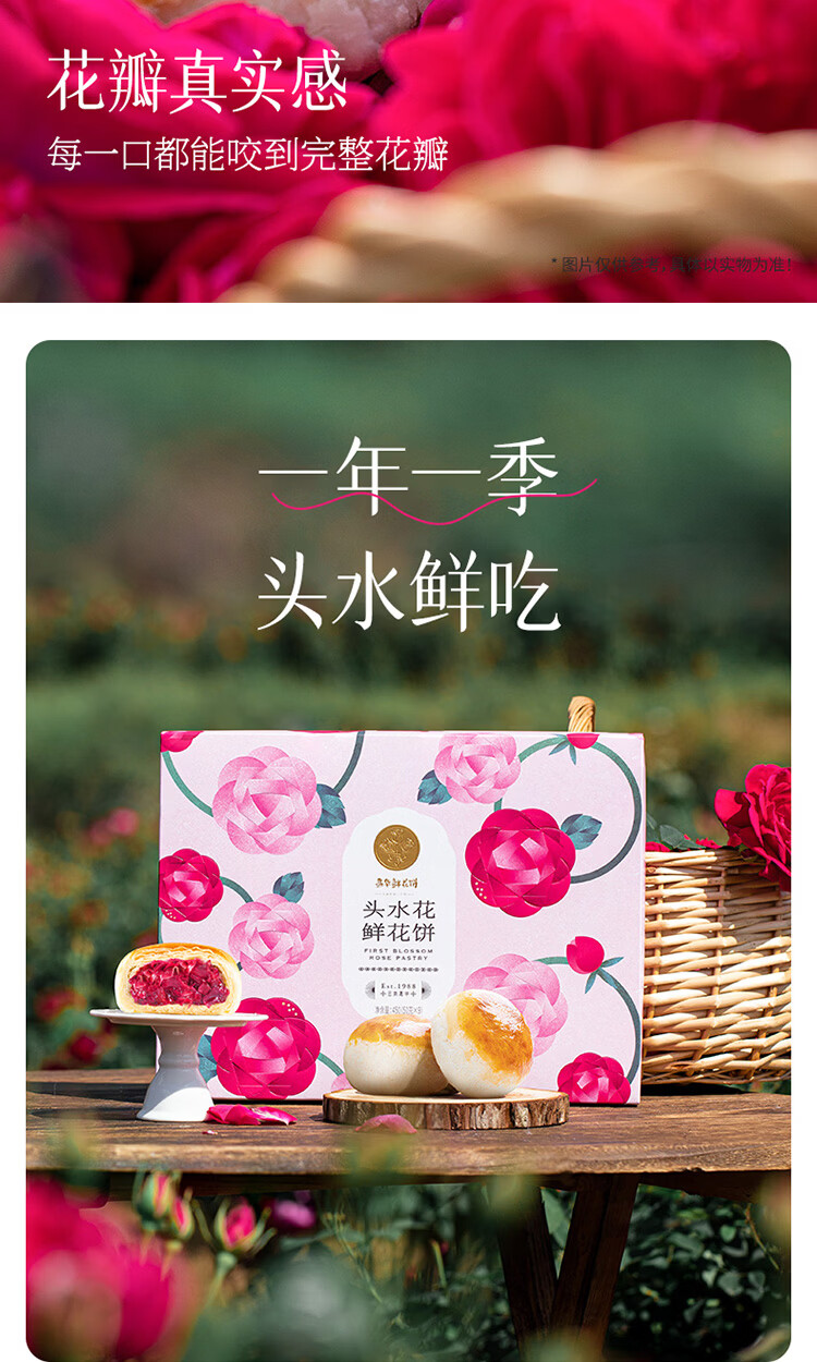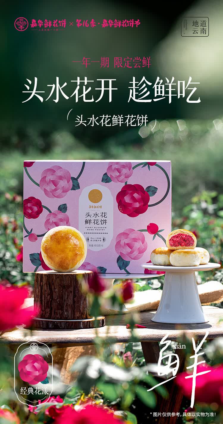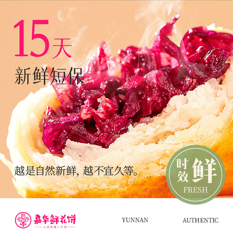 嘉华鲜花饼头水花现烤玫瑰饼450g 休闲零食早餐糕点源头直发包邮