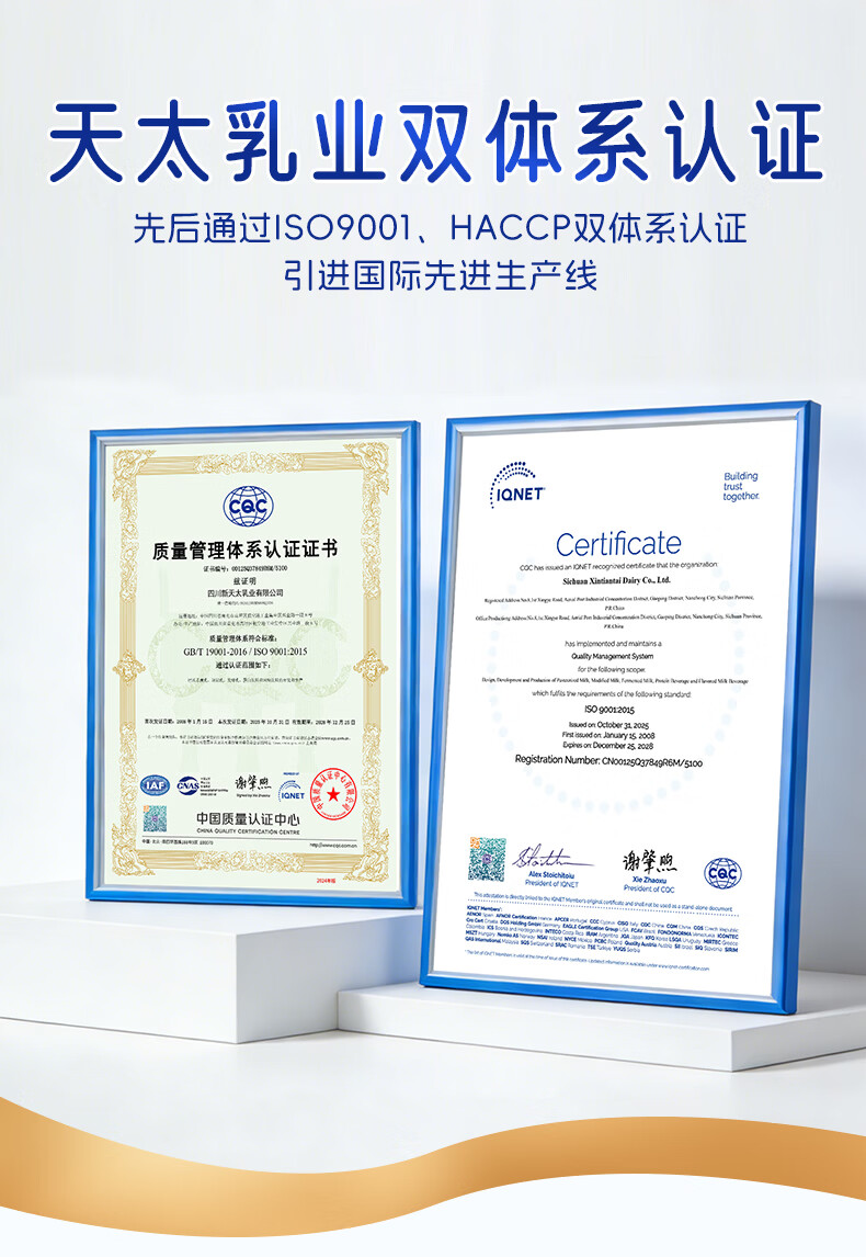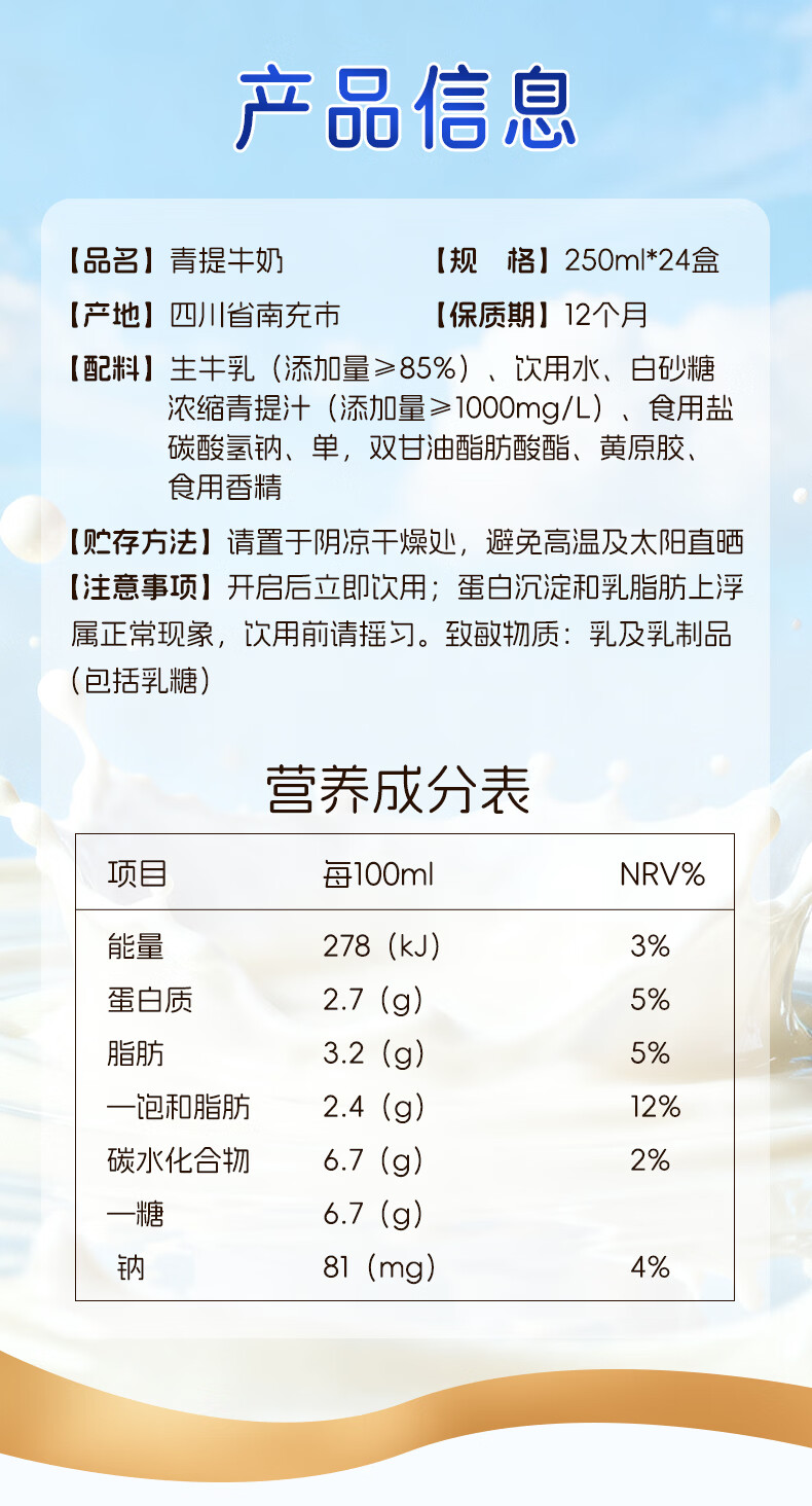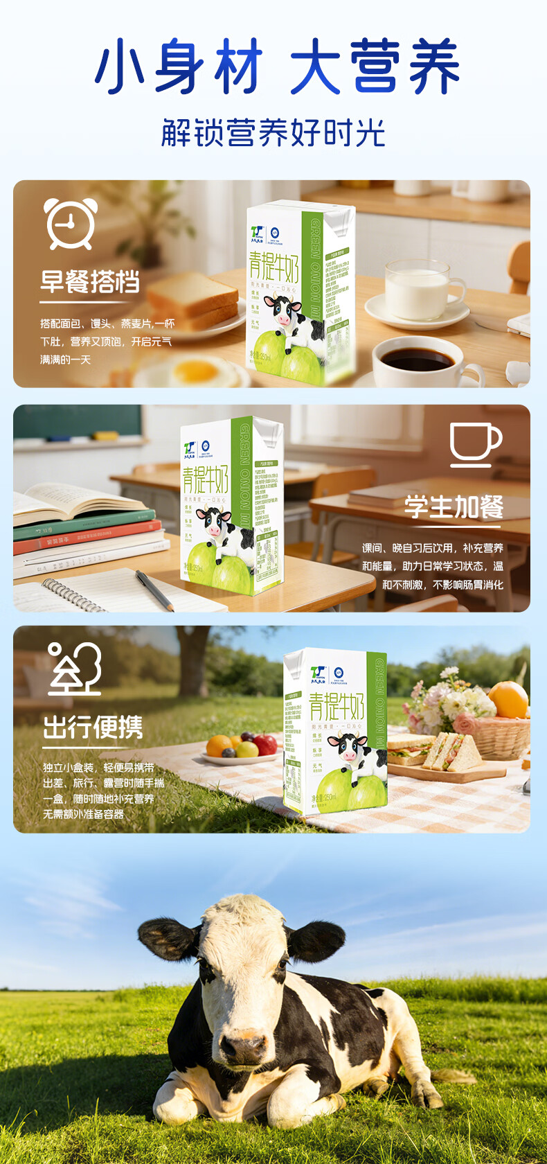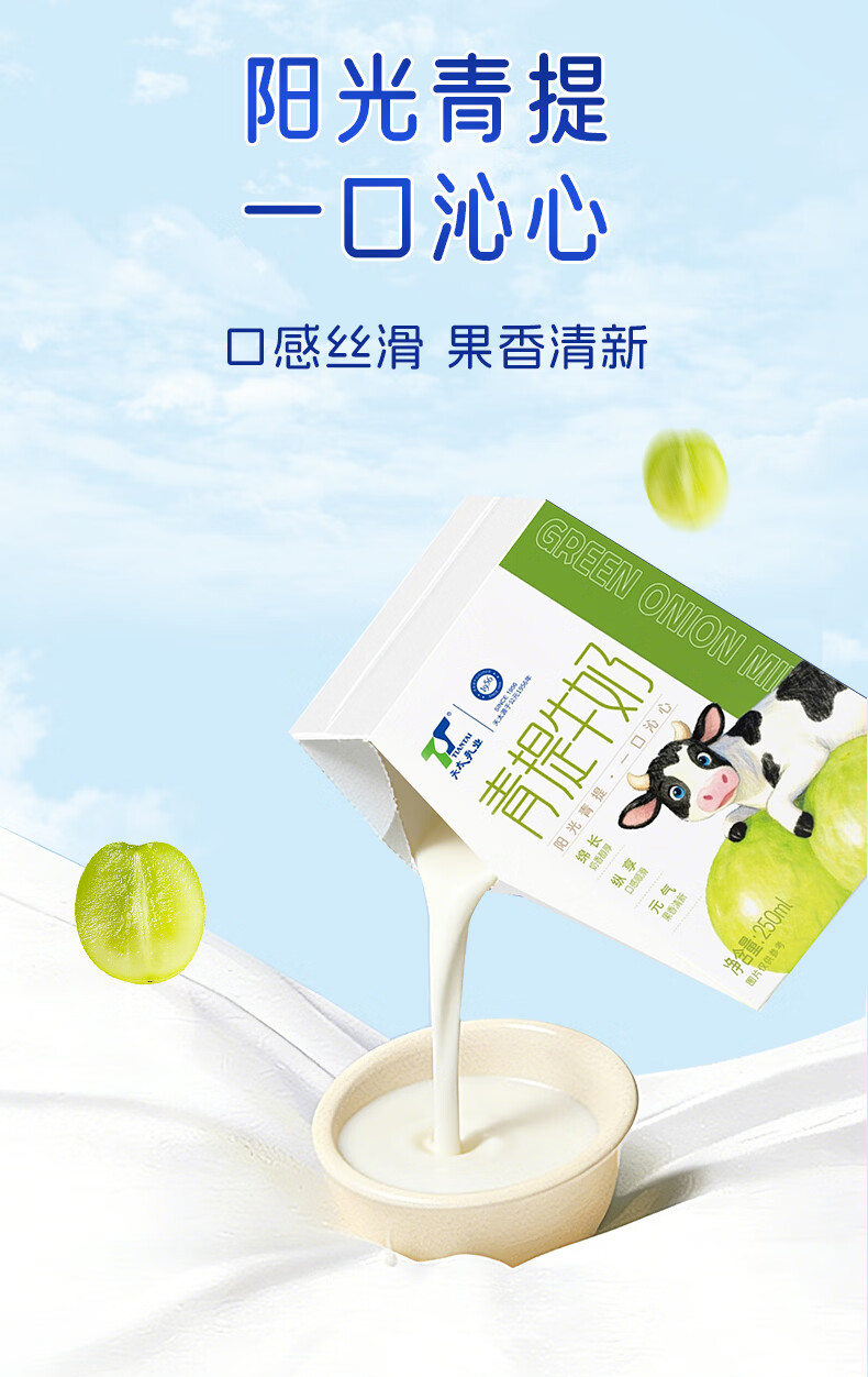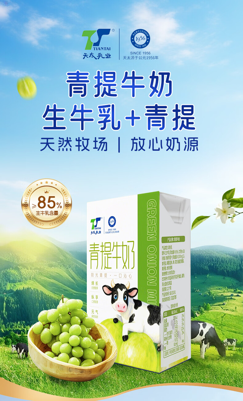 天太乳业【新日期】 2.7g/100ml蛋白质青提牛奶250ml*24盒 整箱礼盒装