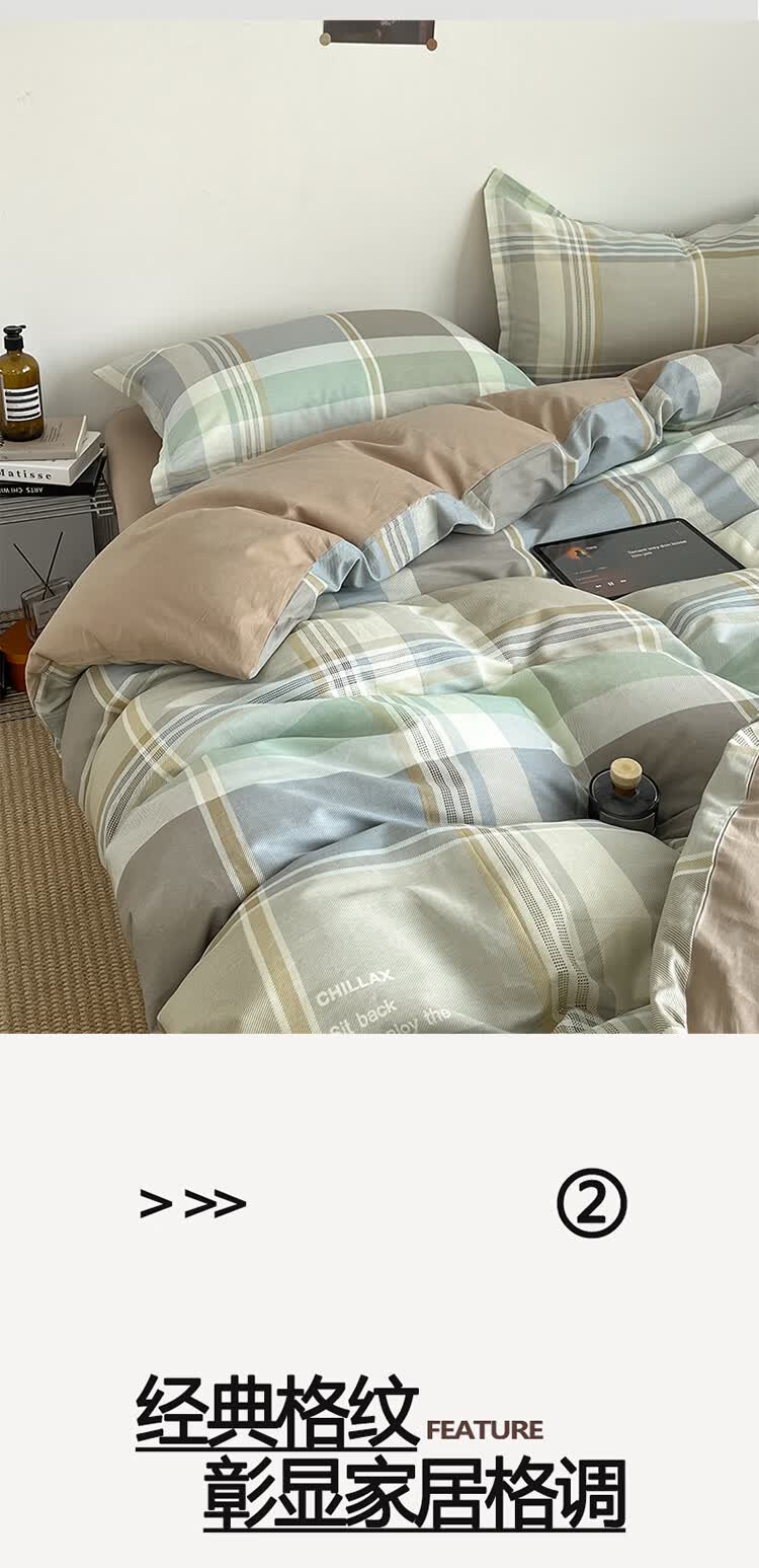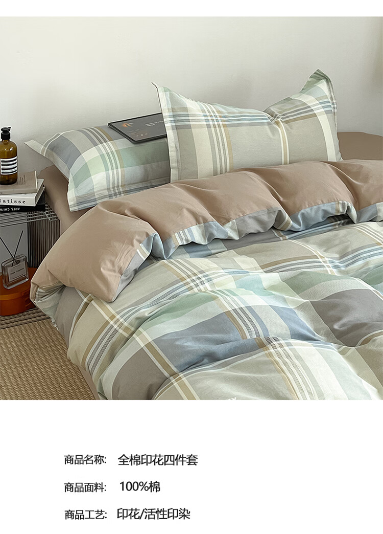 无印良品床上四件套纯棉100%全棉可裸睡单双人家用宿舍床单床笠三件套被套 卡希亚【100%全棉 四季通用】 1.8m 床单款 四件套-被套200*230cm