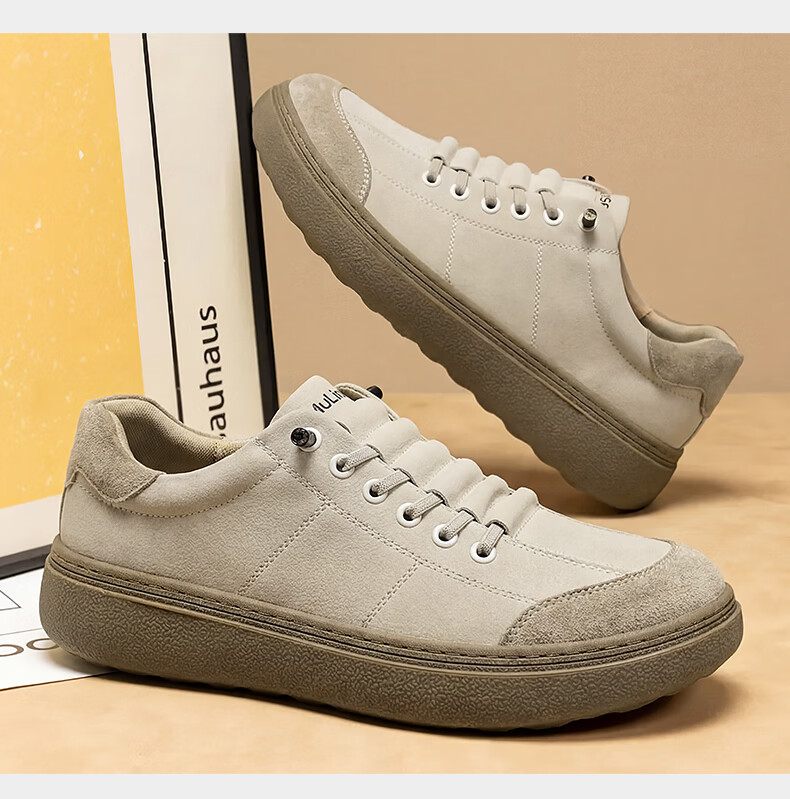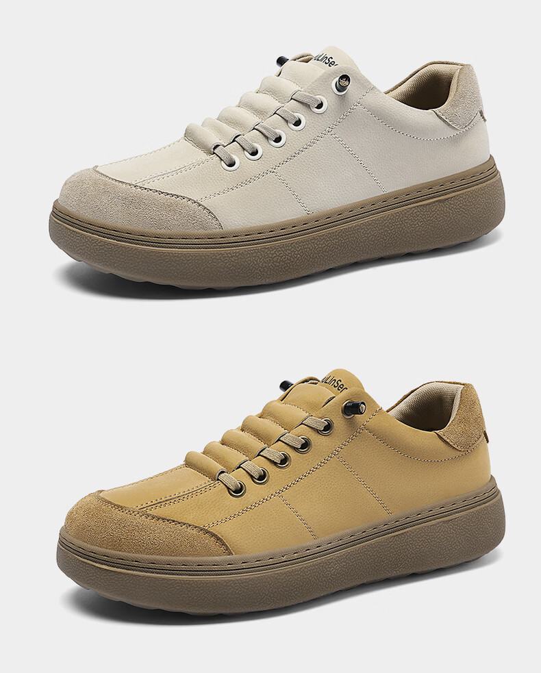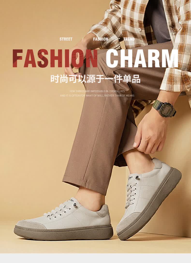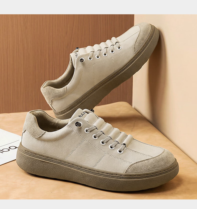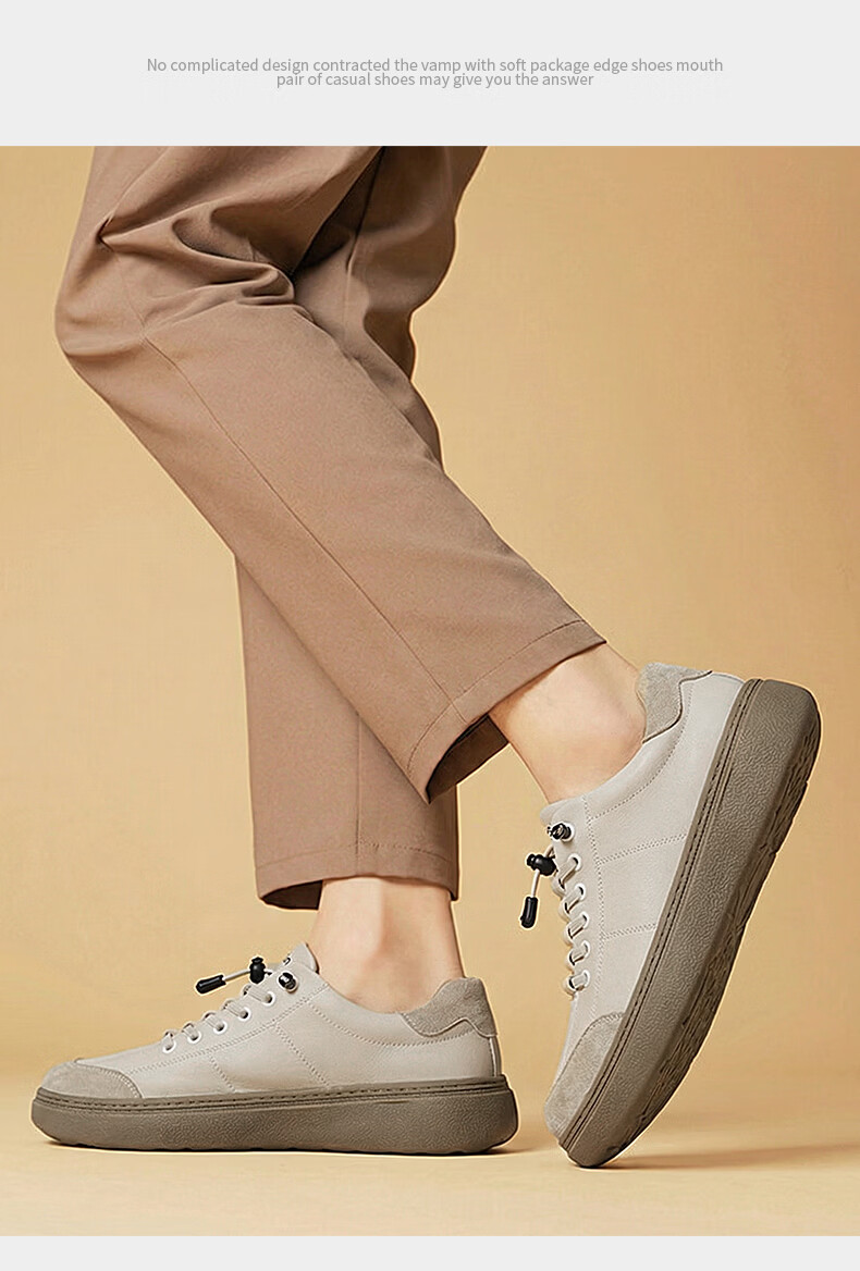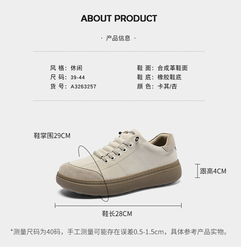 木林森板鞋男厚底增高休闲鞋透气青年时尚百搭运动手工缝线免系带男鞋 卡其 38