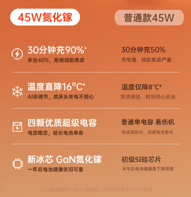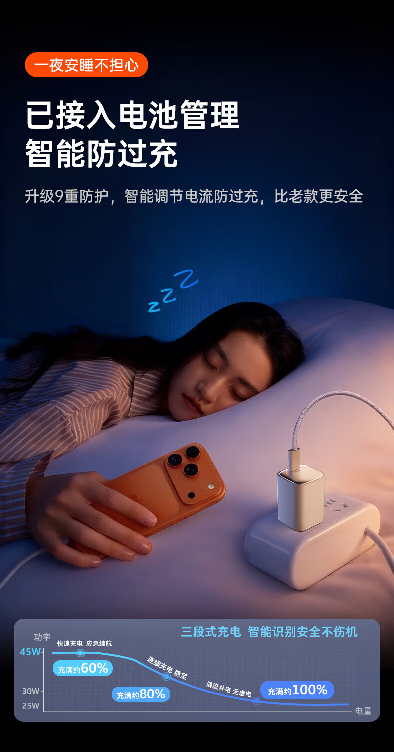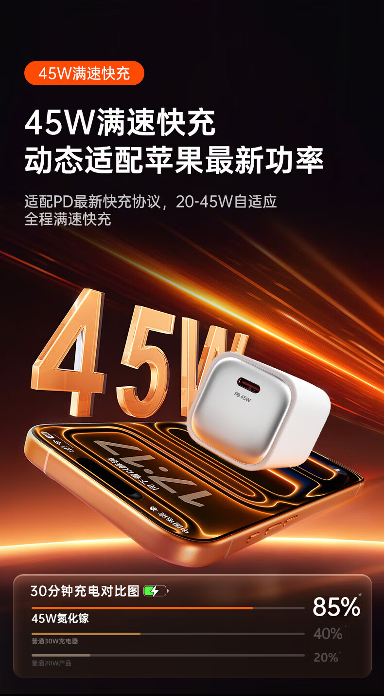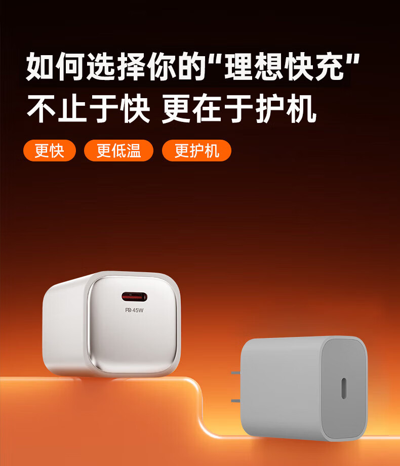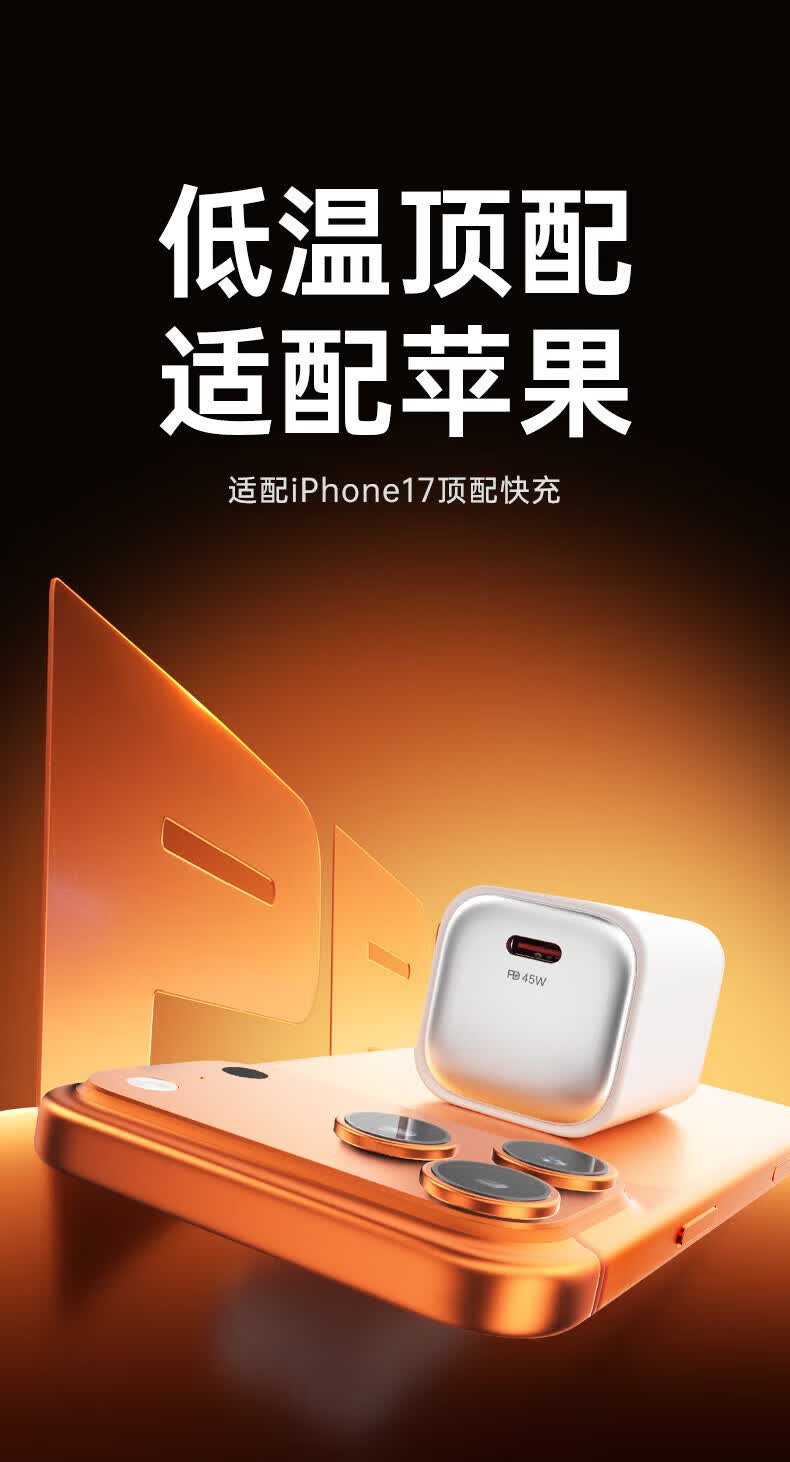 Viken【低温快充丨不伤机】适配苹果17/16/15充电器头45w适配iPhone17pro/promax/16/15氮化镓快充套装 适配苹果45W氮化镓单头+1米双C线丨动态调节功率
