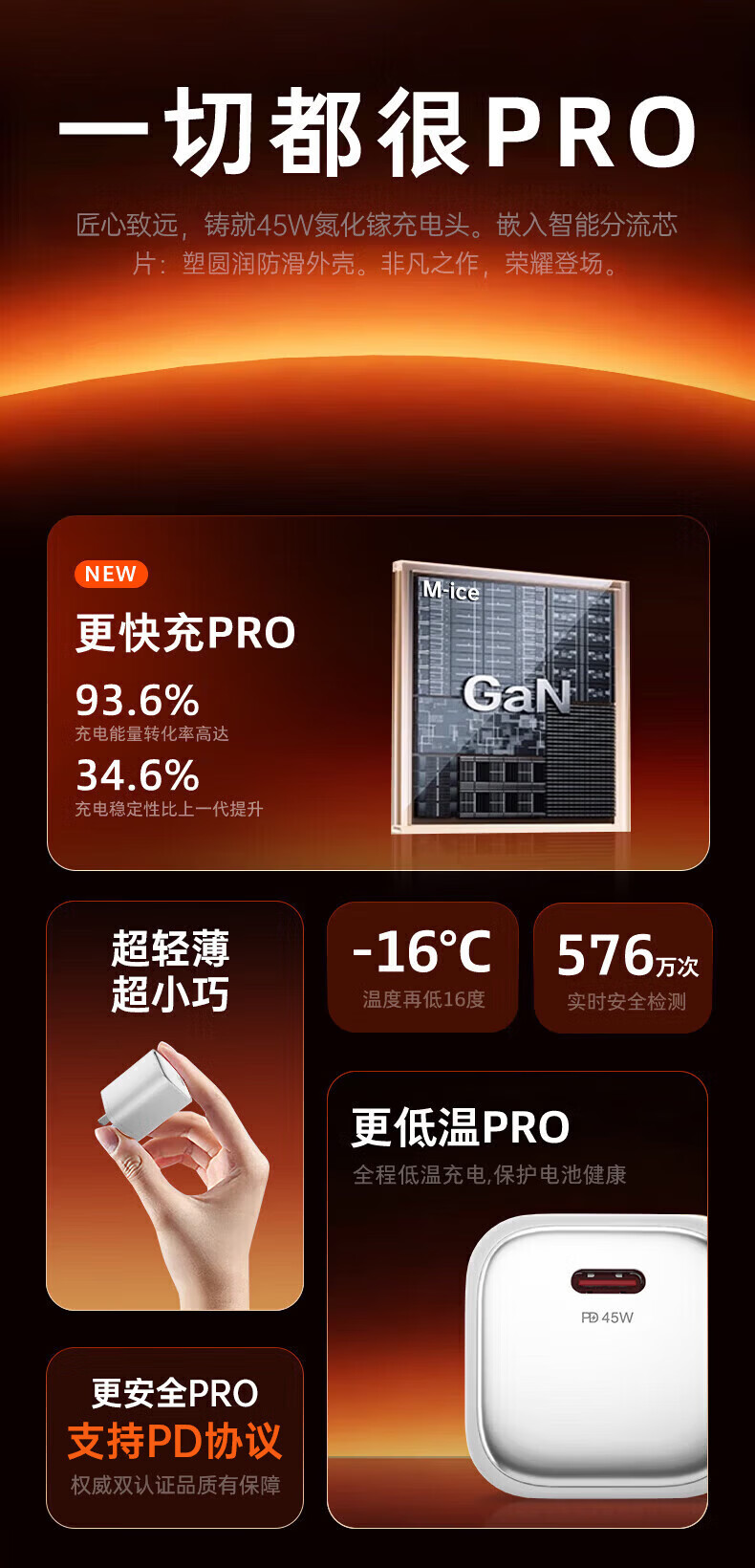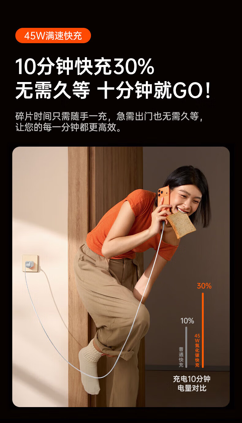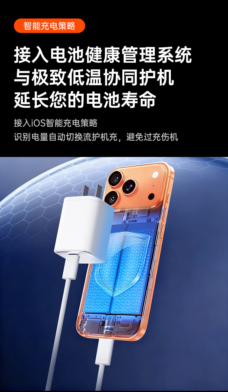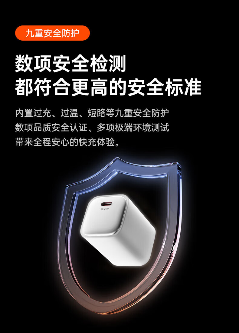 Viken【低温快充丨不伤机】适配苹果17/16/15充电器头45w适配iPhone17pro/promax/16/15氮化镓快充套装 适配苹果45W氮化镓单头+1米双C线丨动态调节功率