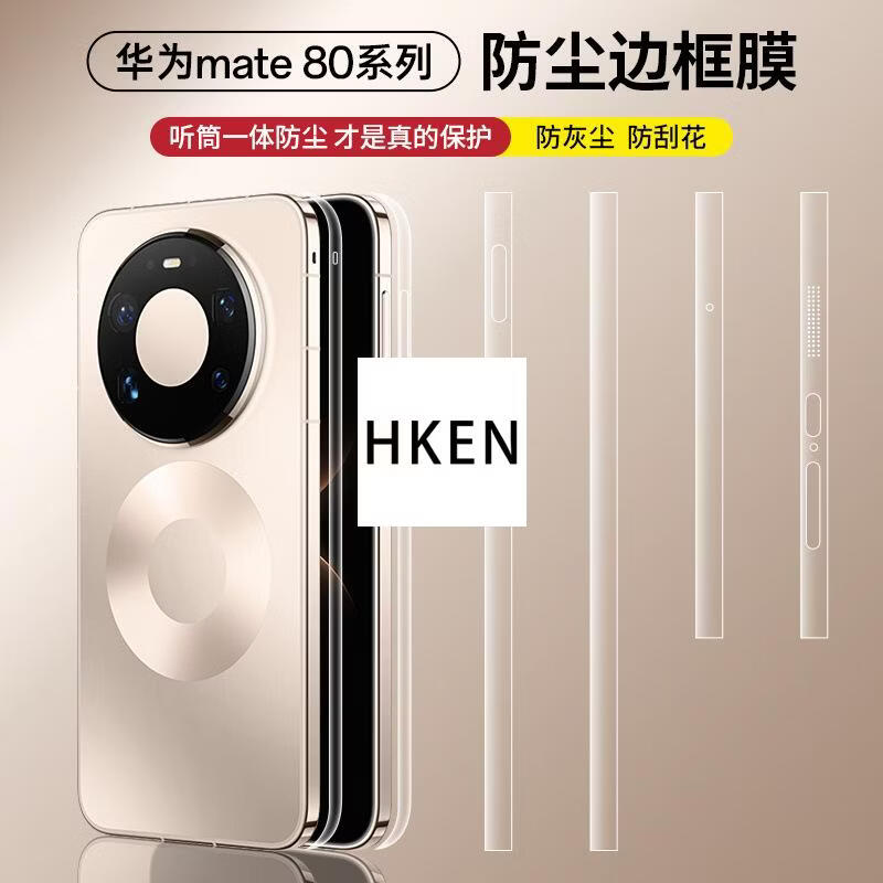HKEN适用华为mate80Promax手机边框膜80RS侧面高清防刮防摔防尘水凝膜防刮手机边框保护膜 防尘边框膜【高清版】3套 华为Mate 80 RS