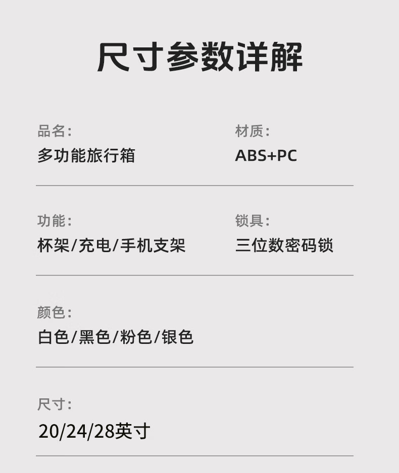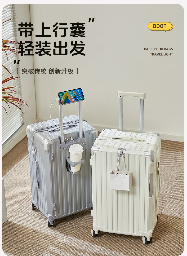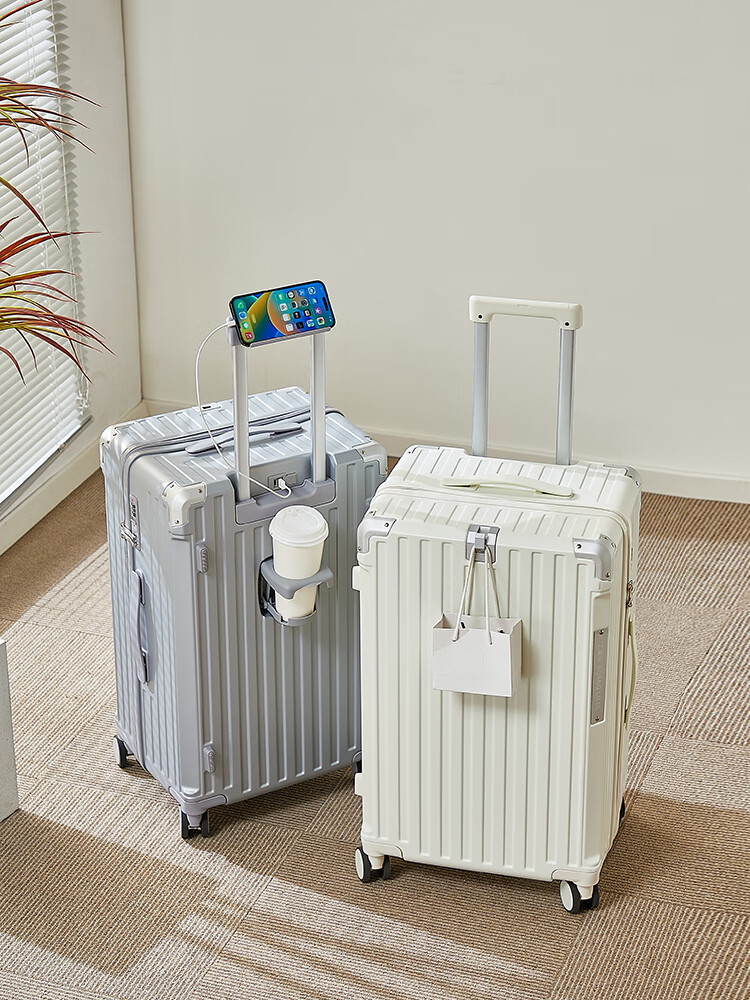 广璐迪前开盖小行李箱拉杆箱可上飞机登机箱18密码旅行箱子皮箱结实耐用 奢华银 【USB/Type-c 双充电口】 18英寸 登机箱+干湿分离+杯架