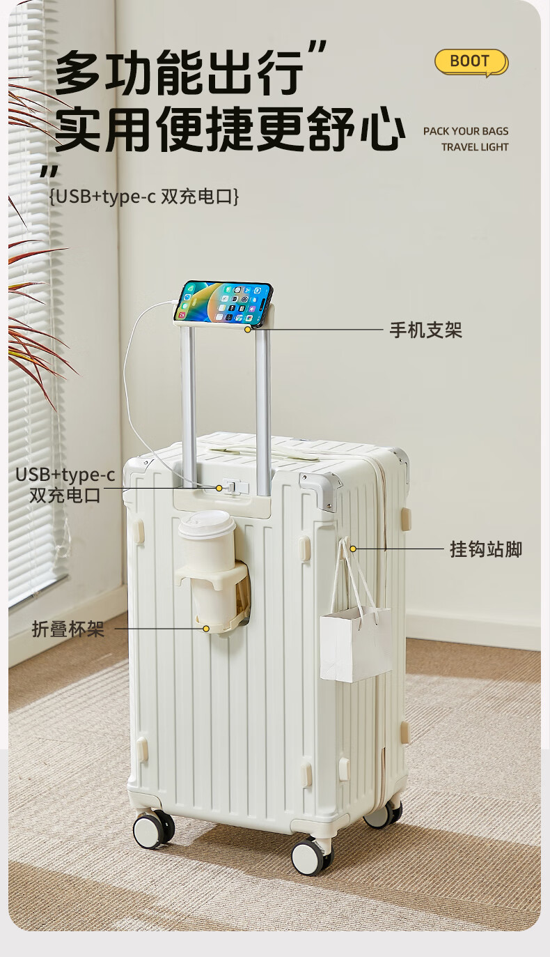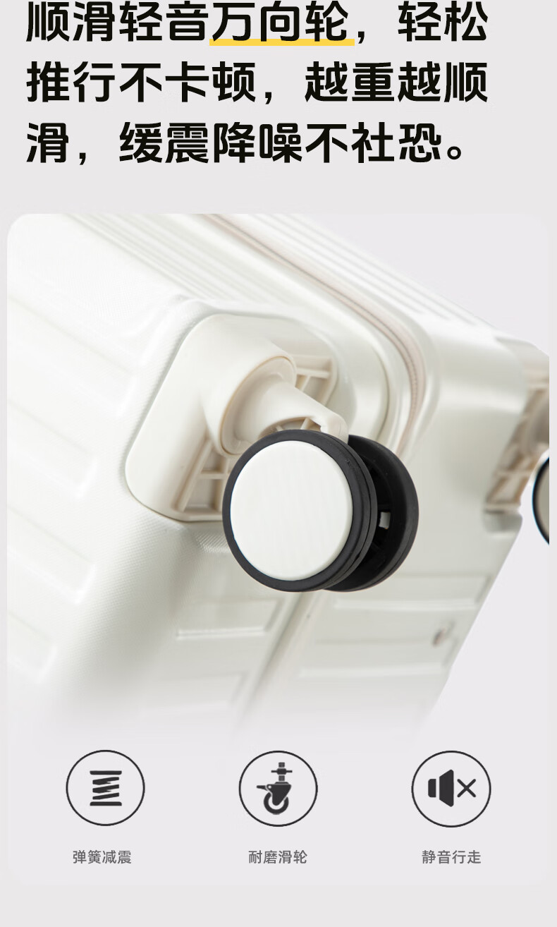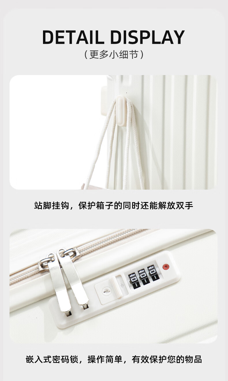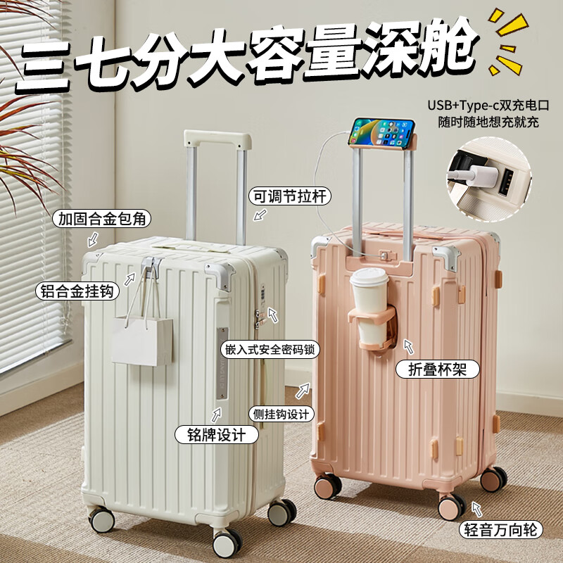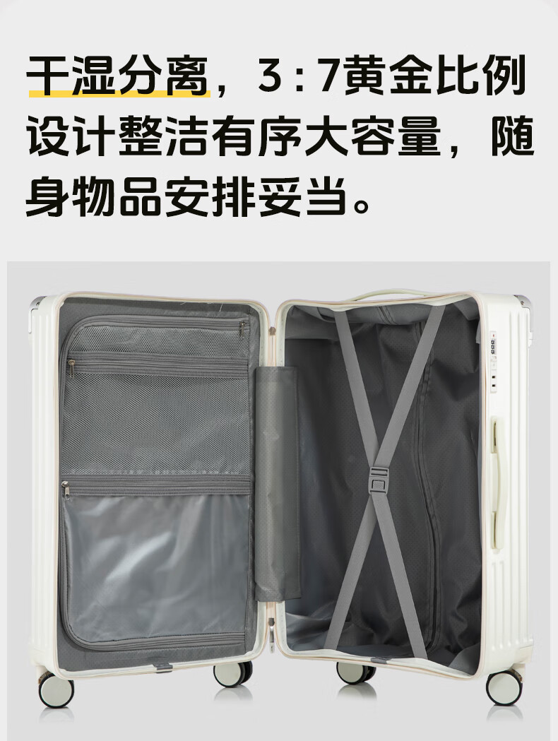 广璐迪(GUANG LU DI)三七分深舱大容量拉杆行李箱学生男万向轮密码箱女旅行箱子皮箱包 三七分大深舱箱/米白色-多功能设计 24英寸 适合远行