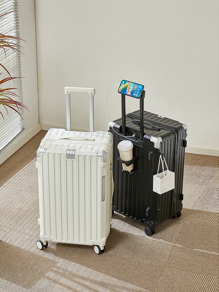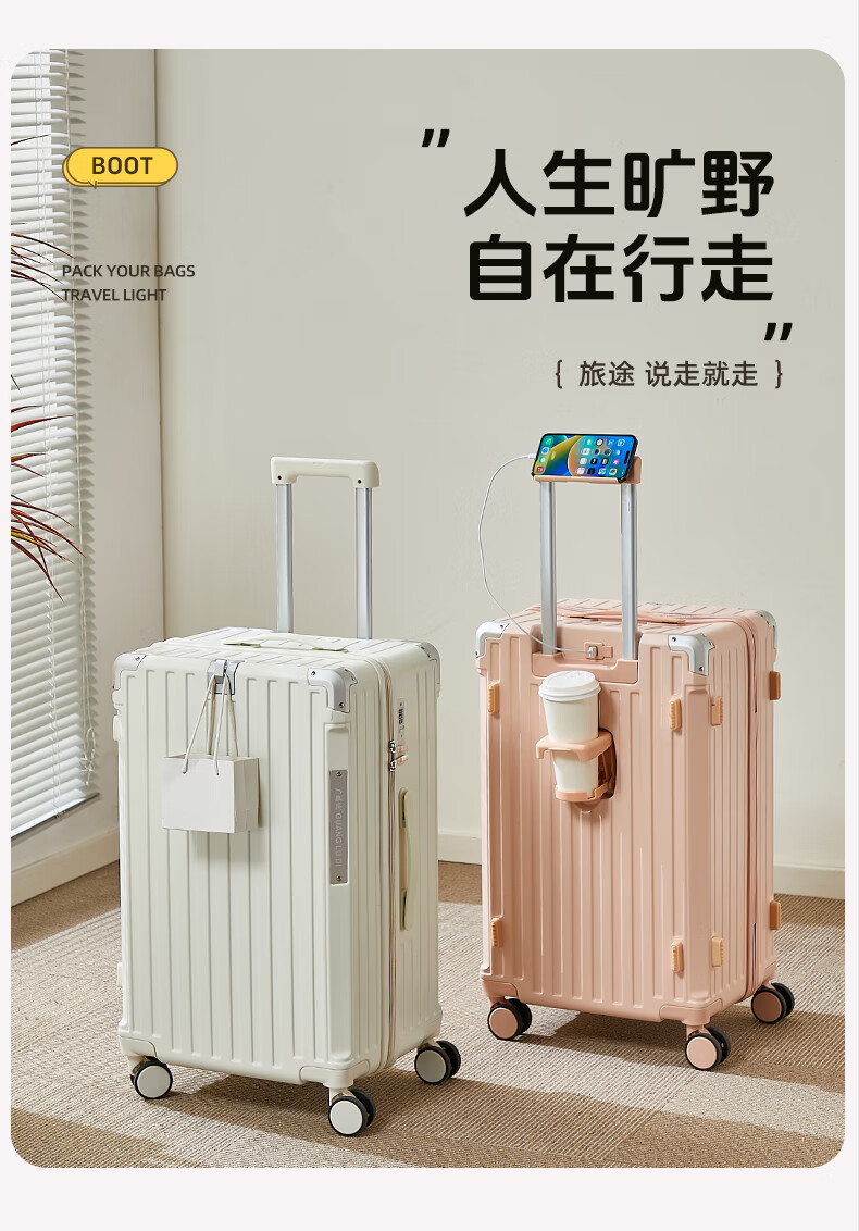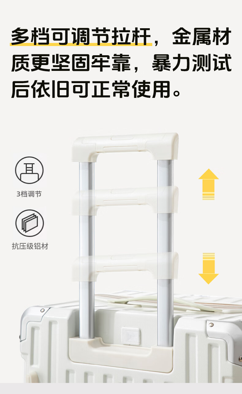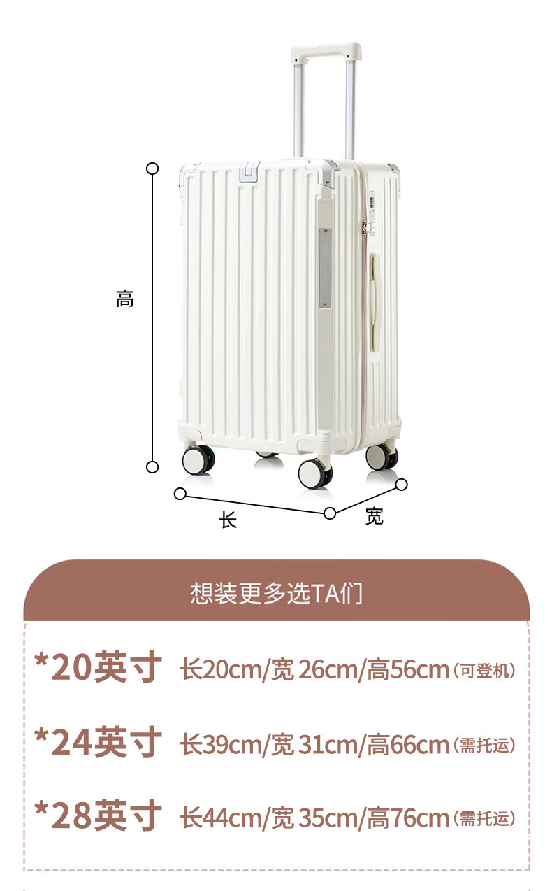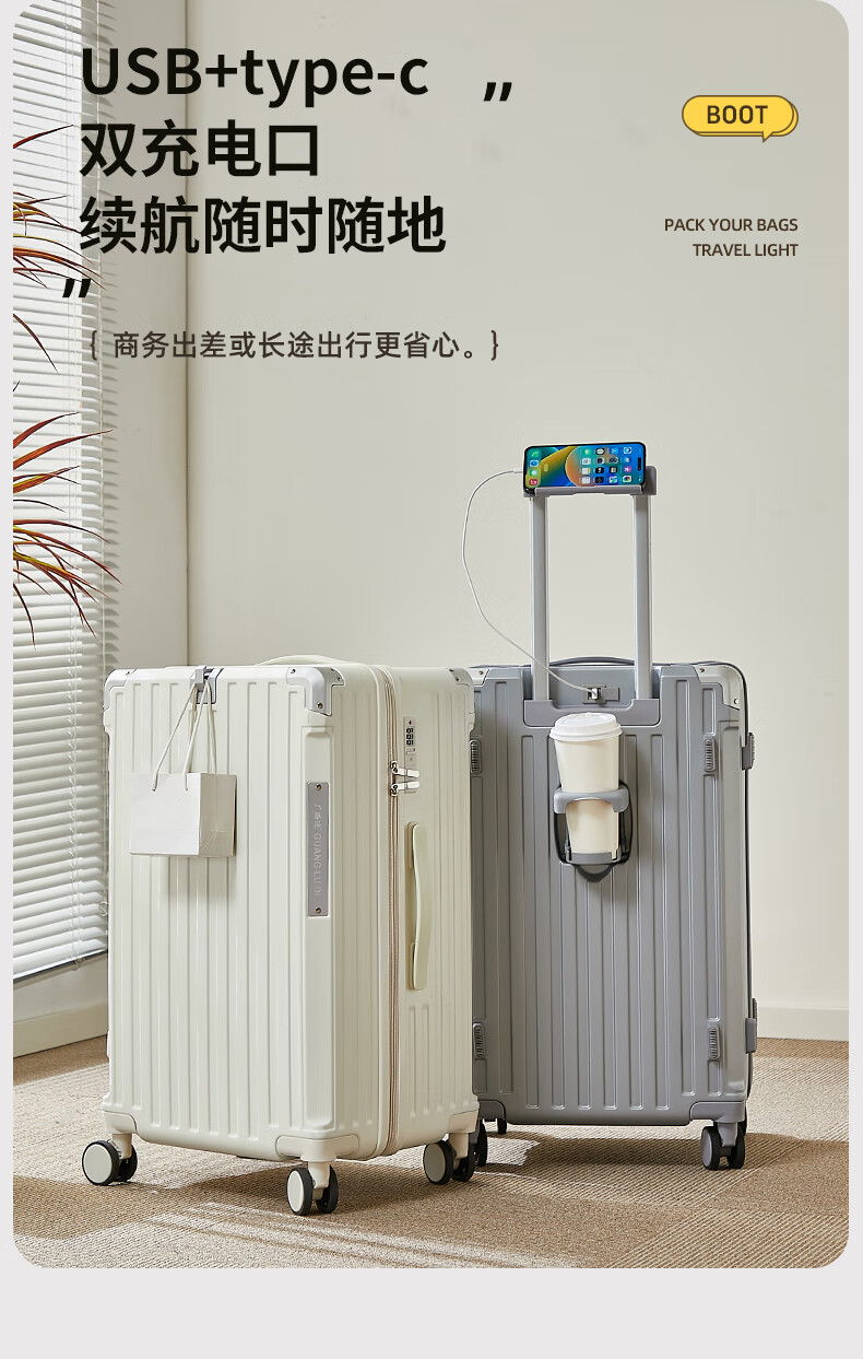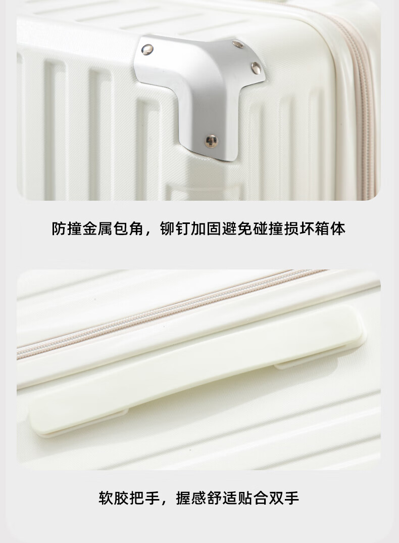 广璐迪(GUANG LU DI)三七分深舱大容量拉杆行李箱学生男万向轮密码箱女旅行箱子皮箱包 三七分大深舱箱/米白色-多功能设计 24英寸 适合远行
