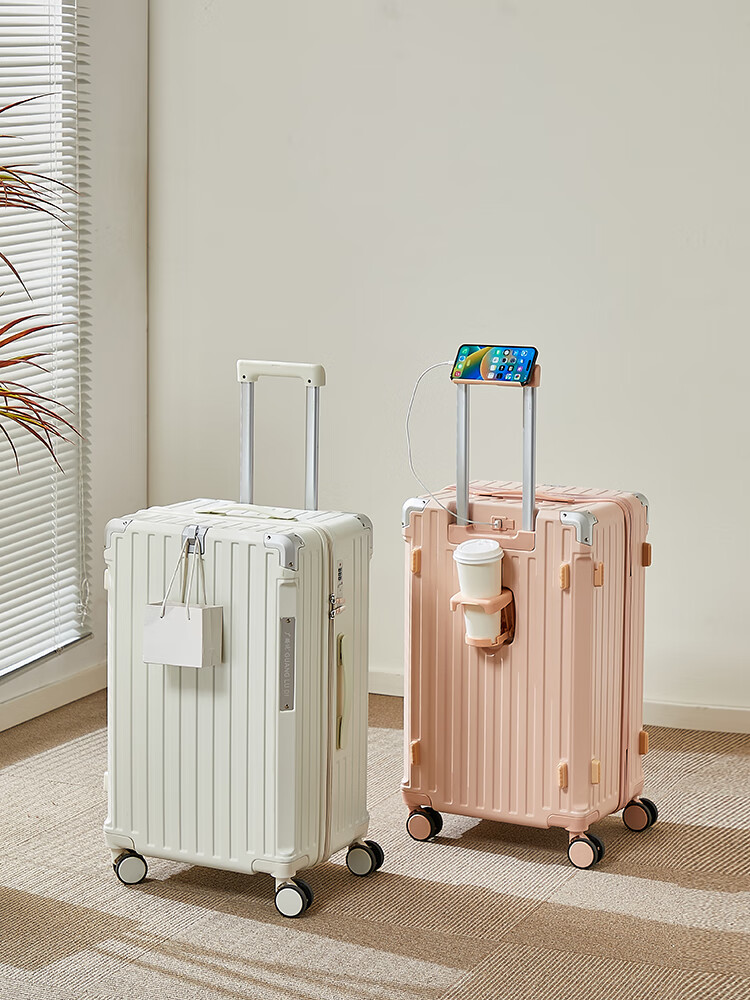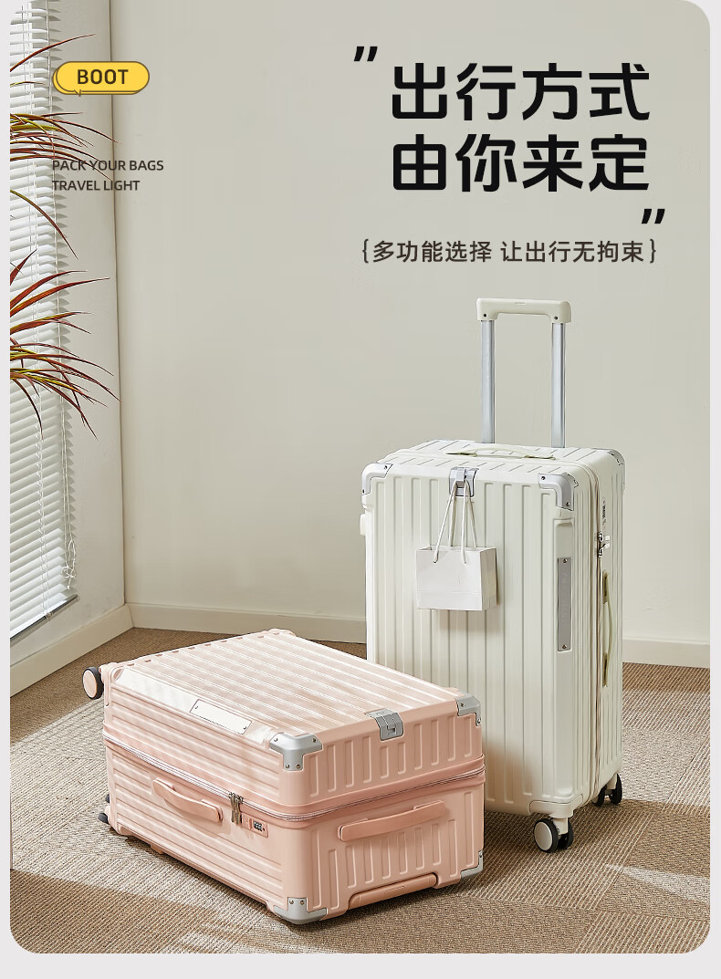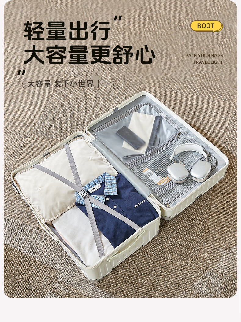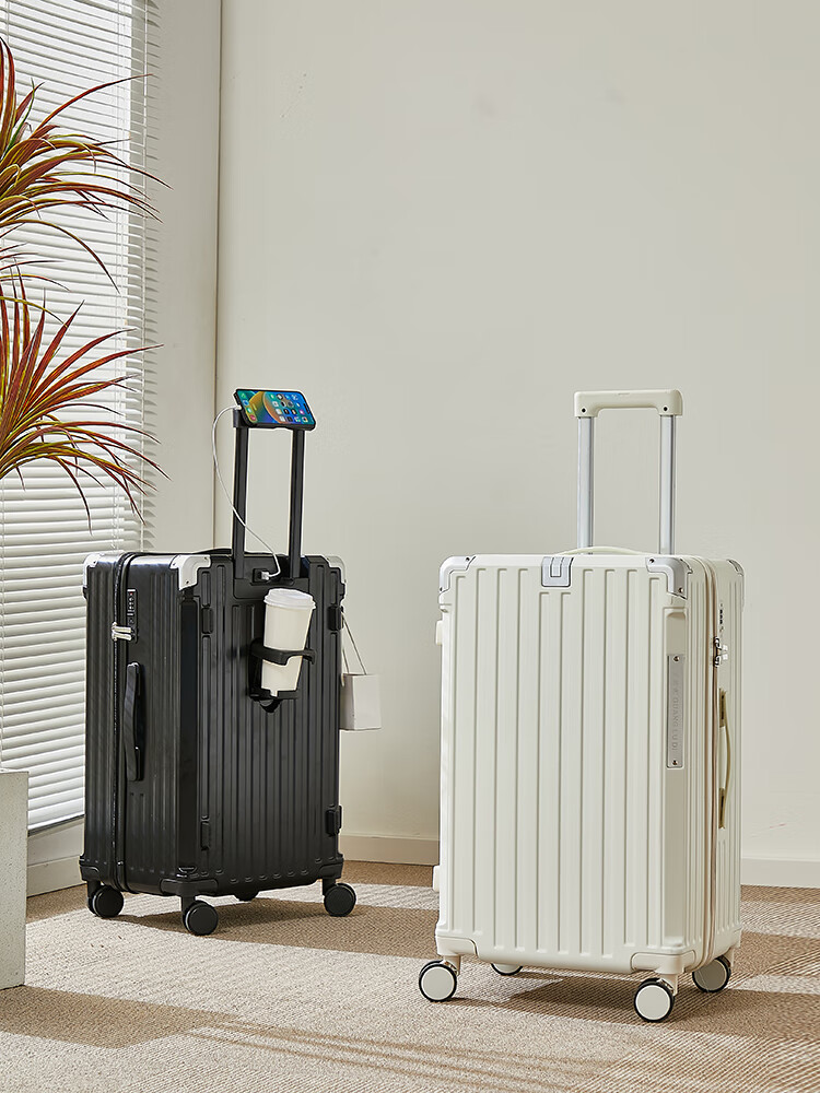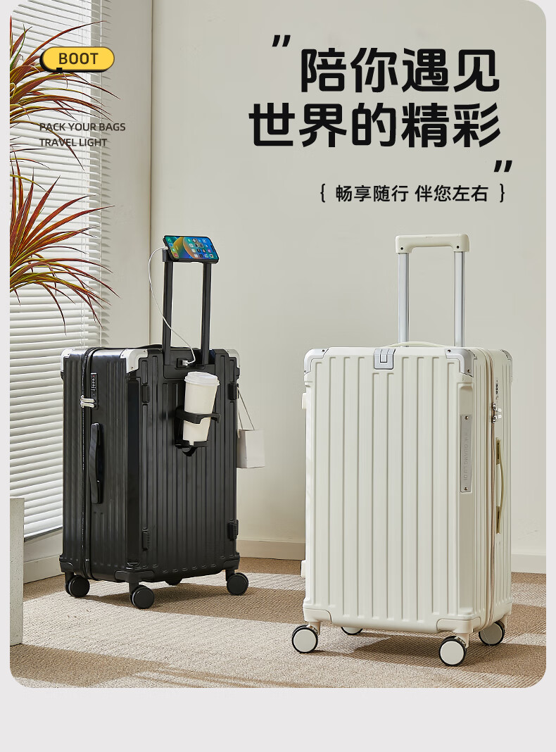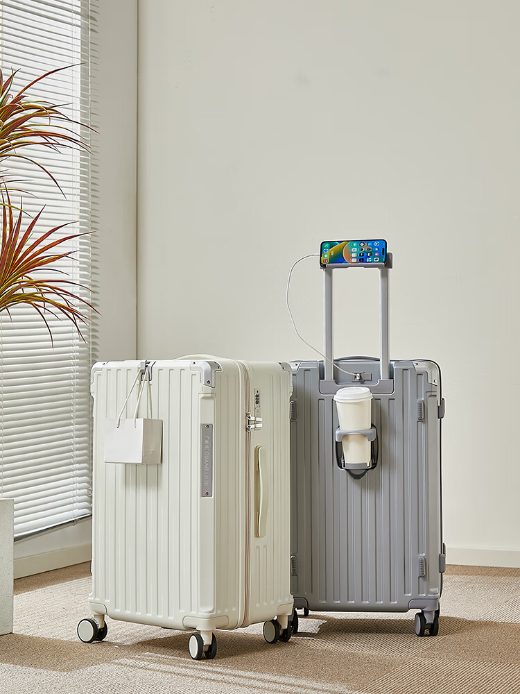 广璐迪(GUANG LU DI)三七分深舱大容量拉杆行李箱学生男万向轮密码箱女旅行箱子皮箱包 三七分大深舱箱/米白色-多功能设计 24英寸 适合远行