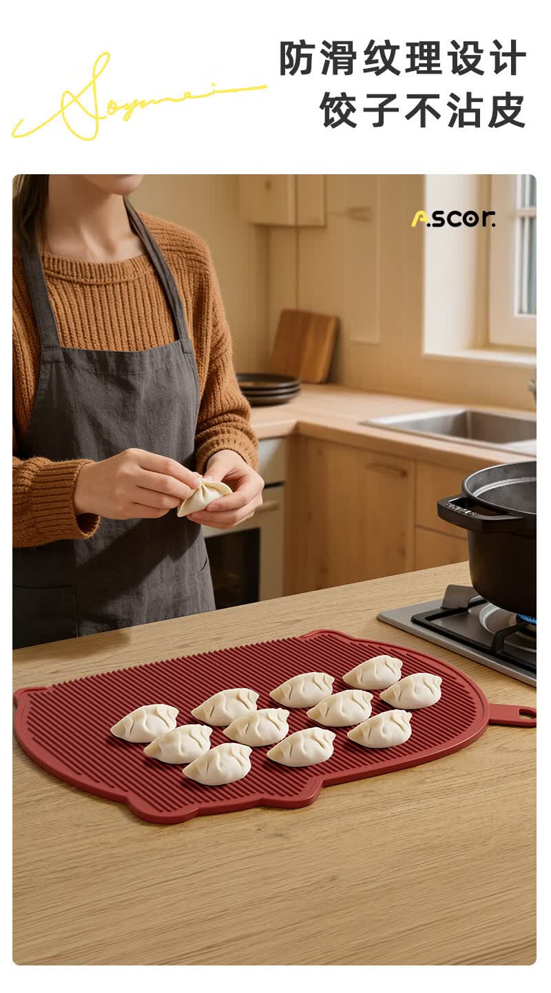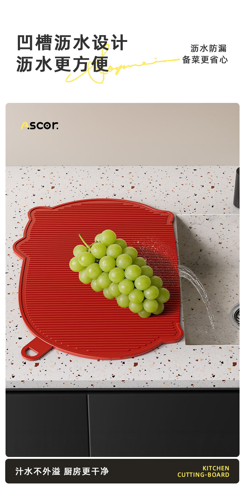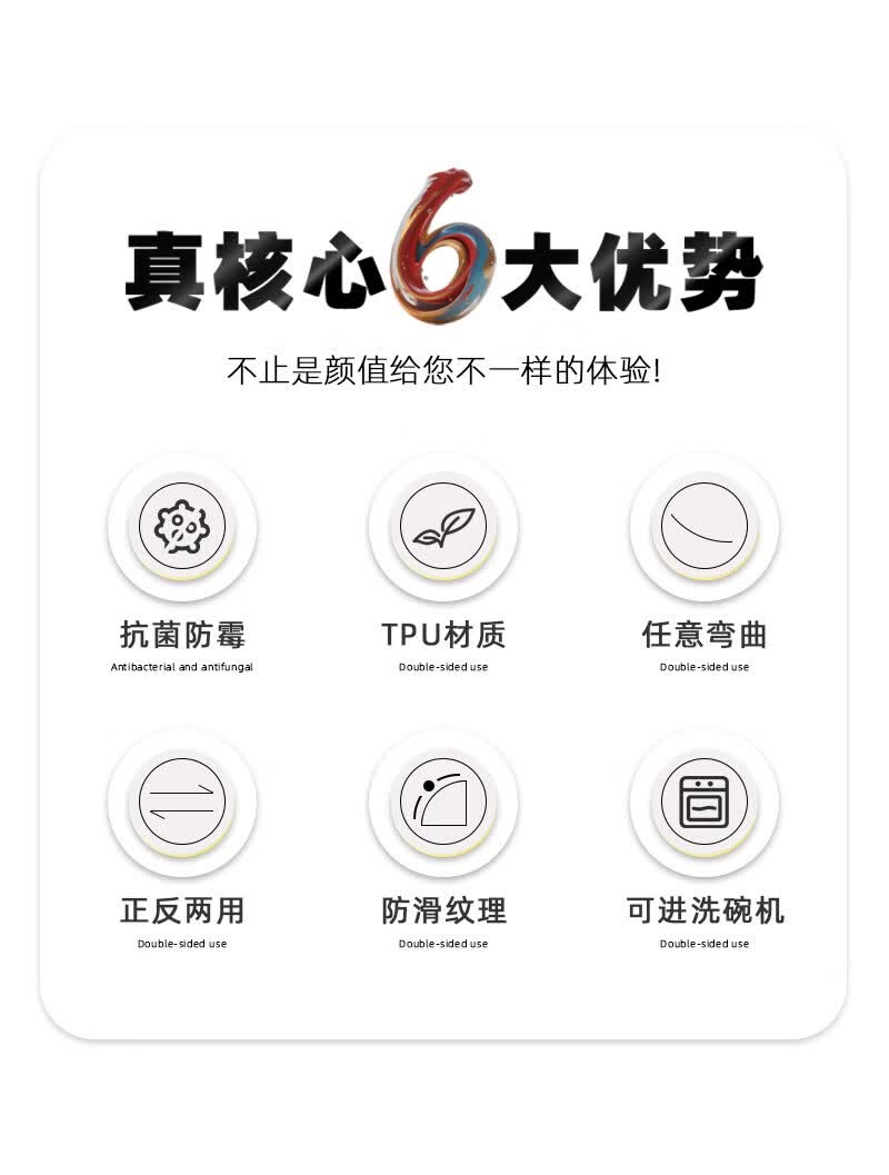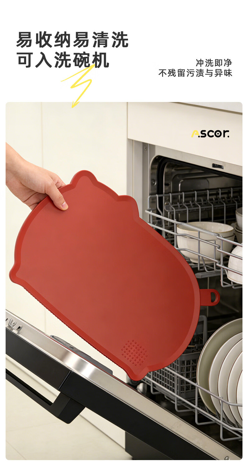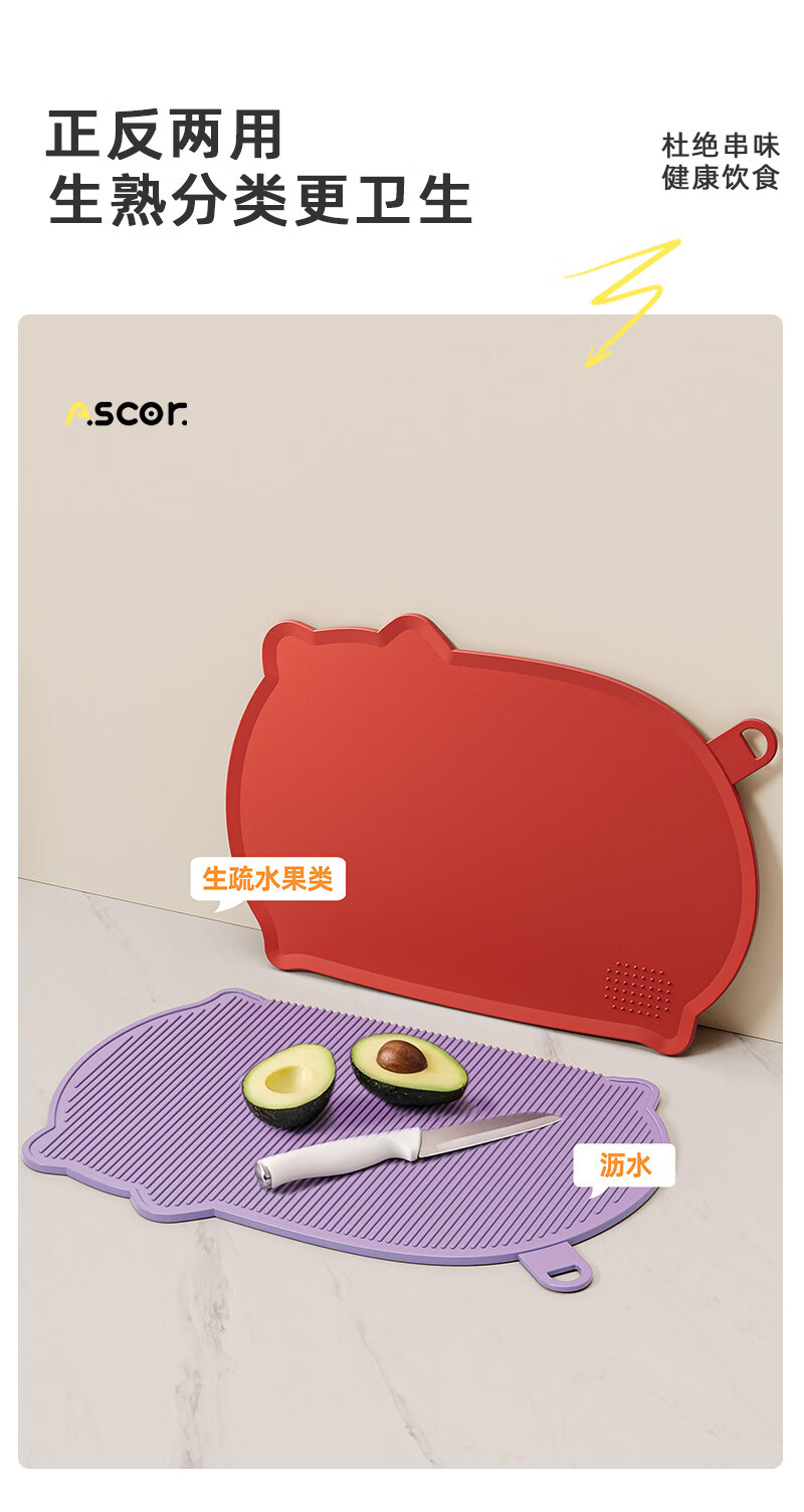 艾仕可(ASCOR)TPU切菜板防霉抗菌家用食品级水果砧板双面可弯曲半圆形辅食刀板 【牛油果绿】100%tpu材质-不发霉无切痕