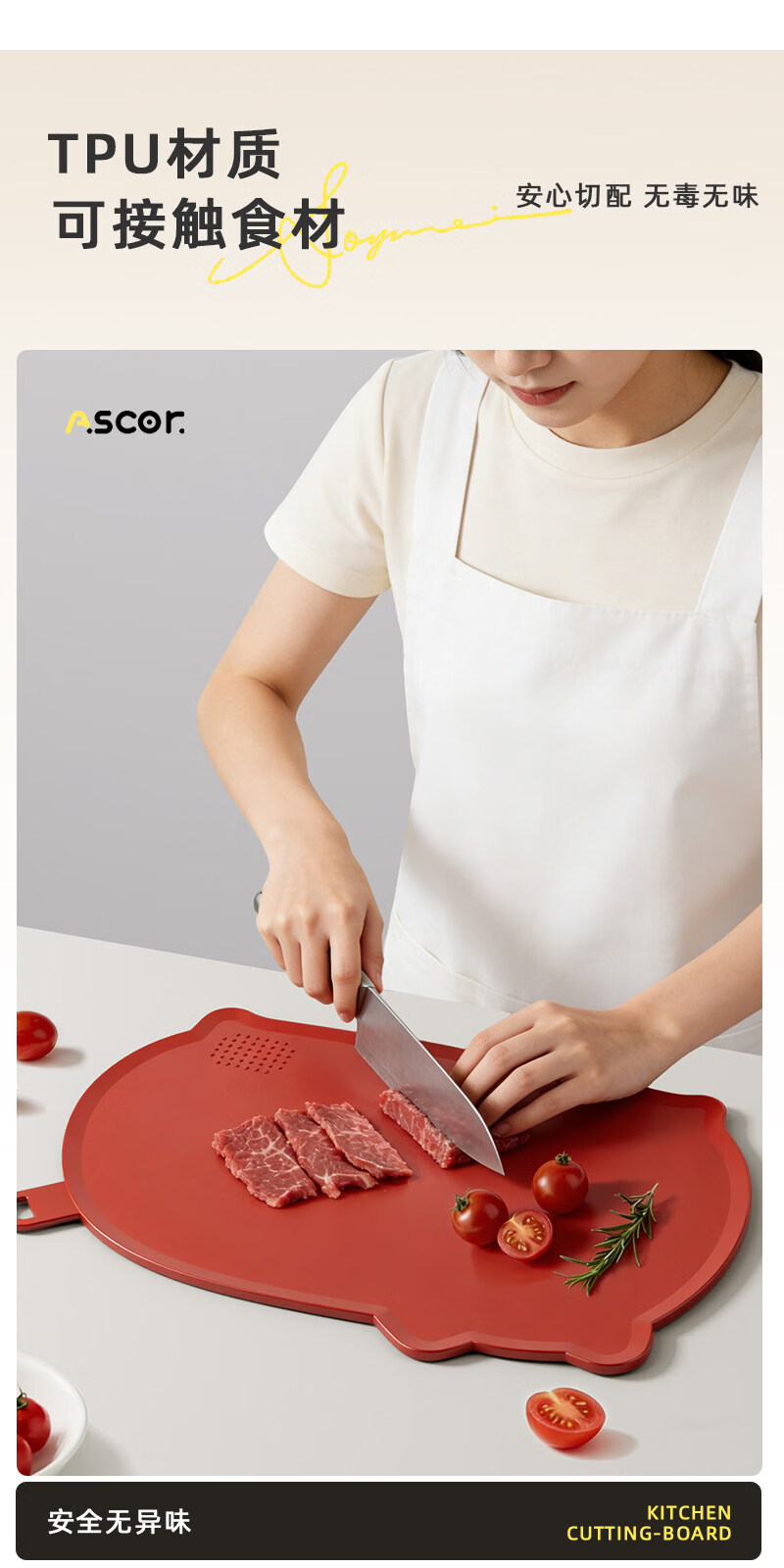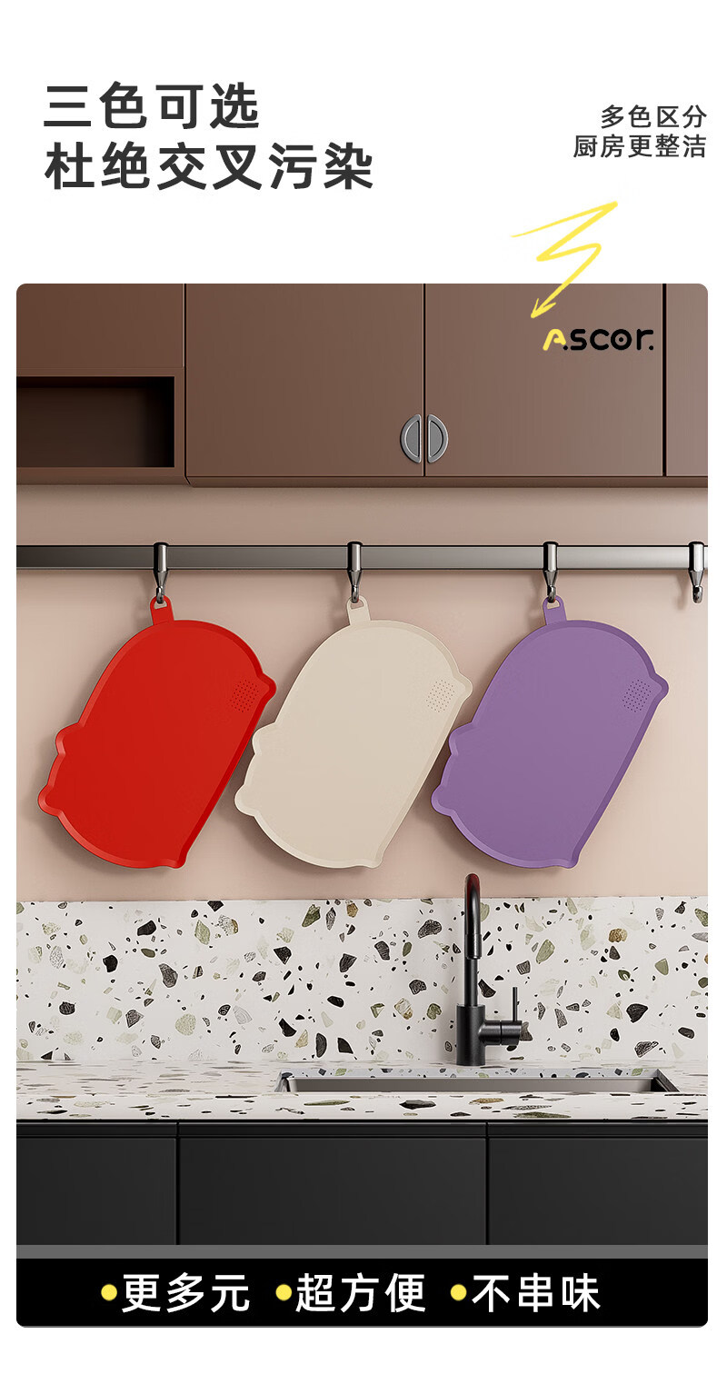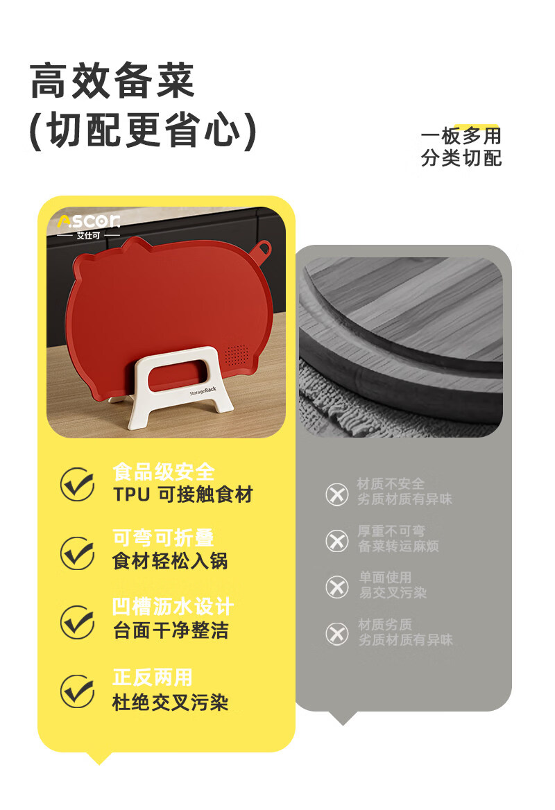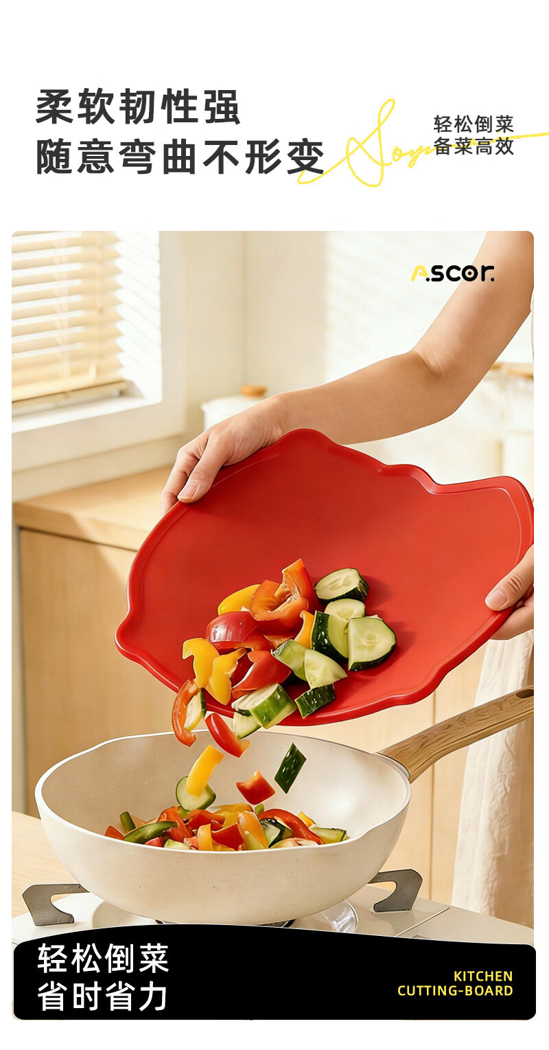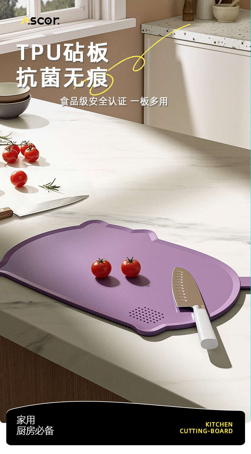 艾仕可(ASCOR)TPU切菜板食品级砧板防霉抗菌家用双面可弯曲半圆形水果辅食案板 【樱花粉】刀切无痕抗菌tpu