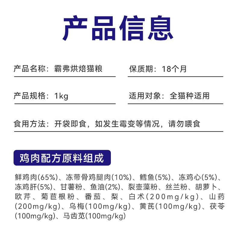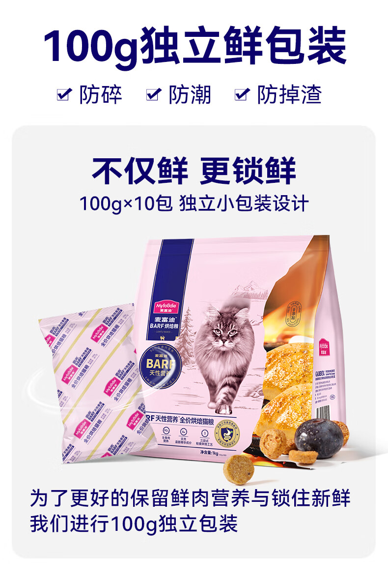 麦富迪(Myfoodie)霸弗barf低温烘焙全价鲜肉成猫粮 鲜鸡肉+鳕鱼酥 1kg