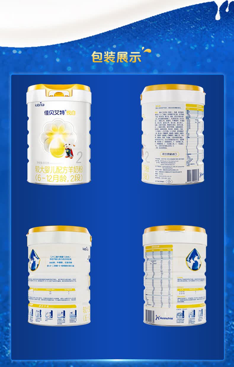 佳贝艾特营嘉悦白较大婴儿配方羊奶粉 2段(6-12个月)800克 天然A2蛋白