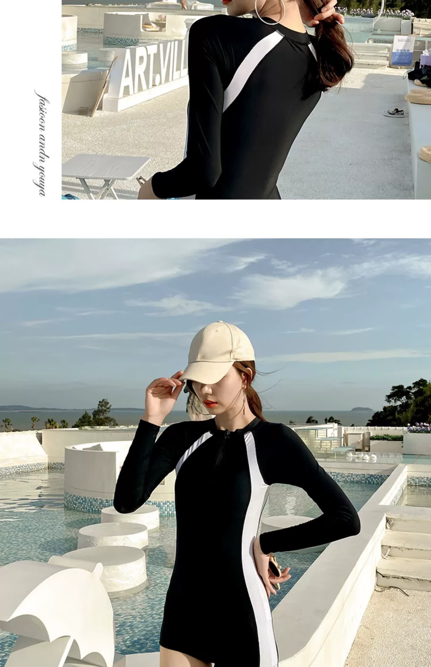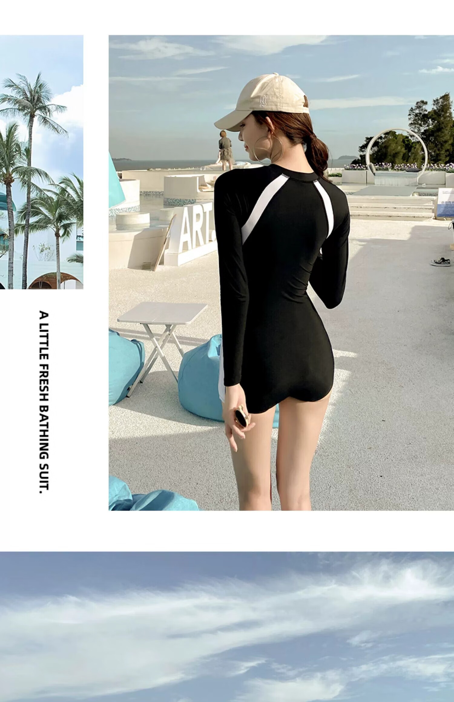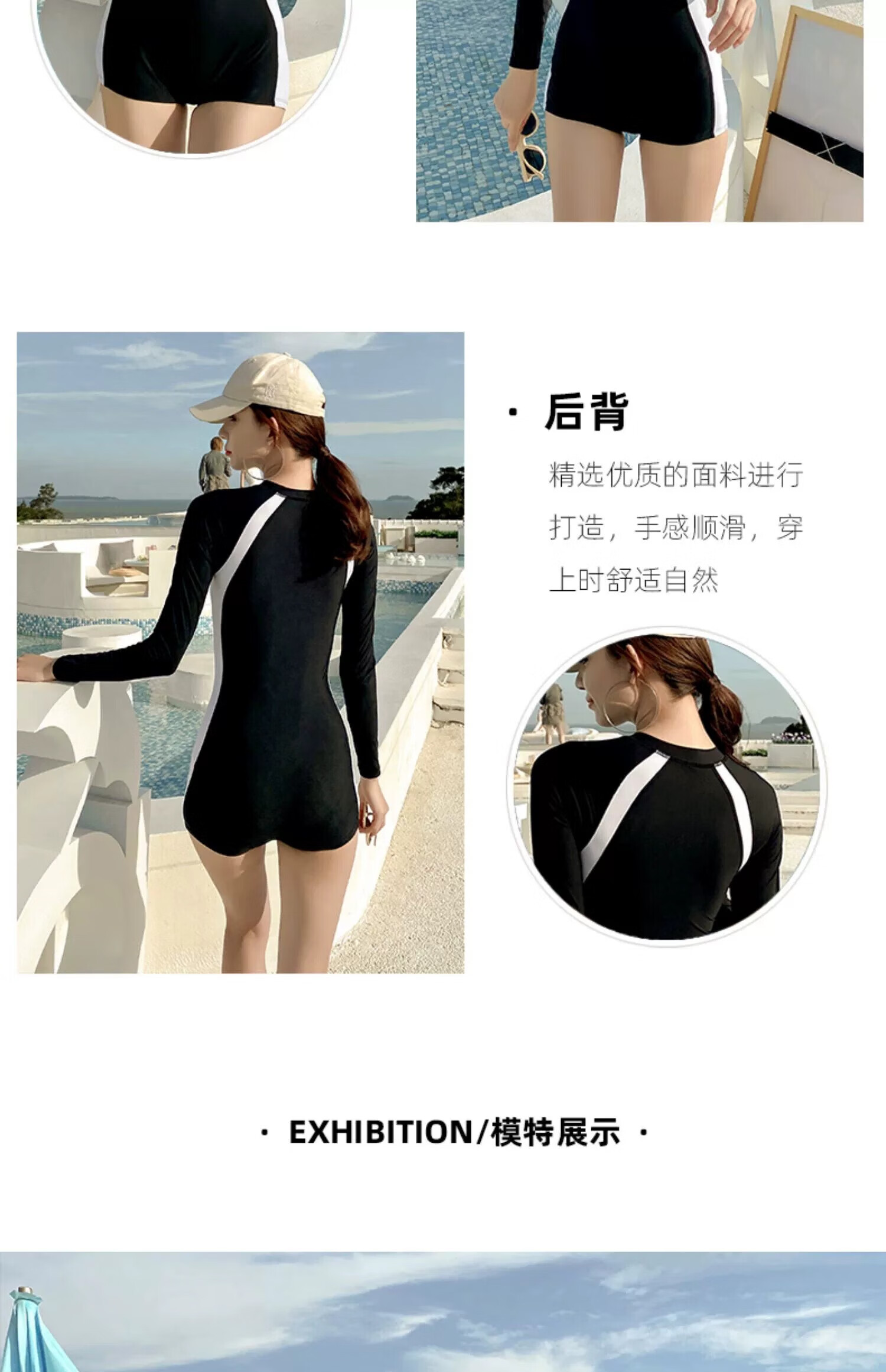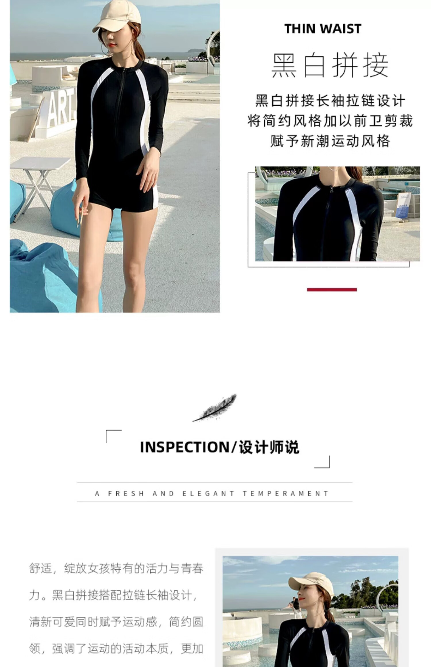 东方骆驼长袖泳衣女夏时尚连体显瘦遮肚保守新款女士游泳衣游泳馆专用 长袖白色 L 建议体重98-110斤
