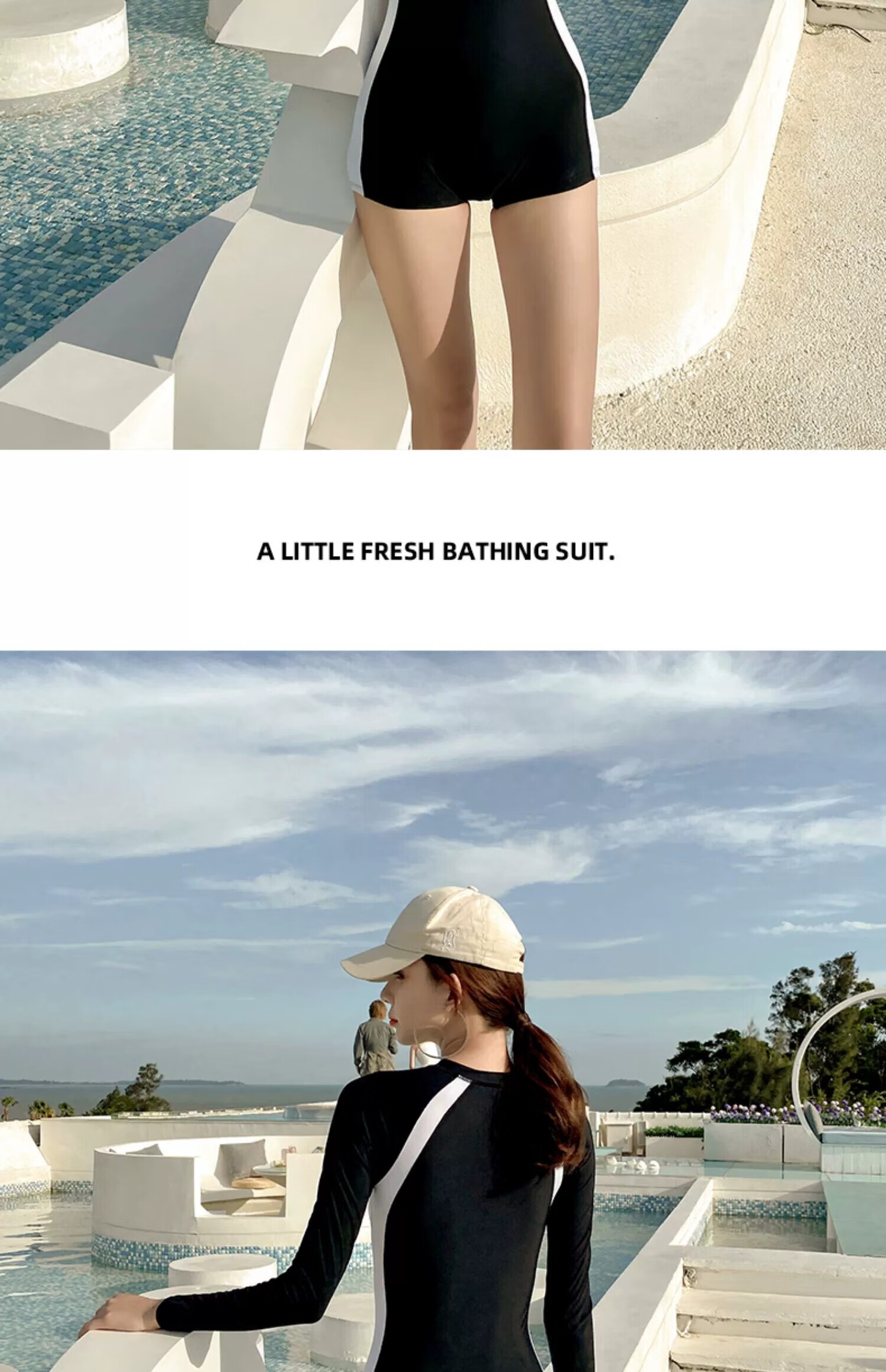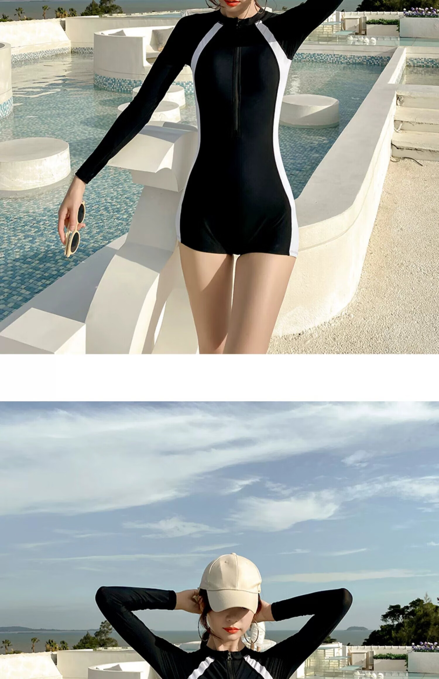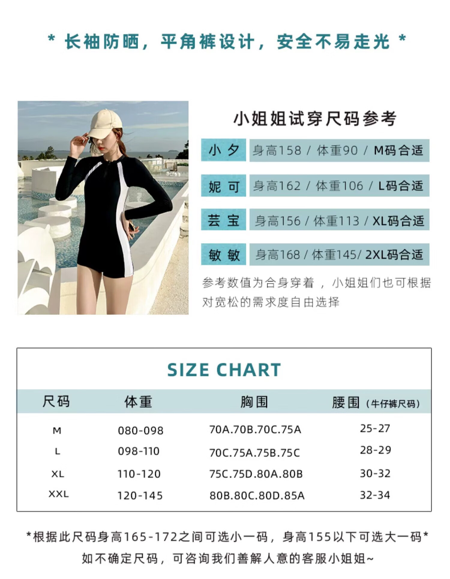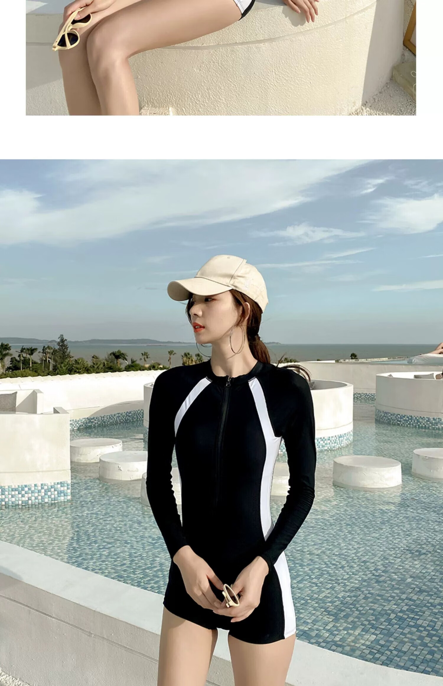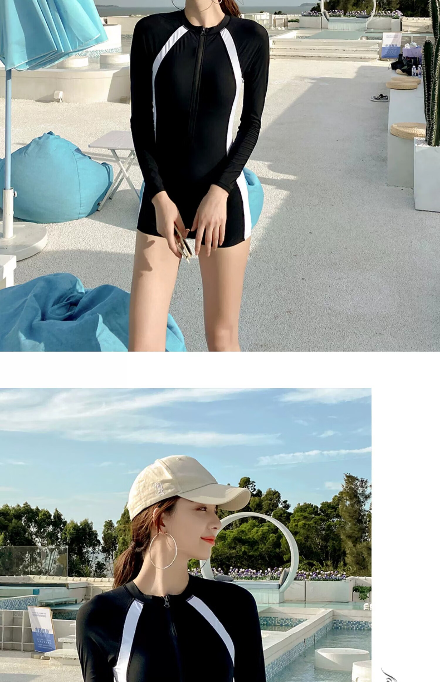 东方骆驼长袖泳衣女夏时尚连体显瘦遮肚保守新款女士游泳衣游泳馆专用 长袖白色 L 建议体重98-110斤
