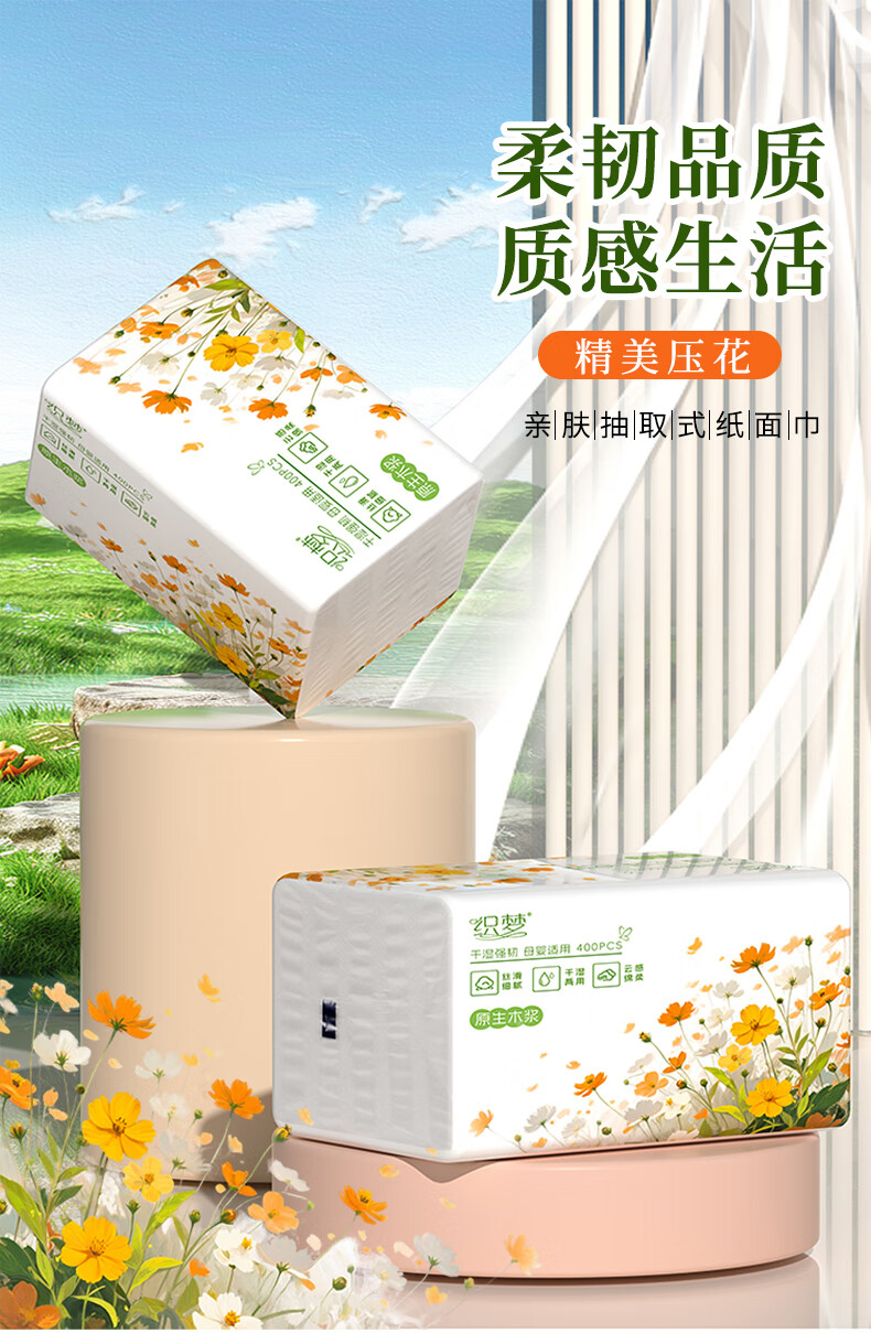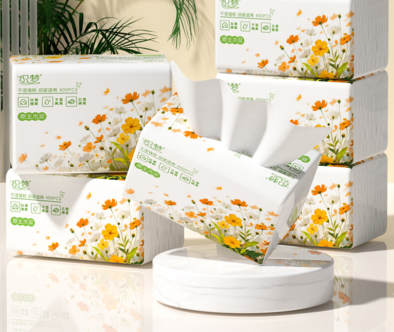 织梦大包抽纸巾400张纸巾抽家用面巾纸整箱家庭装 5层 400张*8包