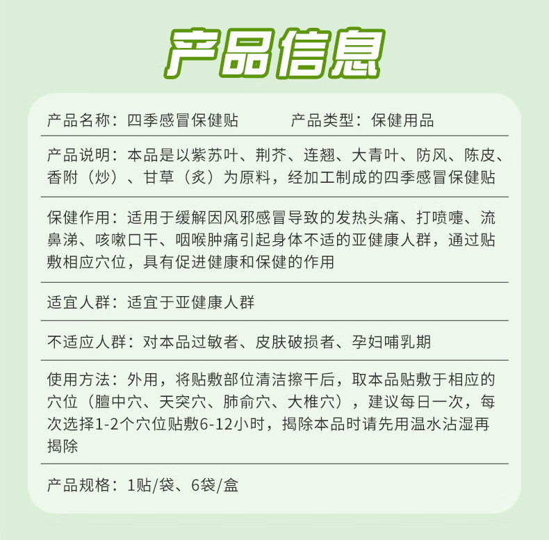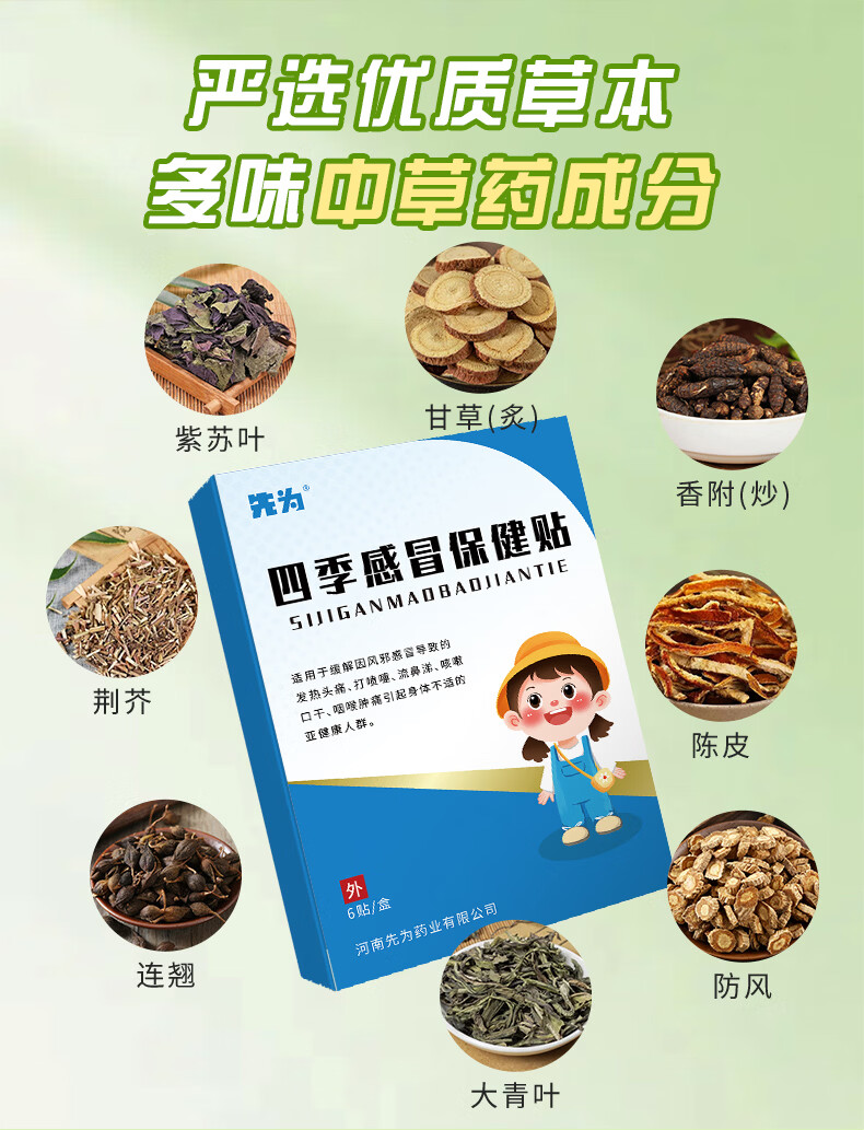 先为小儿感冒保健贴鼻塞咳嗽 四季感冒保健贴【一盒6贴 鼻塞喷嚏】