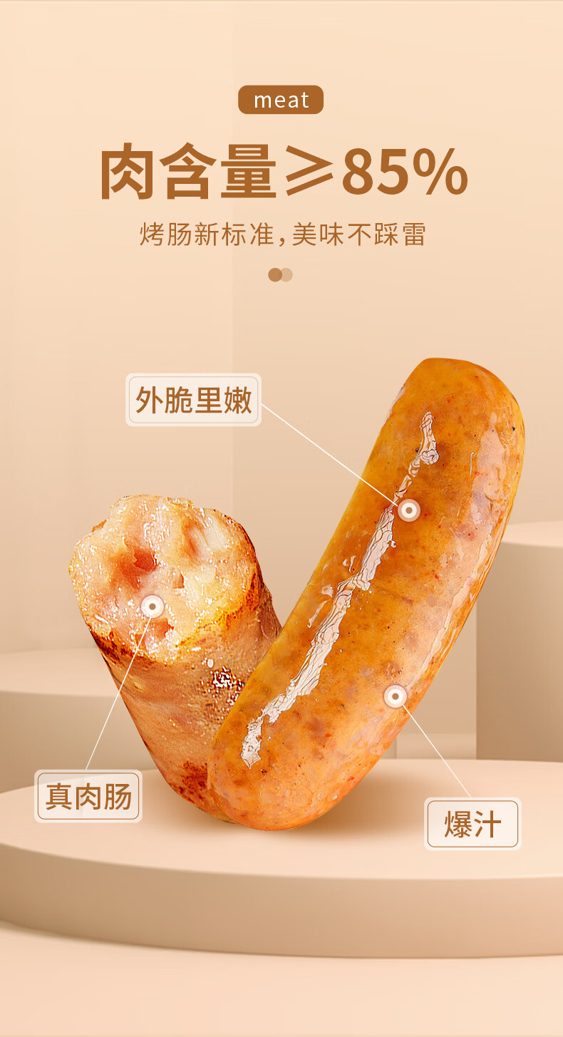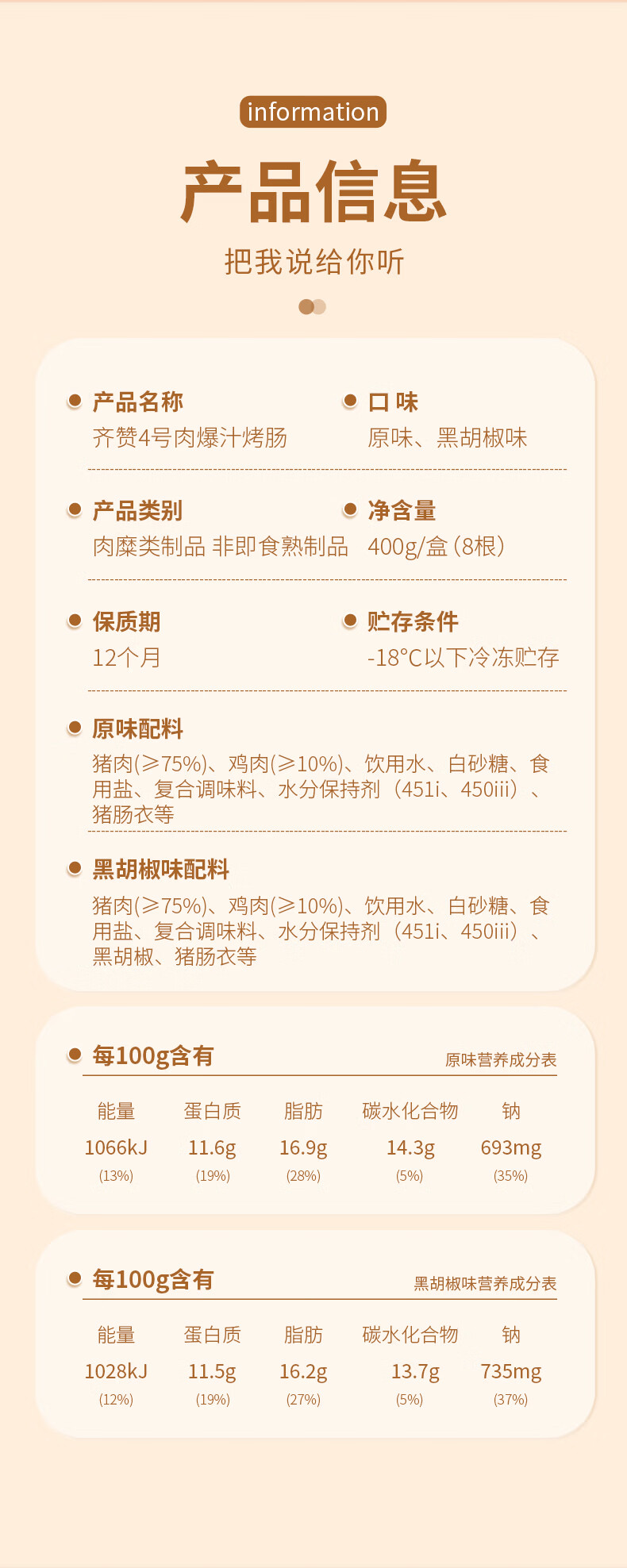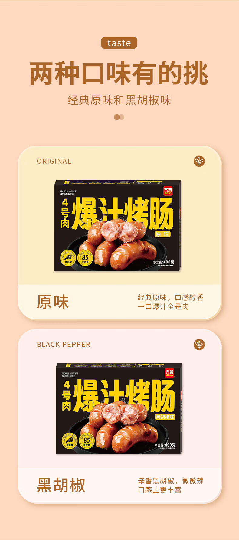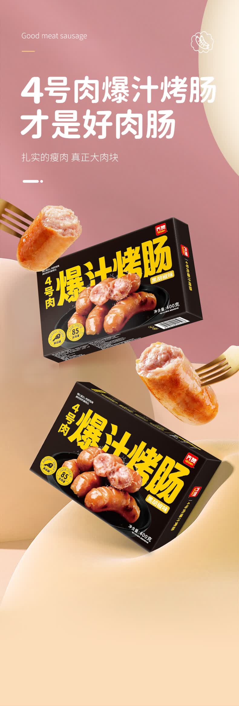 齐赞【顺丰包邮】4号肉爆汁烤肠精选后腿肉肉含量≥85%台式火山石烤肠 4号肉爆汁烤肠黑椒味400g*4袋