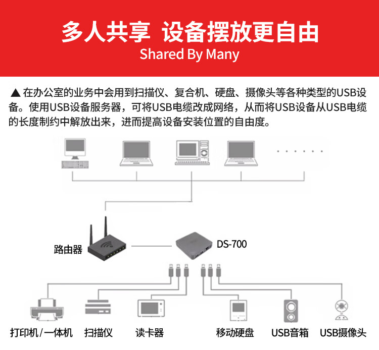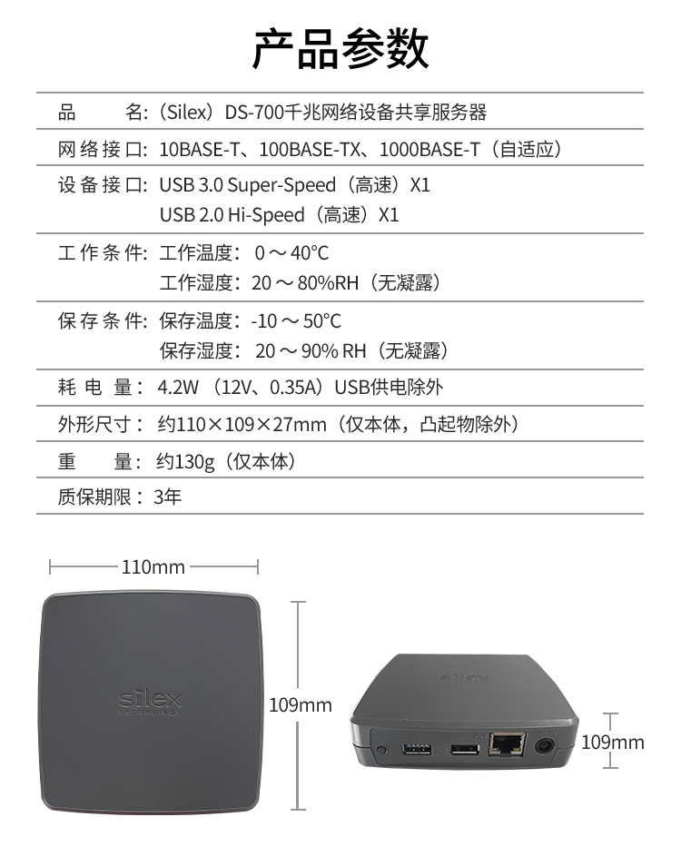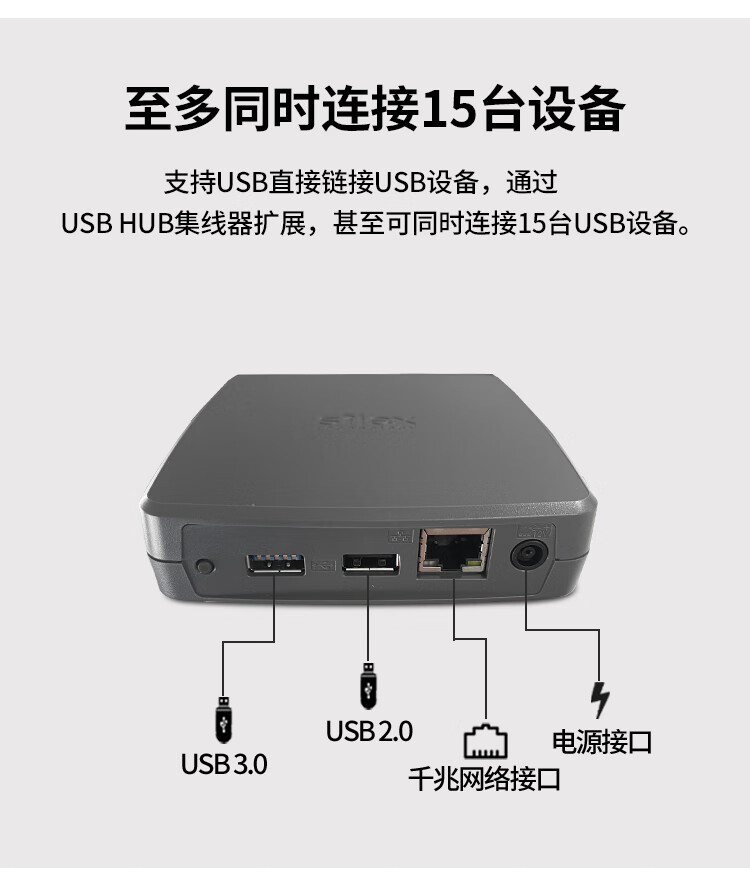 希来凯思技术(Silex Technology)DS-700有线设备服务器打印复印机扫描仪加密狗摄像头等15台USB转网口共享网络转换器日本进口 DS-700(跨互联网远程连接)