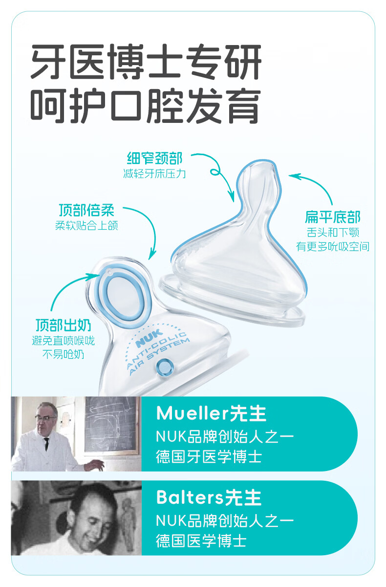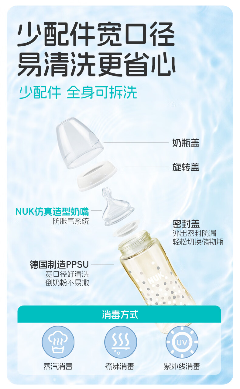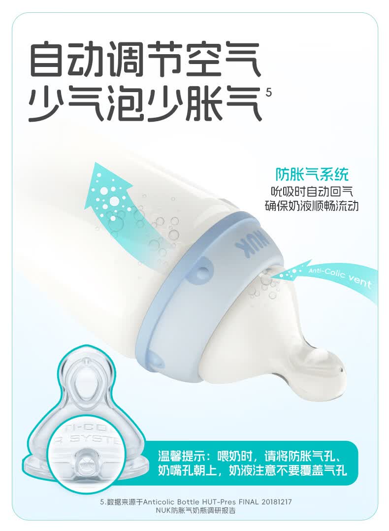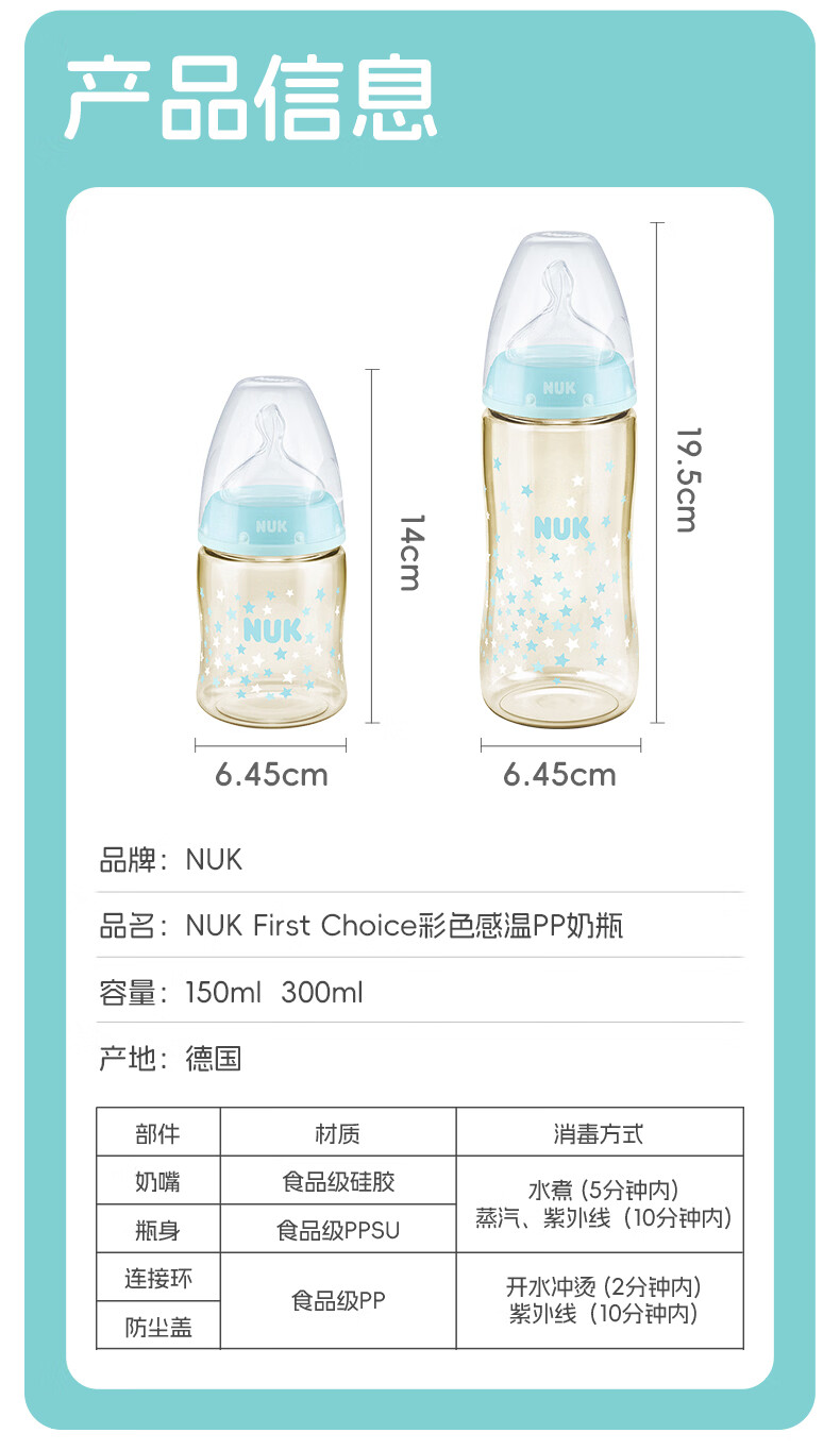 NUK德国新生儿感温奶瓶宽口径ppsu防胀气奶瓶0-6个月以上仿母乳奶嘴 白色 (0-6月) 300ml +2个S号奶嘴