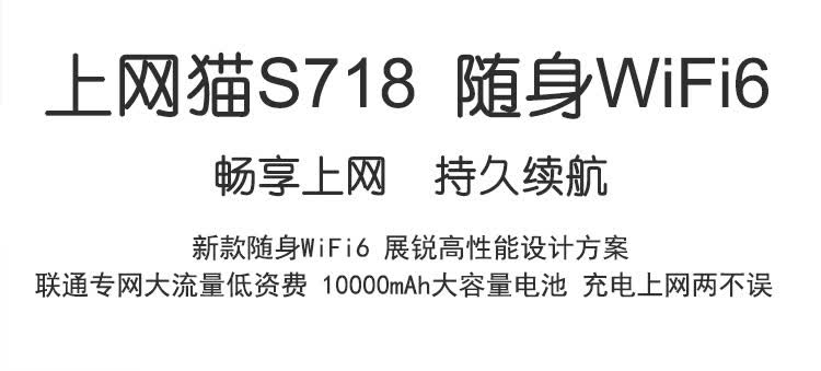 上网猫随身移动wifi6充电宝二合一4g联通流量2026款全国通用免插卡便携式适用车载办公笔记本 S718(含月享1500G/6个月)