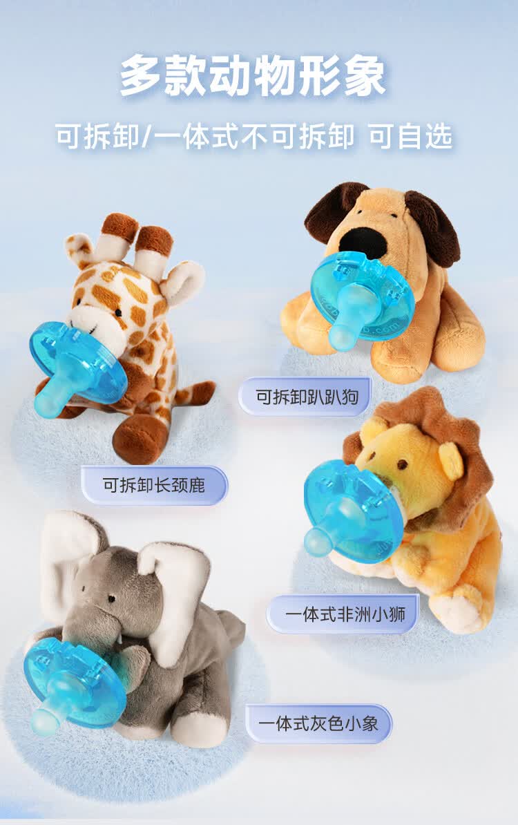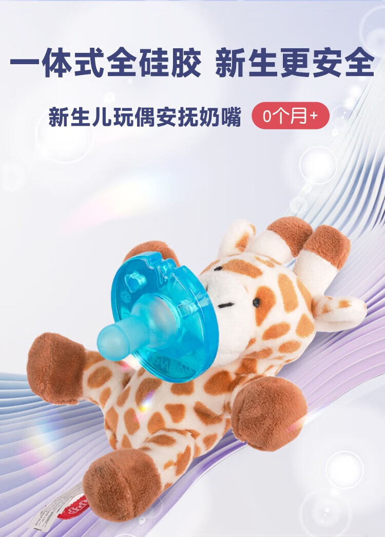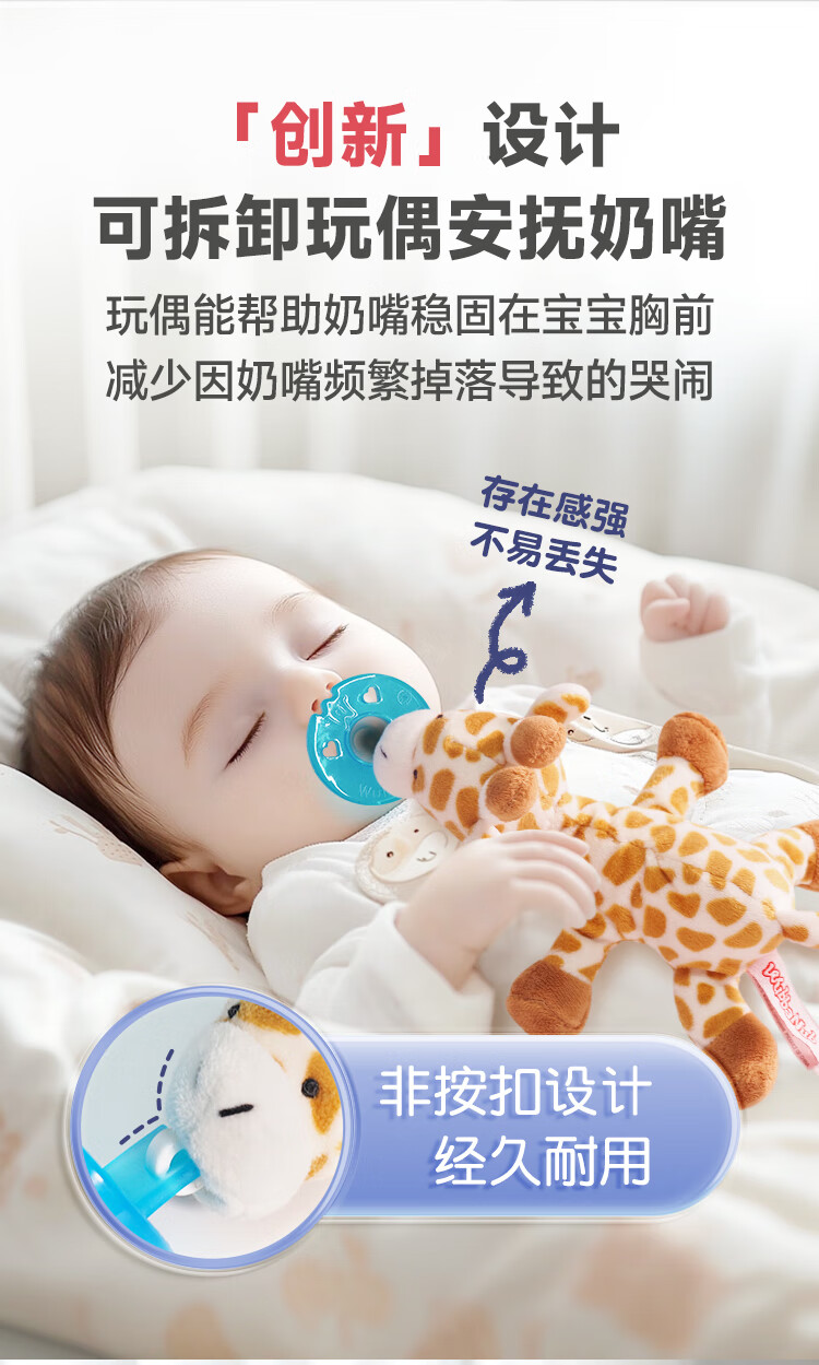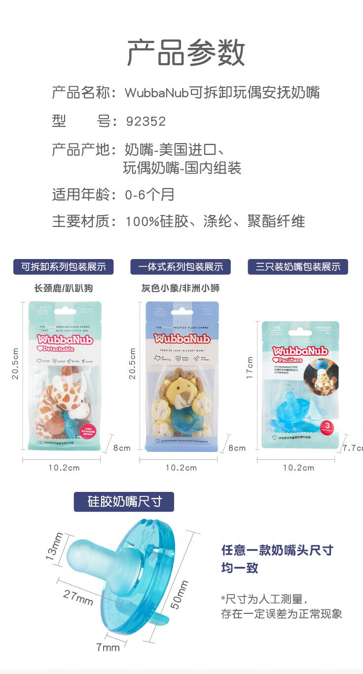 WubbaNub美国安抚奶嘴0-6个月新生儿口欲期安睡型崔玉涛长颈鹿玩偶防胀气 一体式小狮子奶嘴 0-6个月 1只装 买安抚奶嘴 送奶嘴盒1个