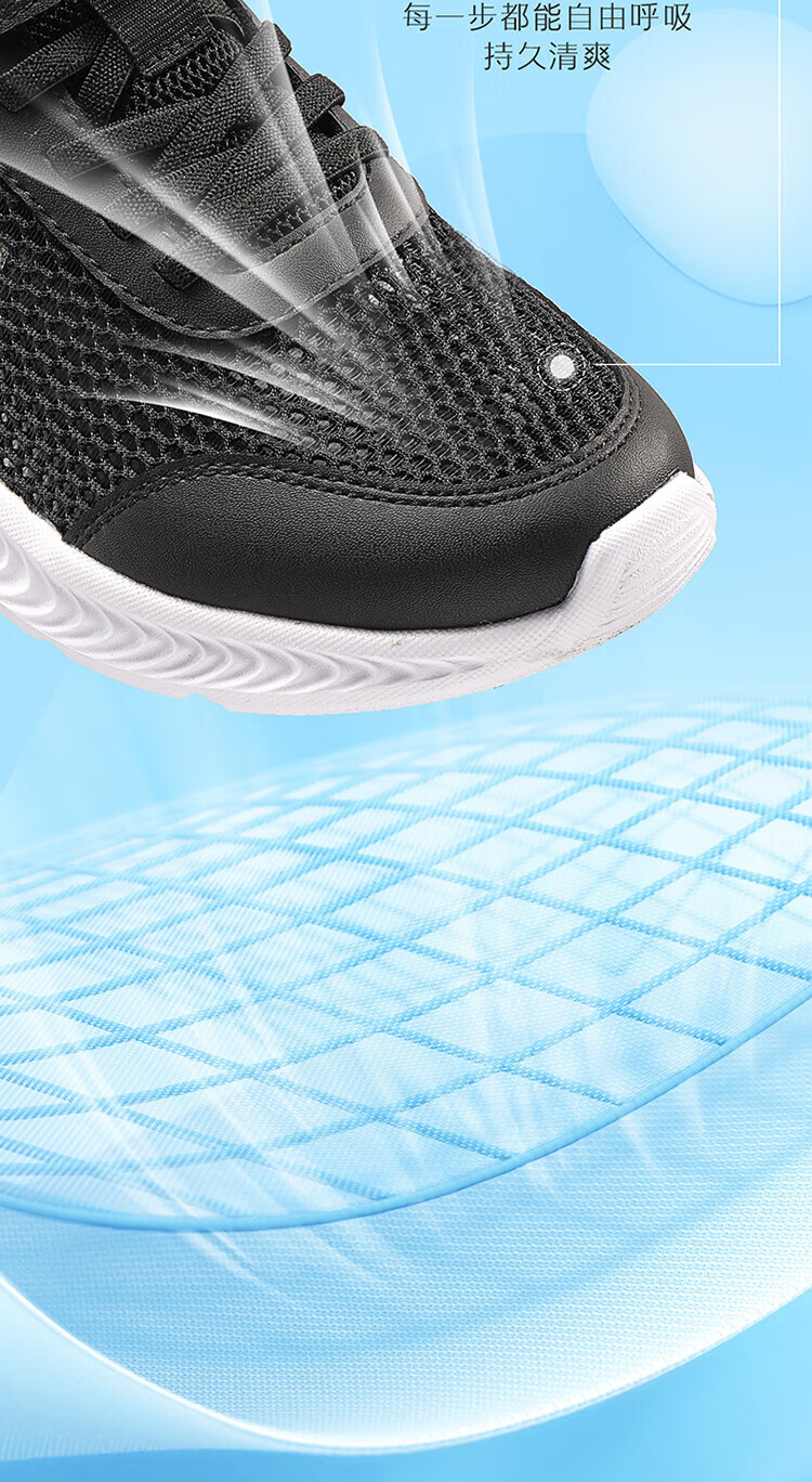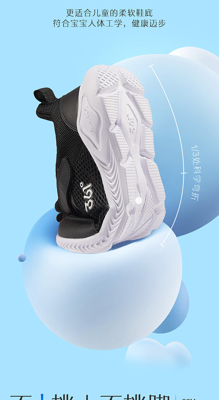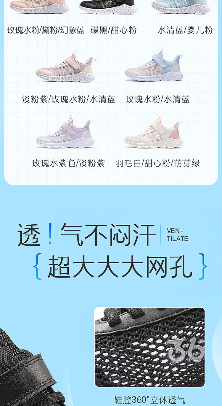 361°儿童运动鞋男童跑鞋夏季大网孔轻便魔术贴女童休闲透气运动鞋 【大网孔】碳黑/银色 36