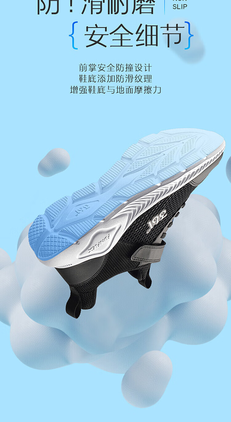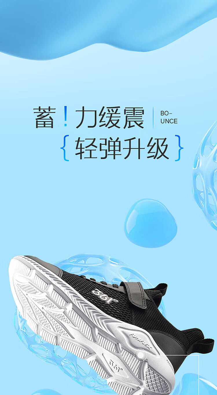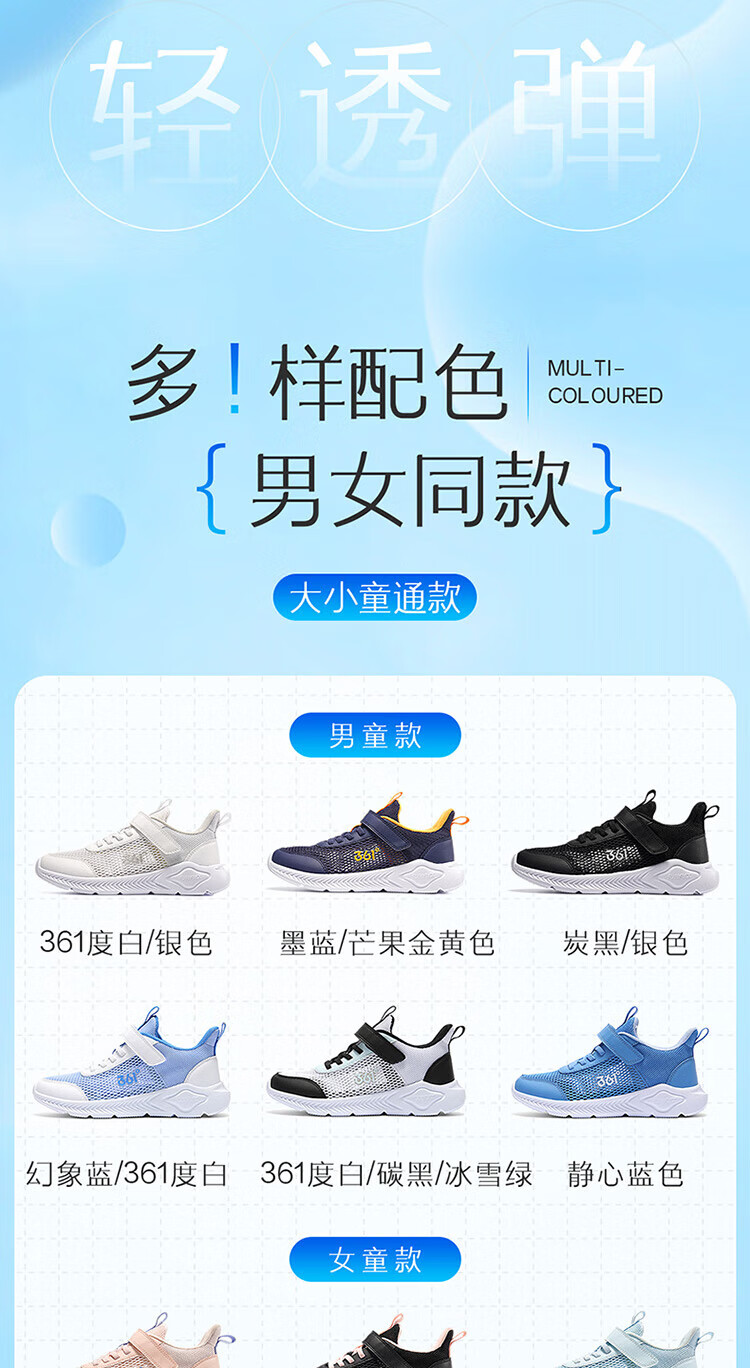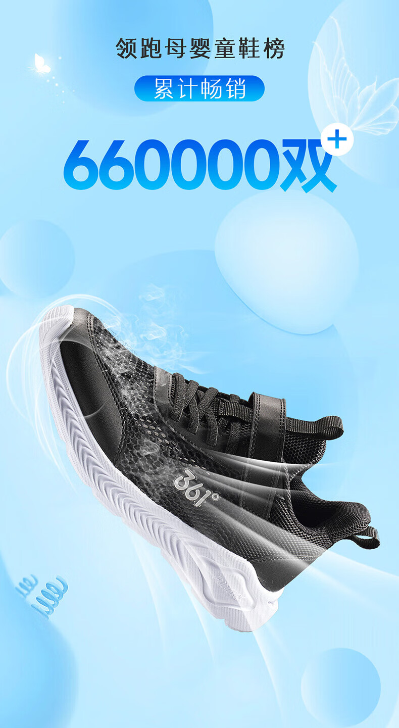 361°儿童运动鞋男童跑鞋夏季大网孔轻便魔术贴女童休闲透气运动鞋 【大网孔】碳黑/银色 36