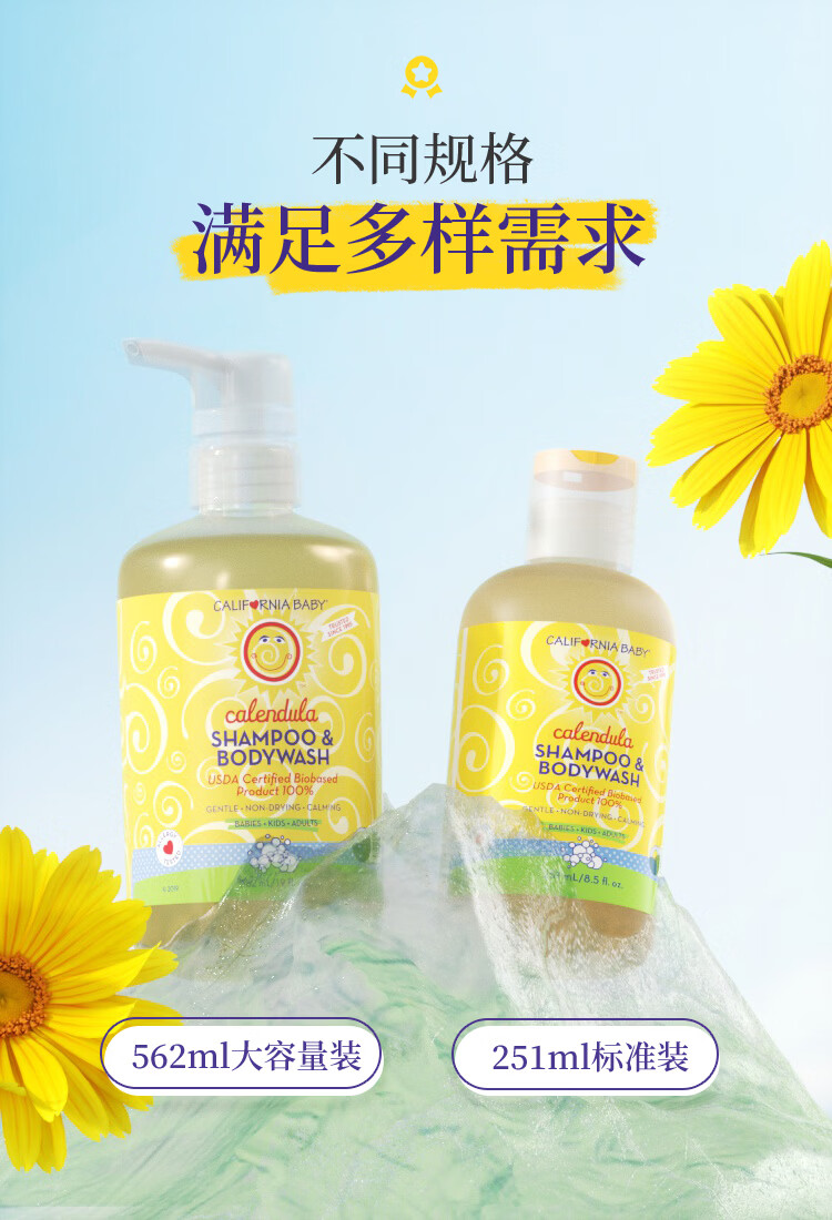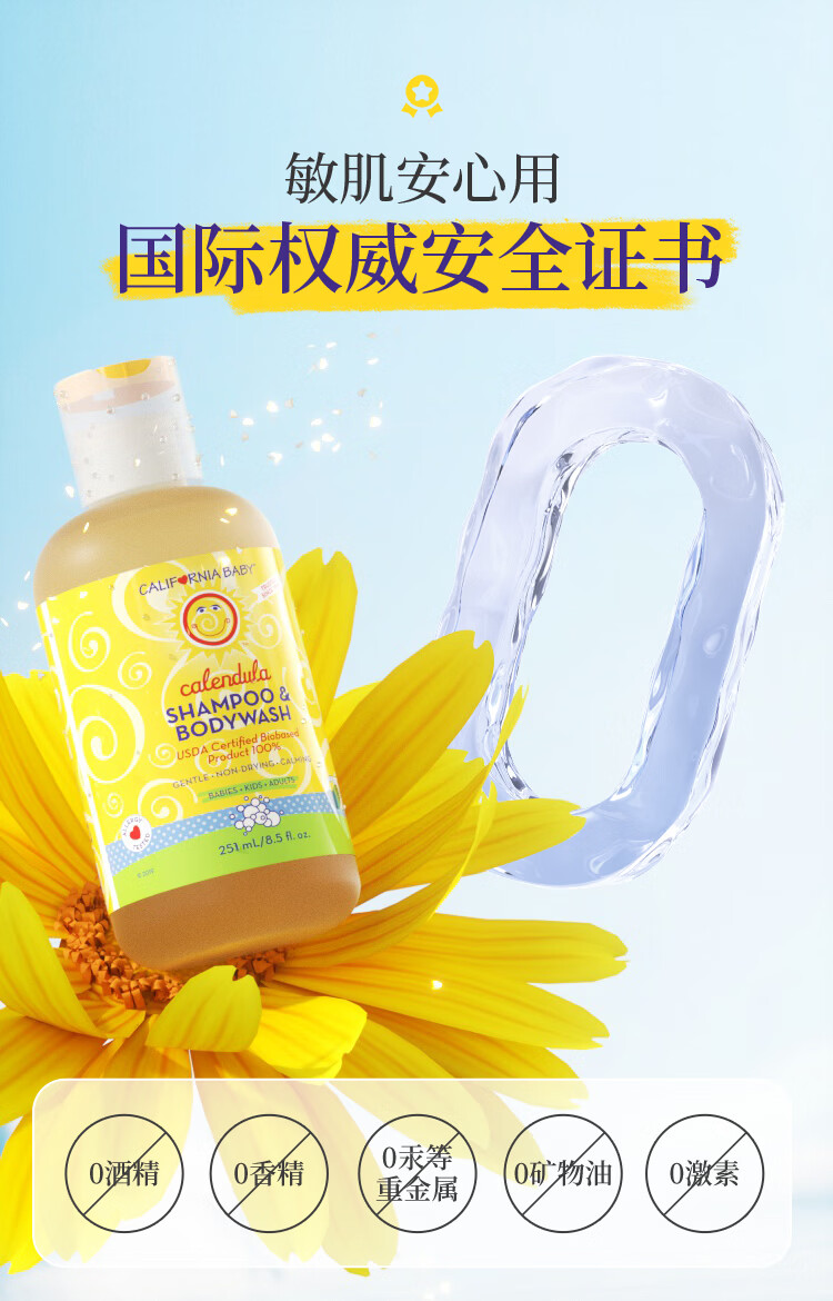 加州宝宝金盏花洗沐二合一儿童沐浴露洗护洗澡洗头发母婴店0-3岁 【无泪配方】金盏花二合一251ml
