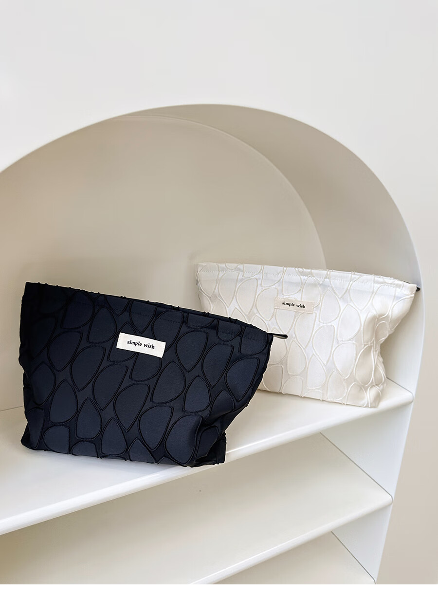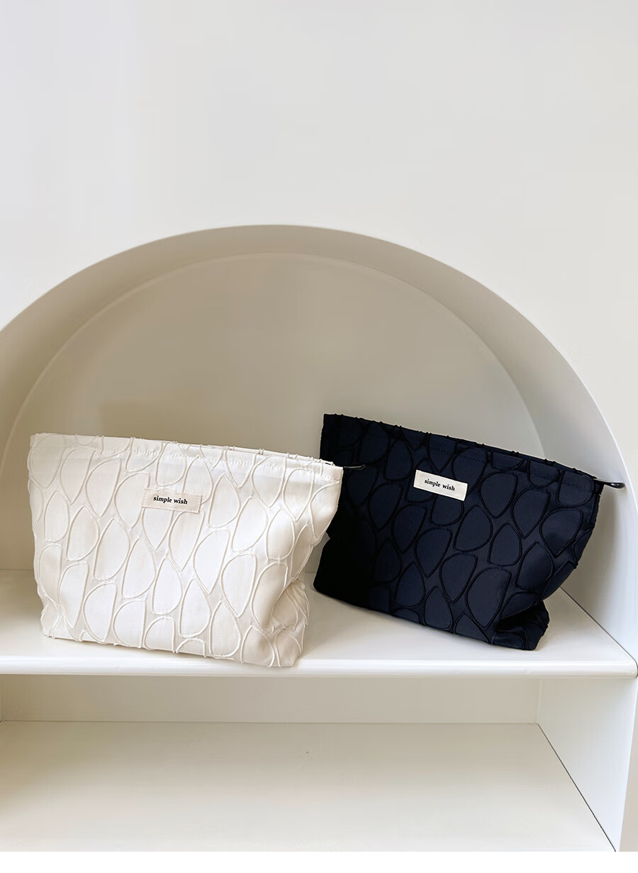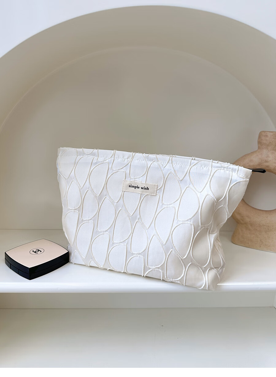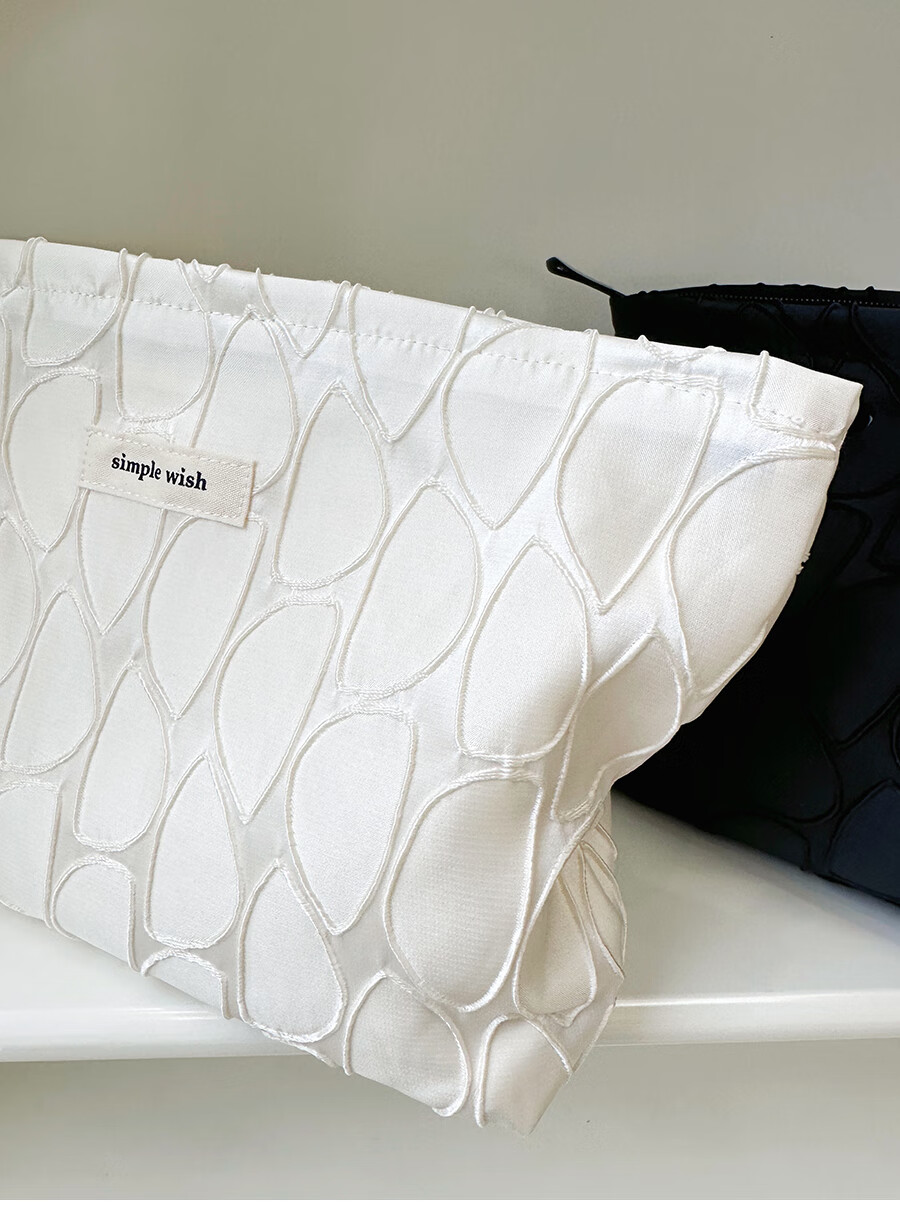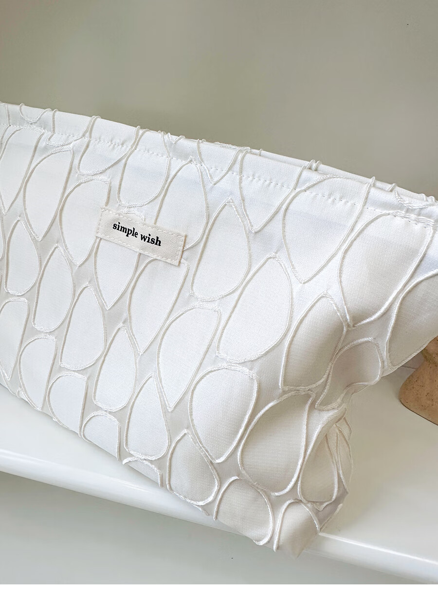 GUIG德国进口品质感几何提花化妆包大容量拉链内胆包帆布收纳袋纯色高 几何叶片白色