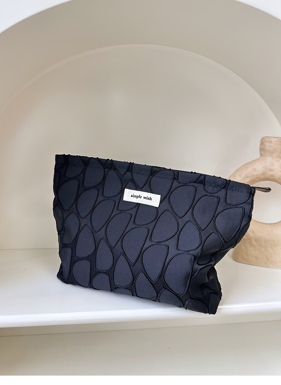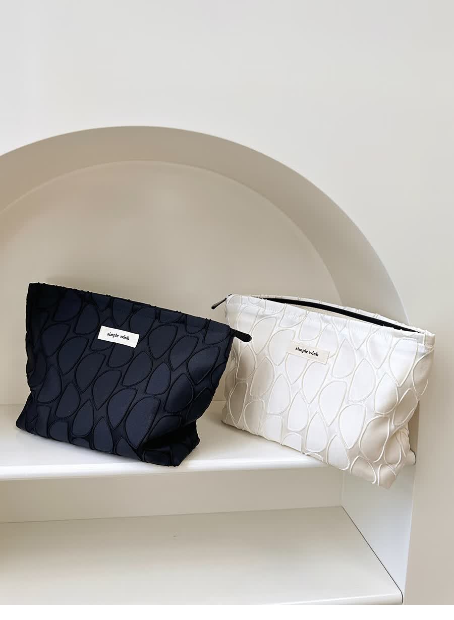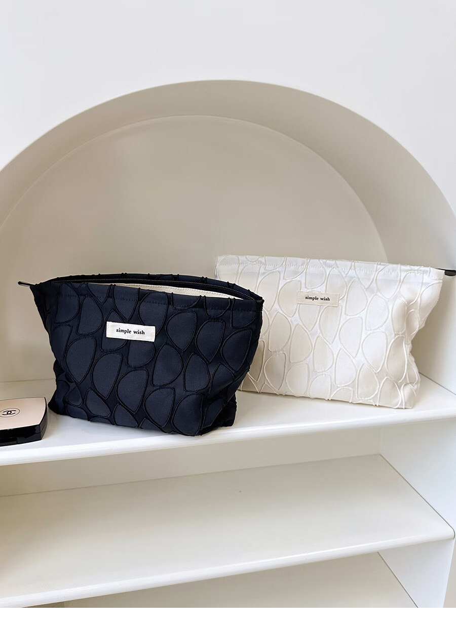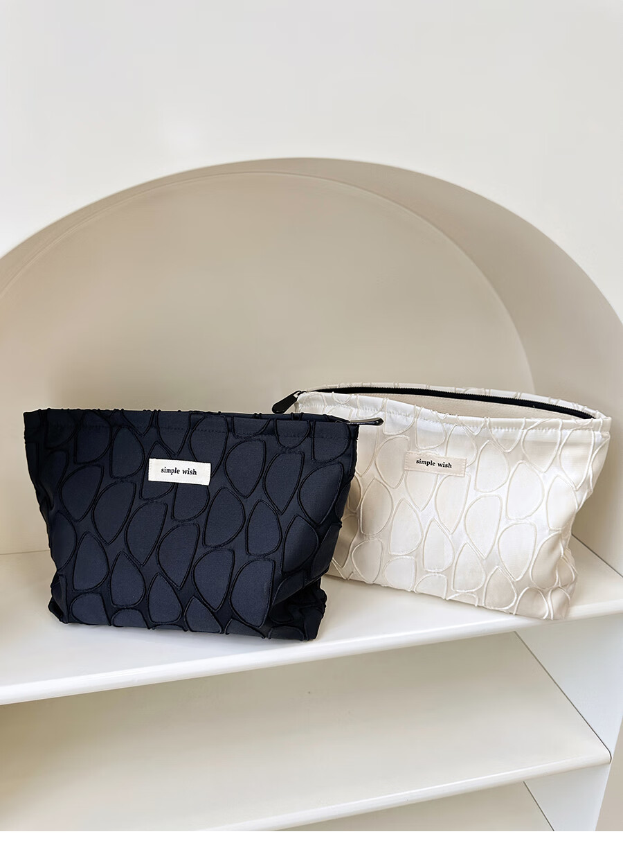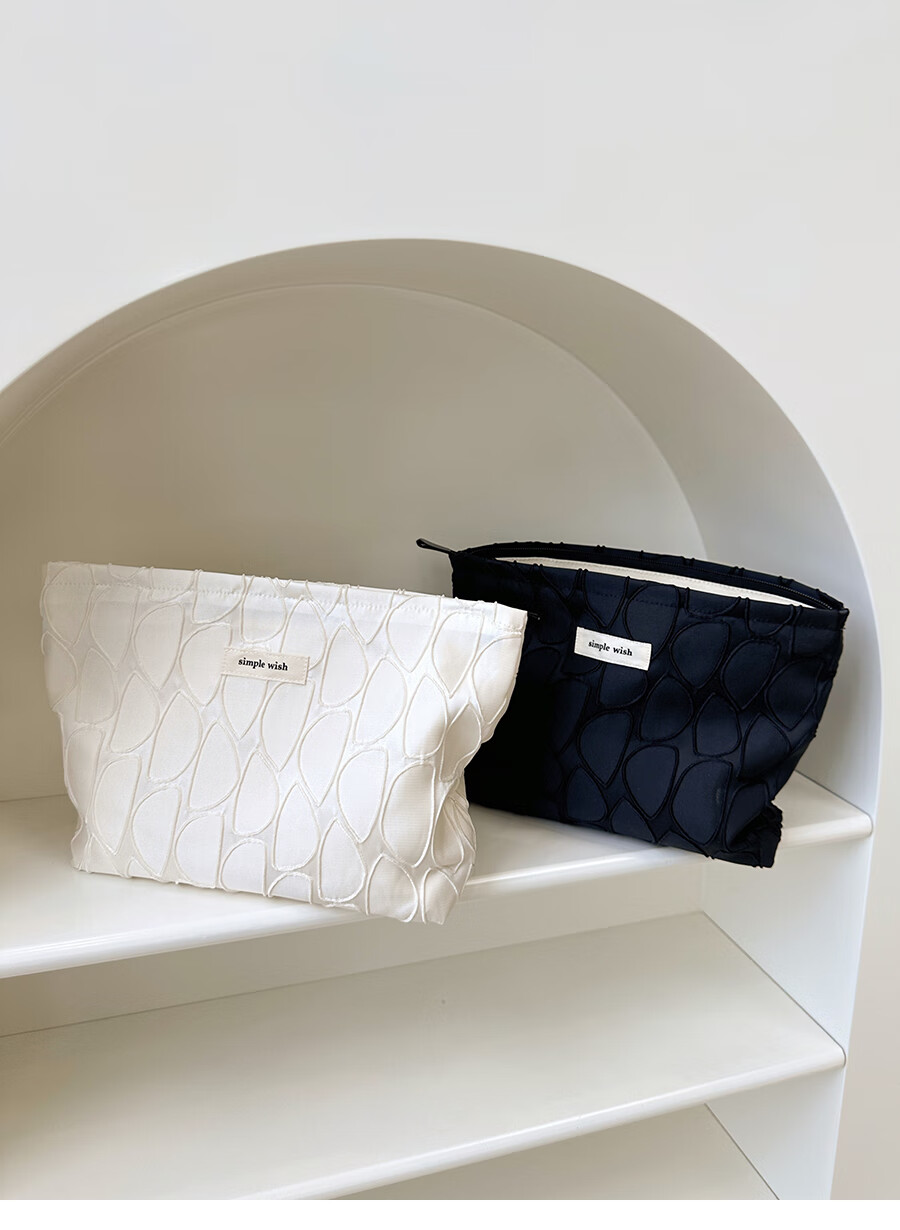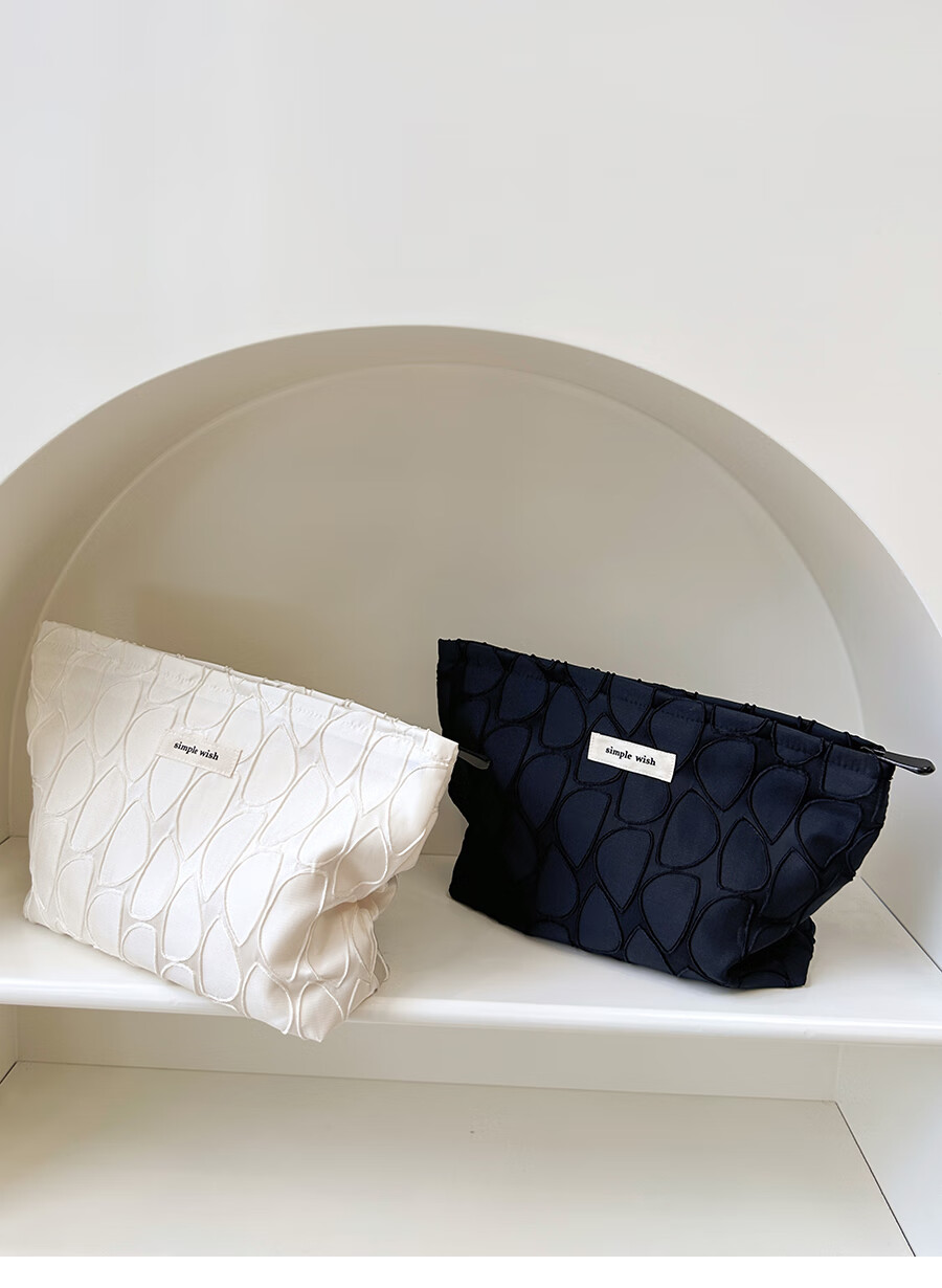 GUIG德国进口品质感几何提花化妆包大容量拉链内胆包帆布收纳袋纯色高 几何叶片白色
