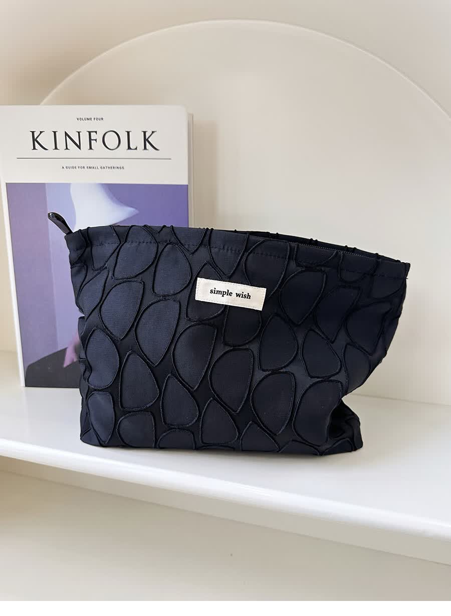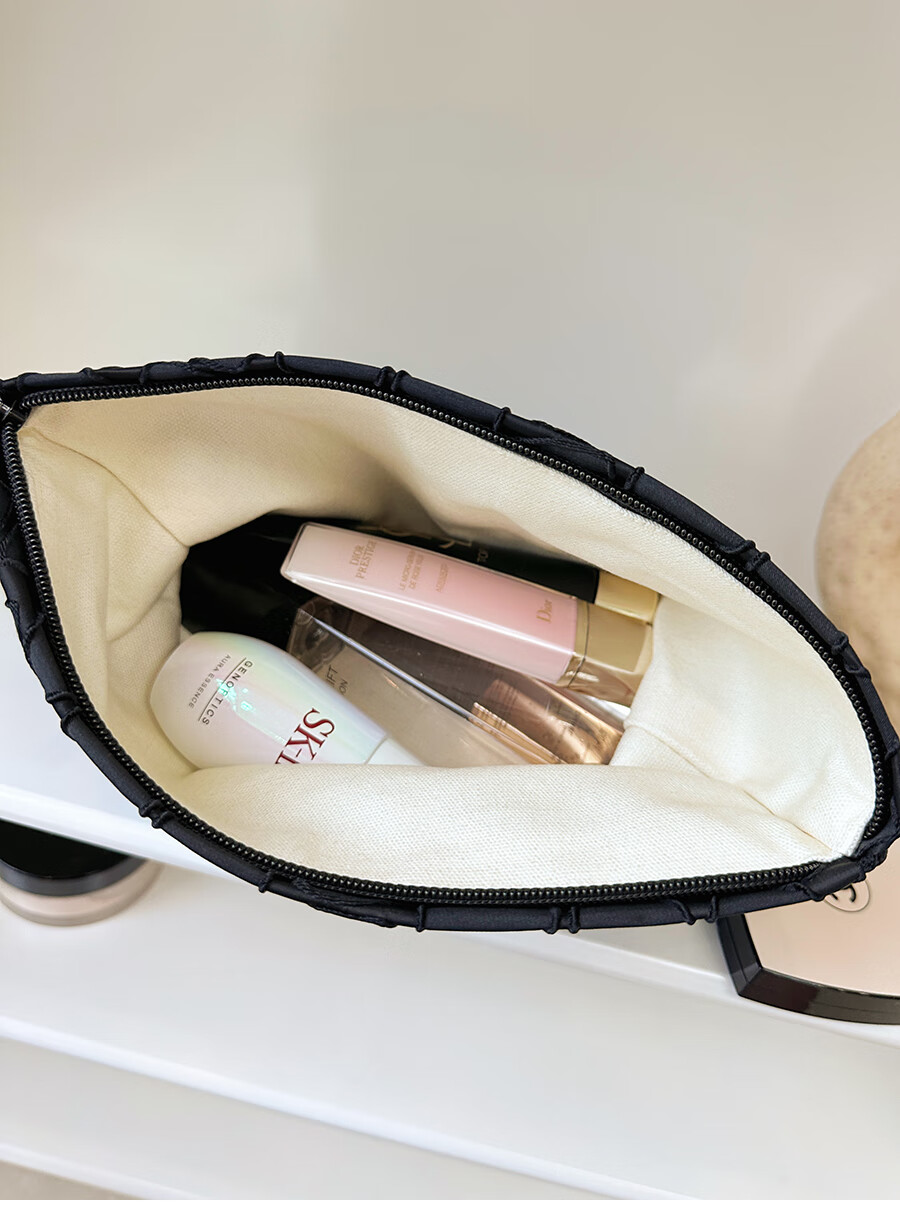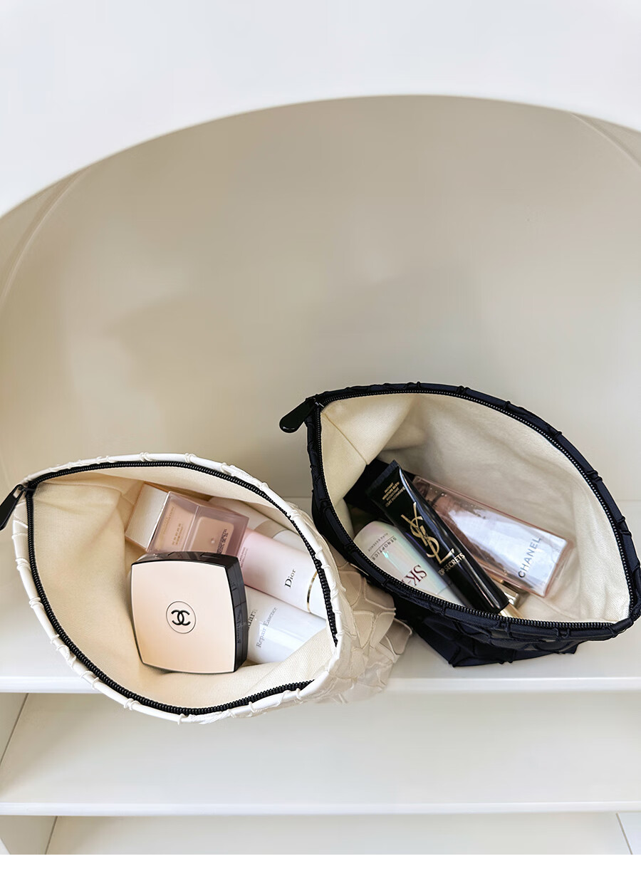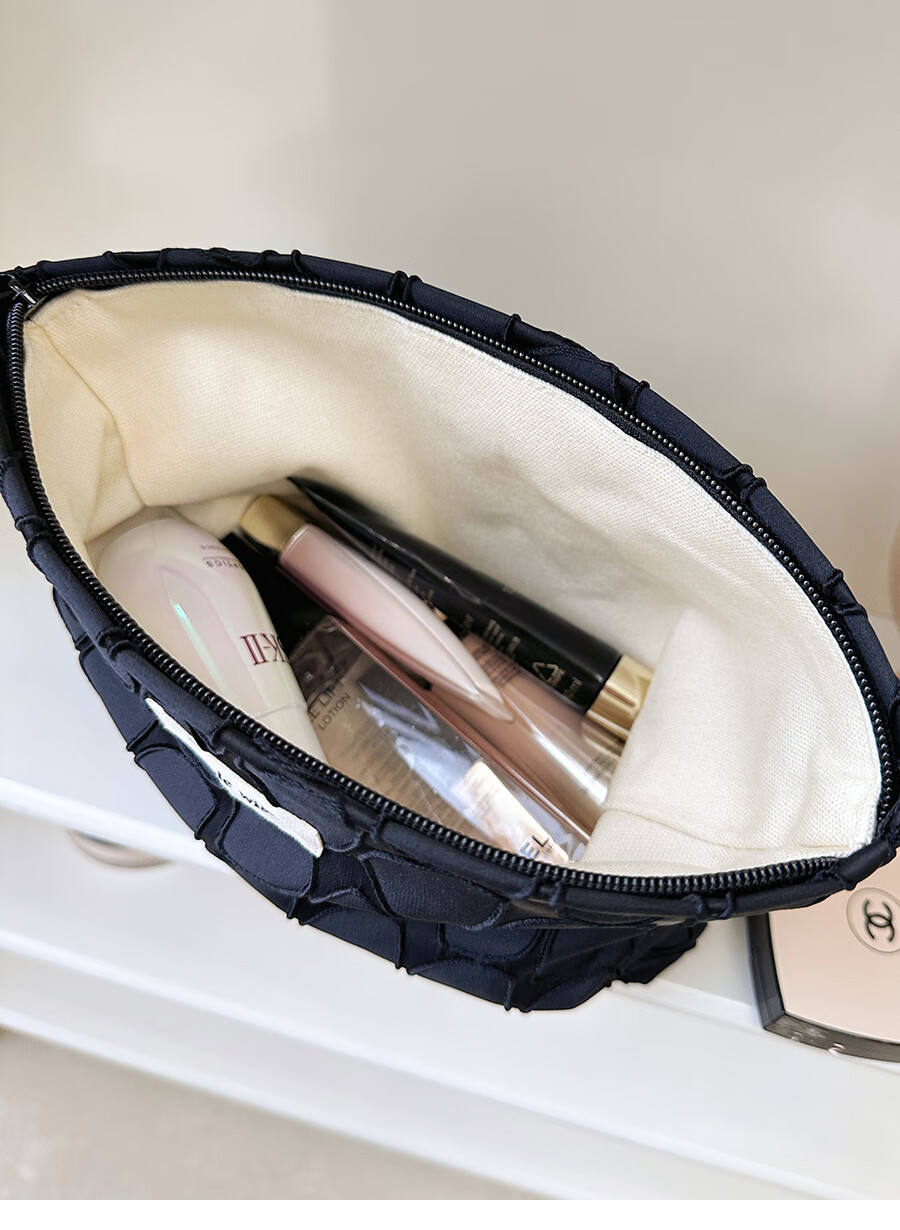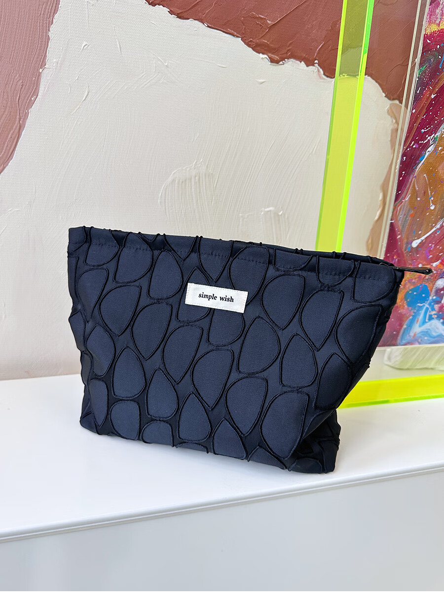 GUIG德国进口品质感几何提花化妆包大容量拉链内胆包帆布收纳袋纯色高 几何叶片白色