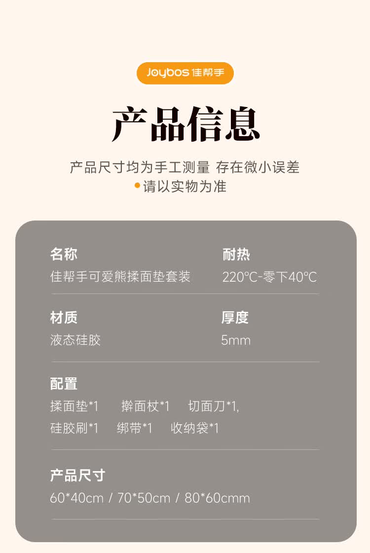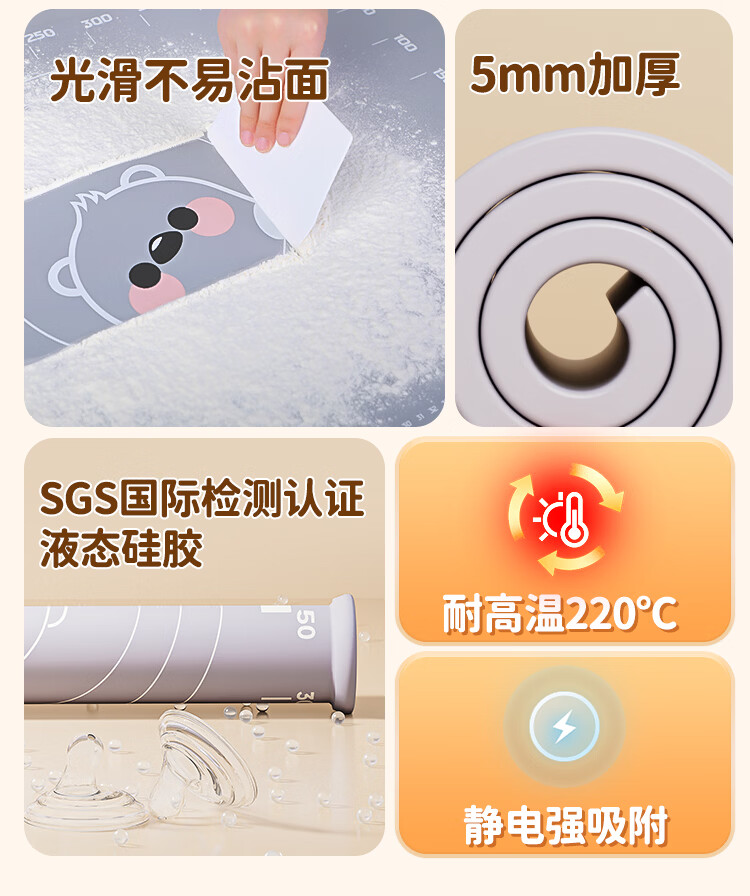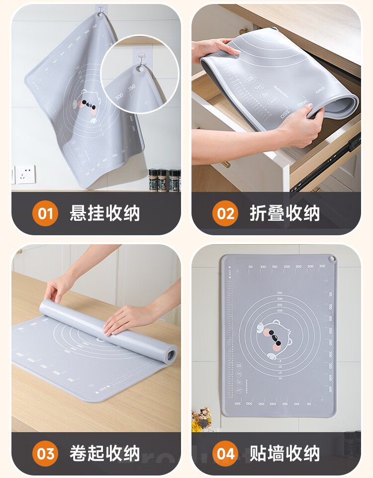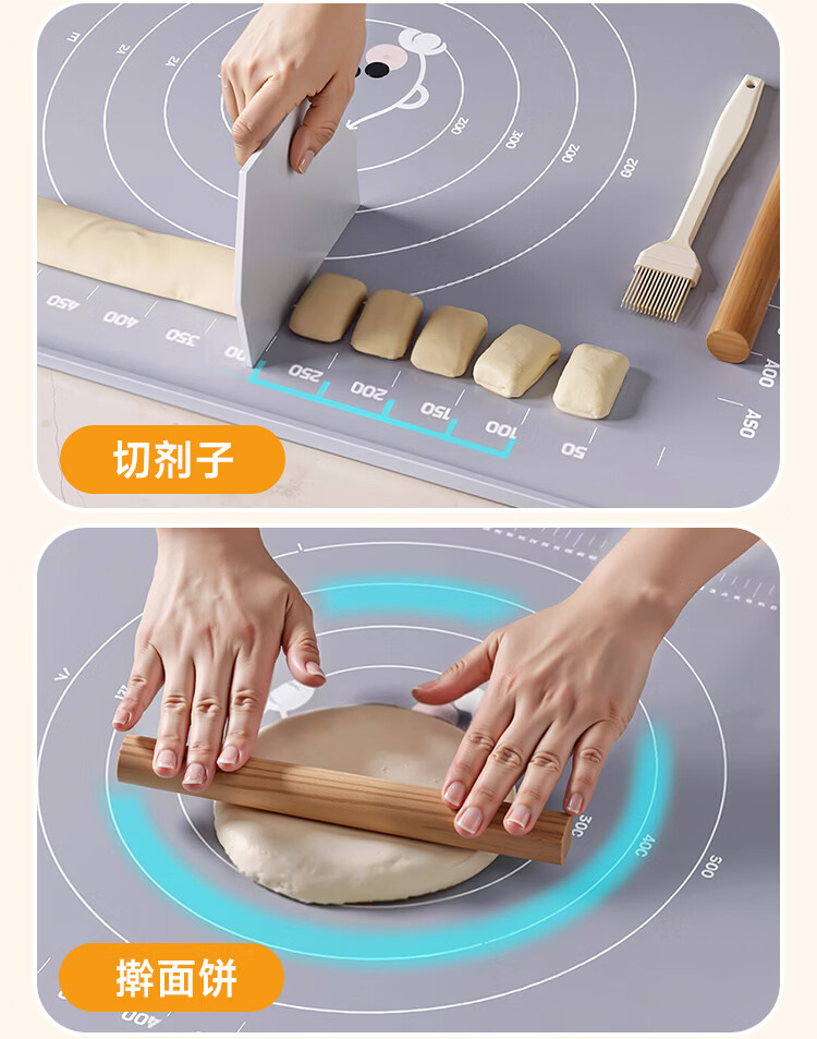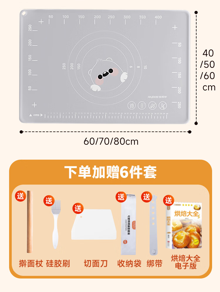 佳帮手硅胶揉面垫食品级擀面垫和面垫厨房防滑案板60*40cm加厚6件