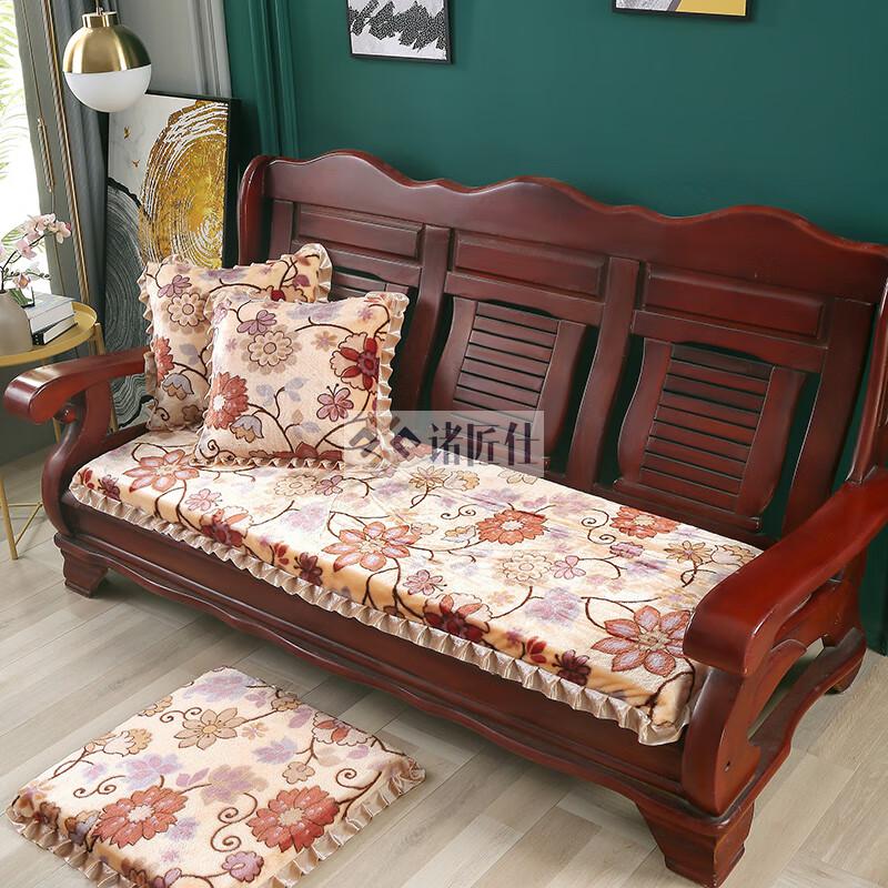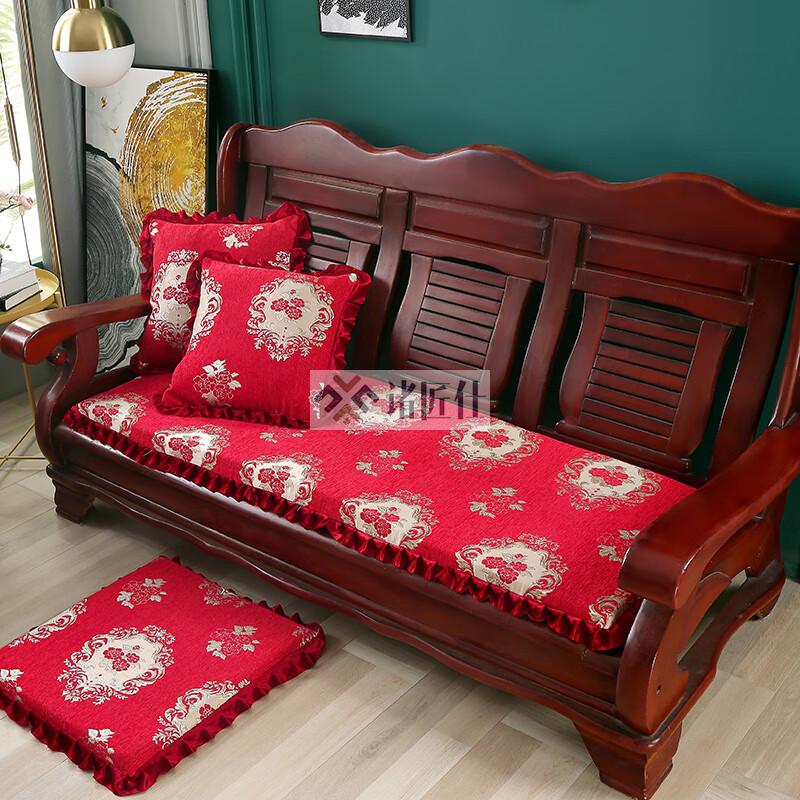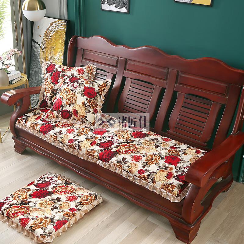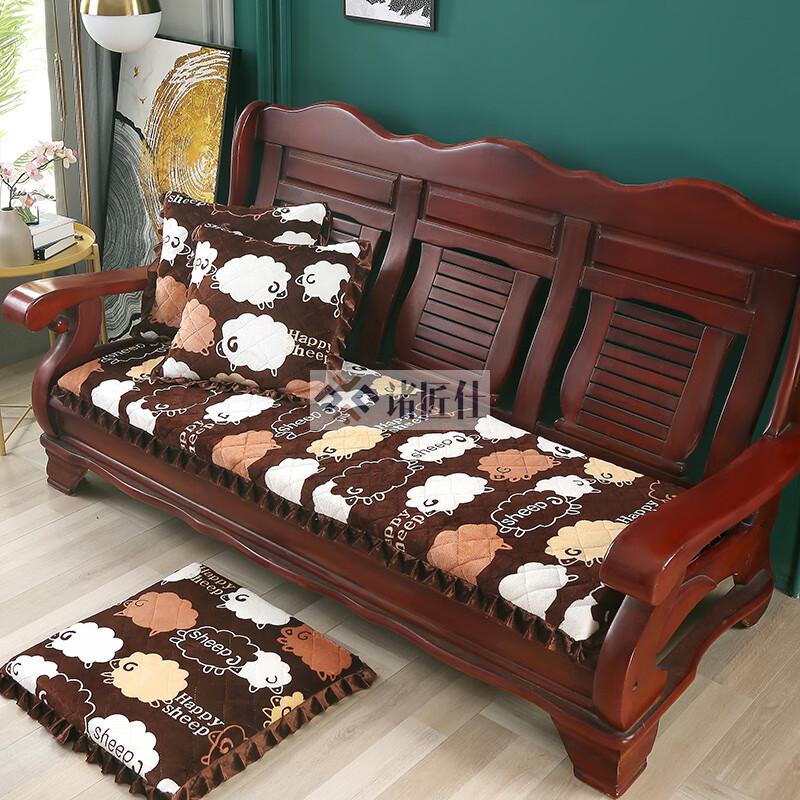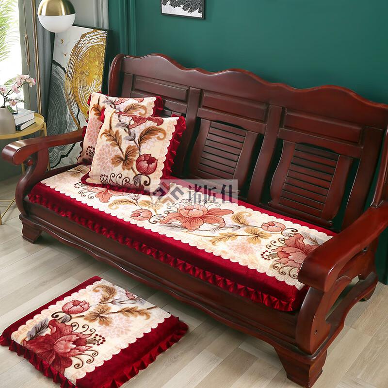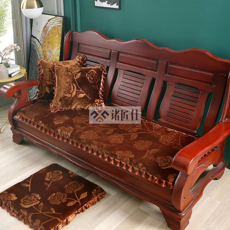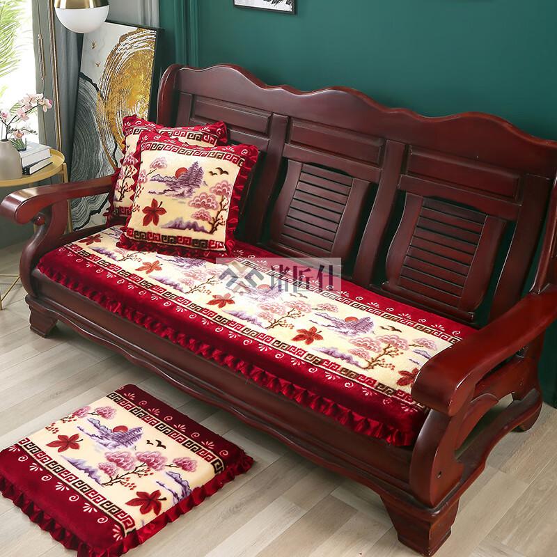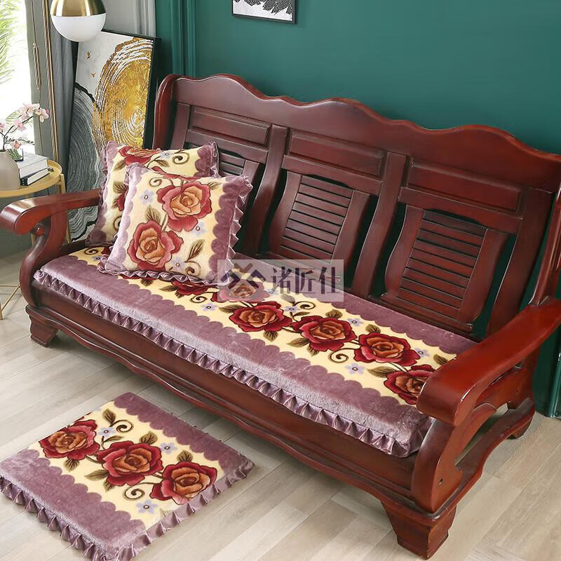 诸匠仕老式木质三人沙发垫加厚实木椅垫海绵垫防滑三人座通用红木可拆洗 紫色 雪尼尔紫 50cm*198cm四人座