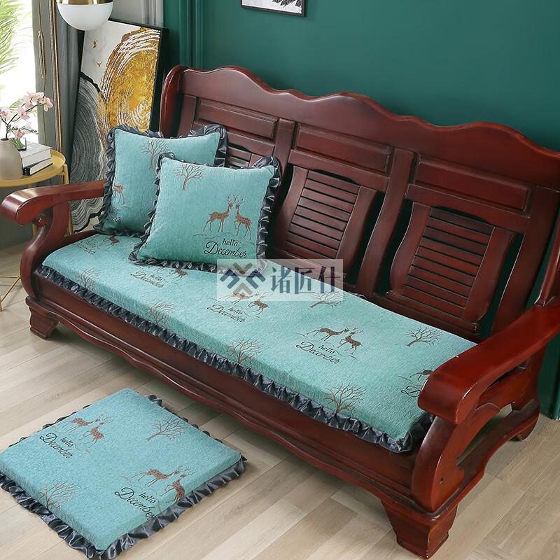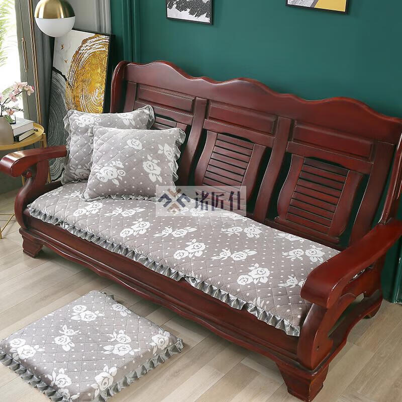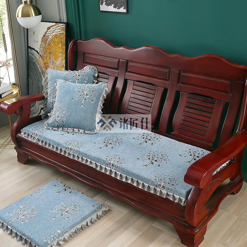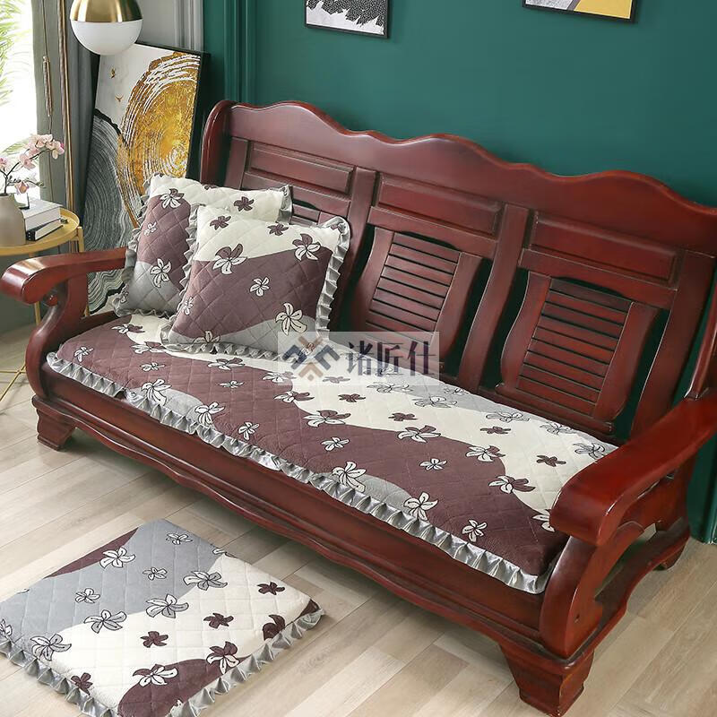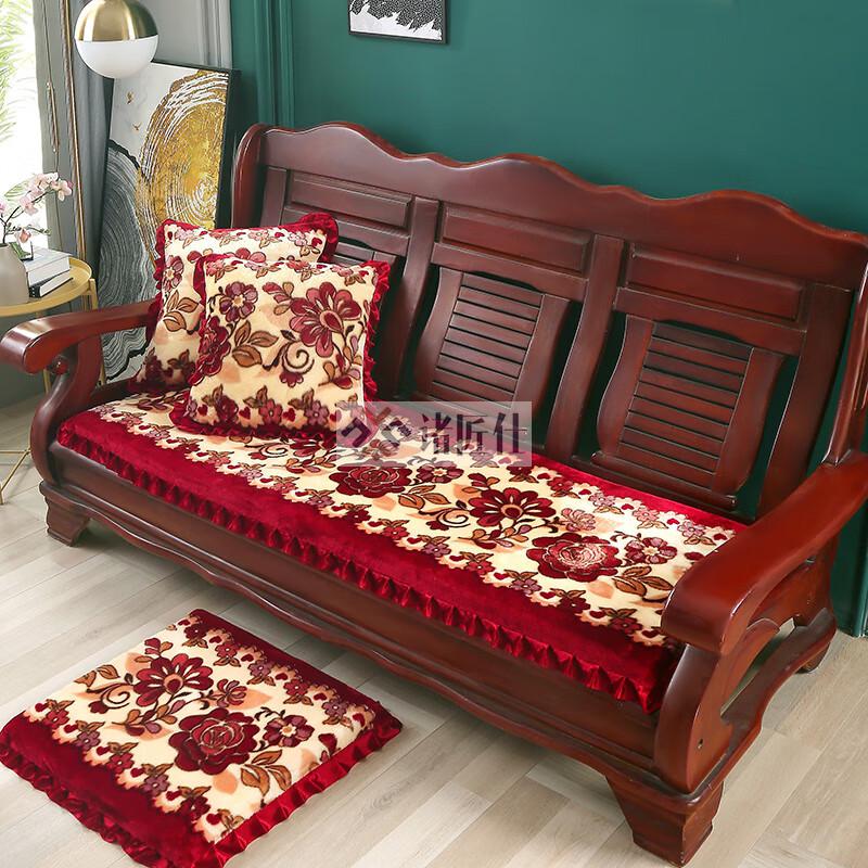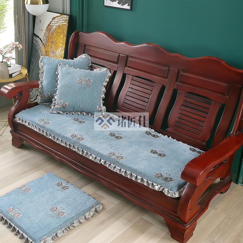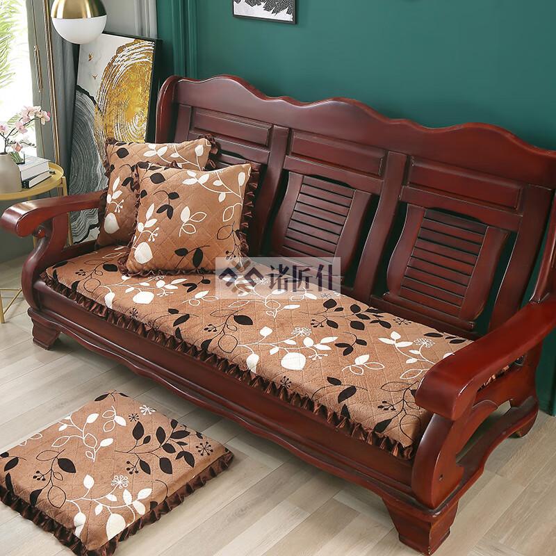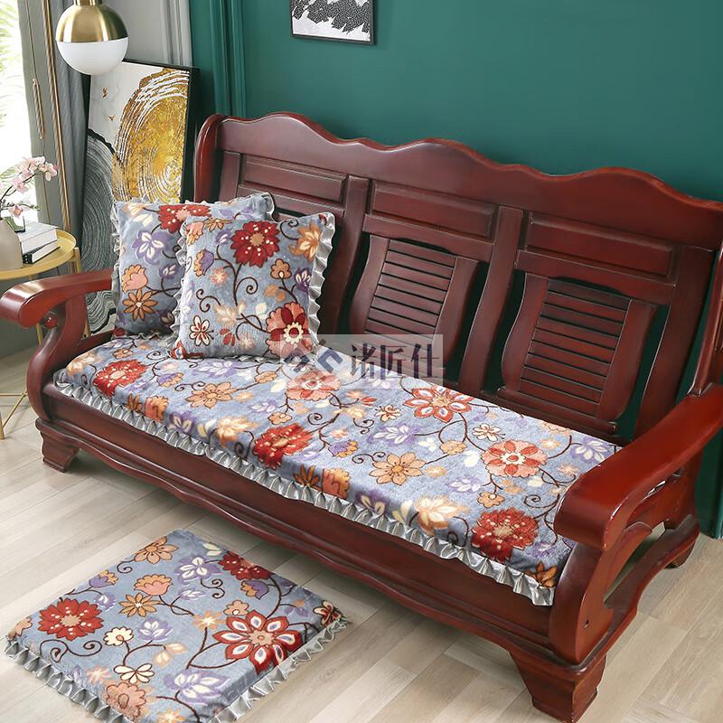 诸匠仕老式木质三人沙发垫加厚实木椅垫海绵垫防滑三人座通用红木可拆洗 紫色 雪尼尔紫 50cm*198cm四人座