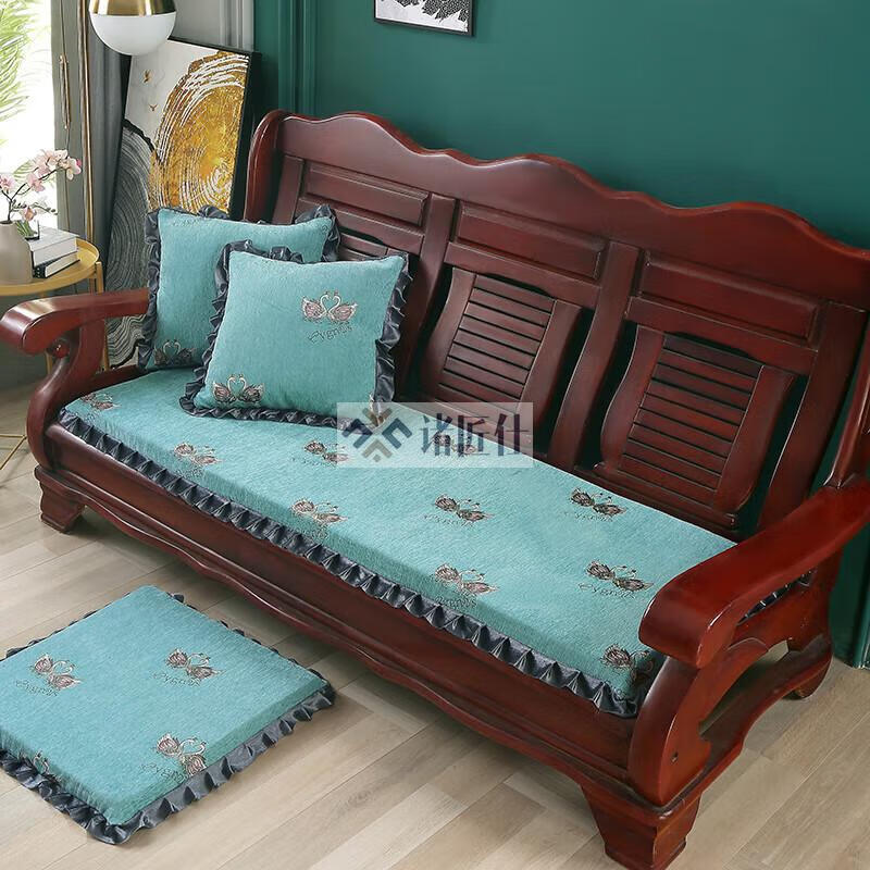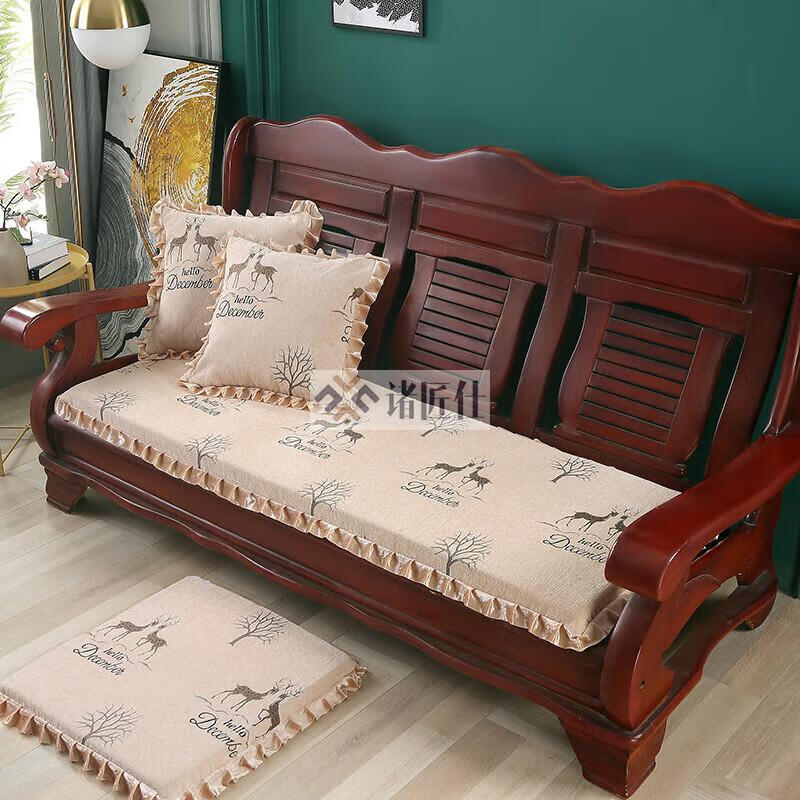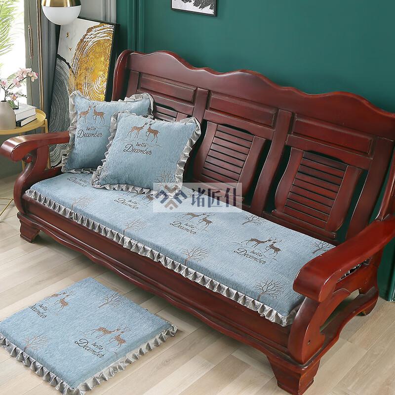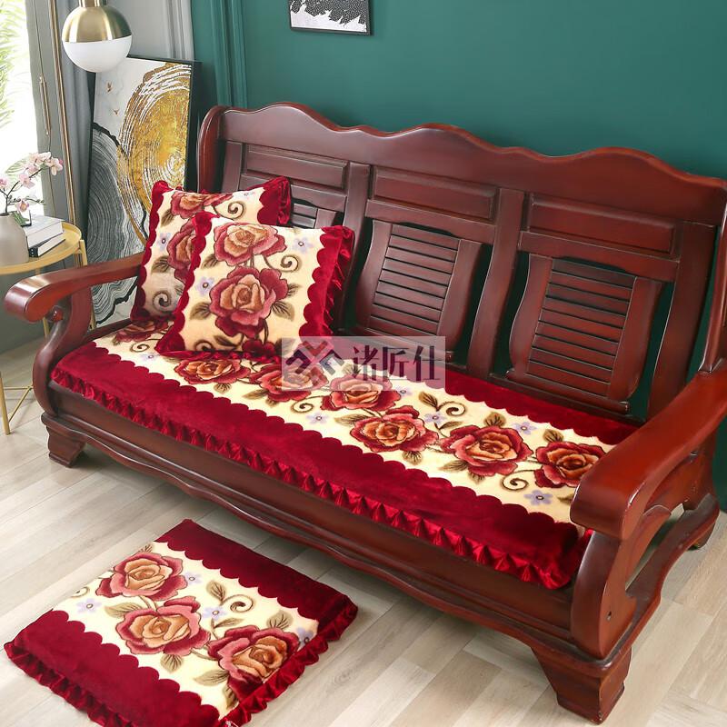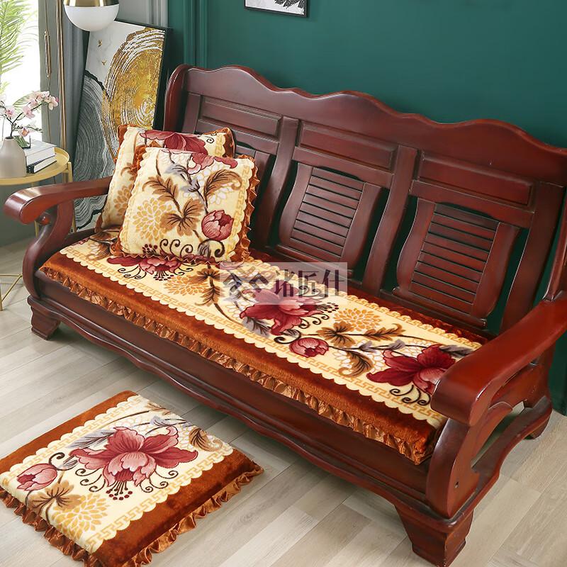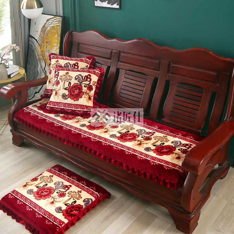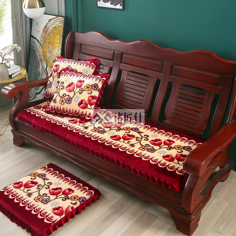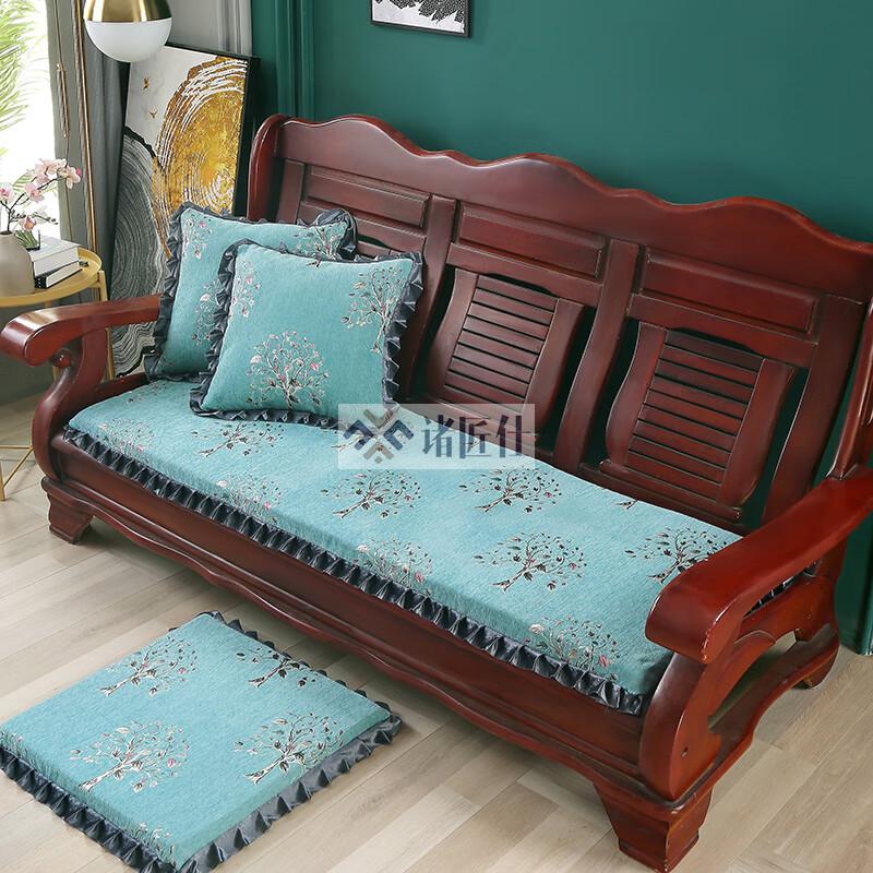 诸匠仕老式木质三人沙发垫加厚实木椅垫海绵垫防滑三人座通用红木可拆洗 紫色 雪尼尔紫 50cm*198cm四人座