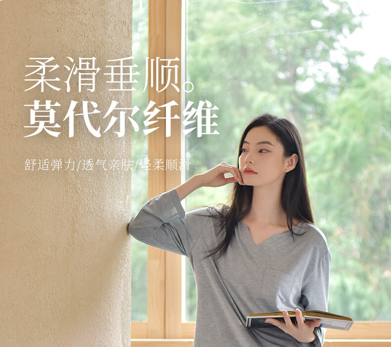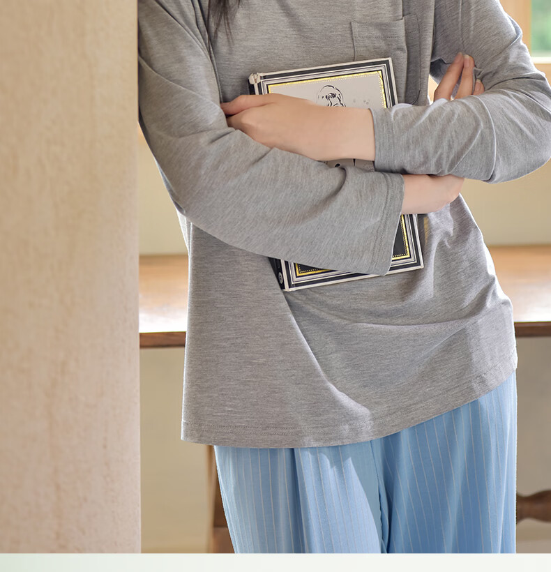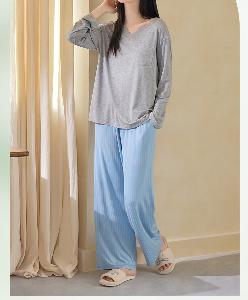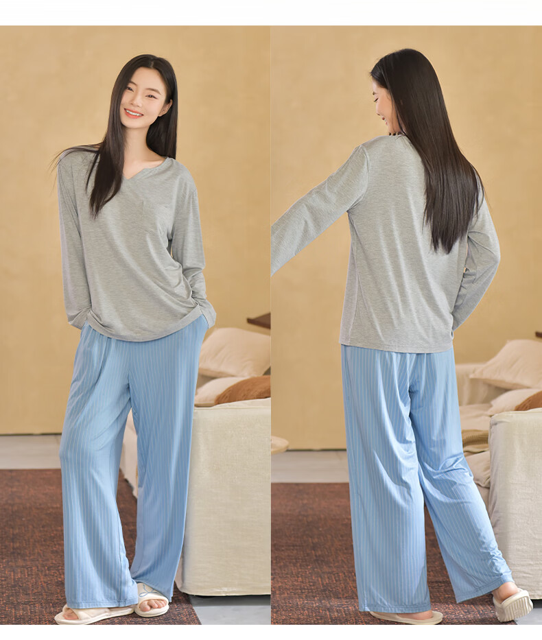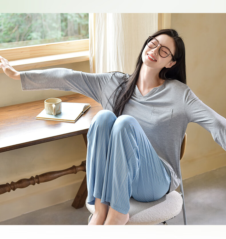轩靓(XULEN)莫代尔睡衣女春秋款休闲长袖可外穿慵懒风宽松凉感家居服套装 64704花灰 L 建议体重100-120斤