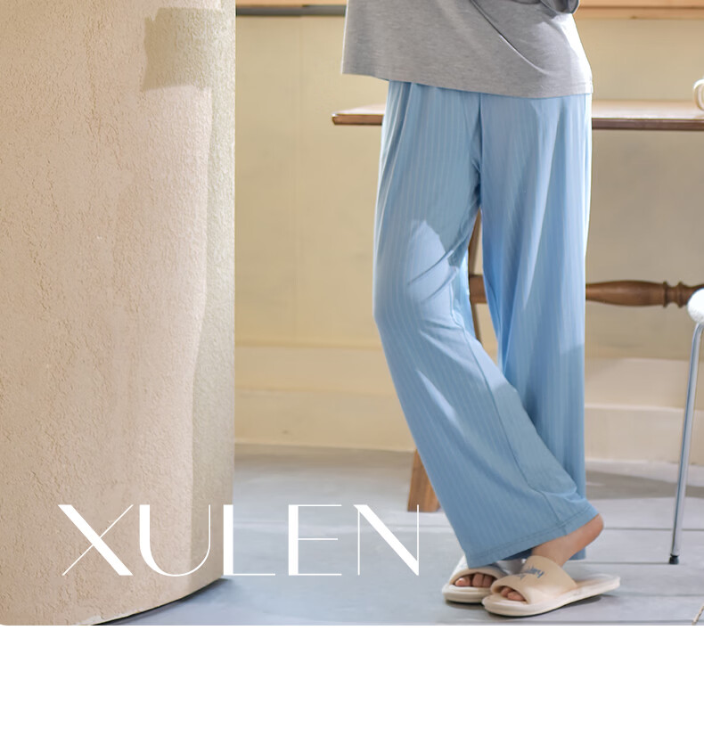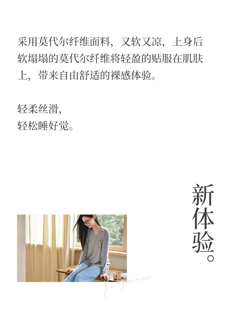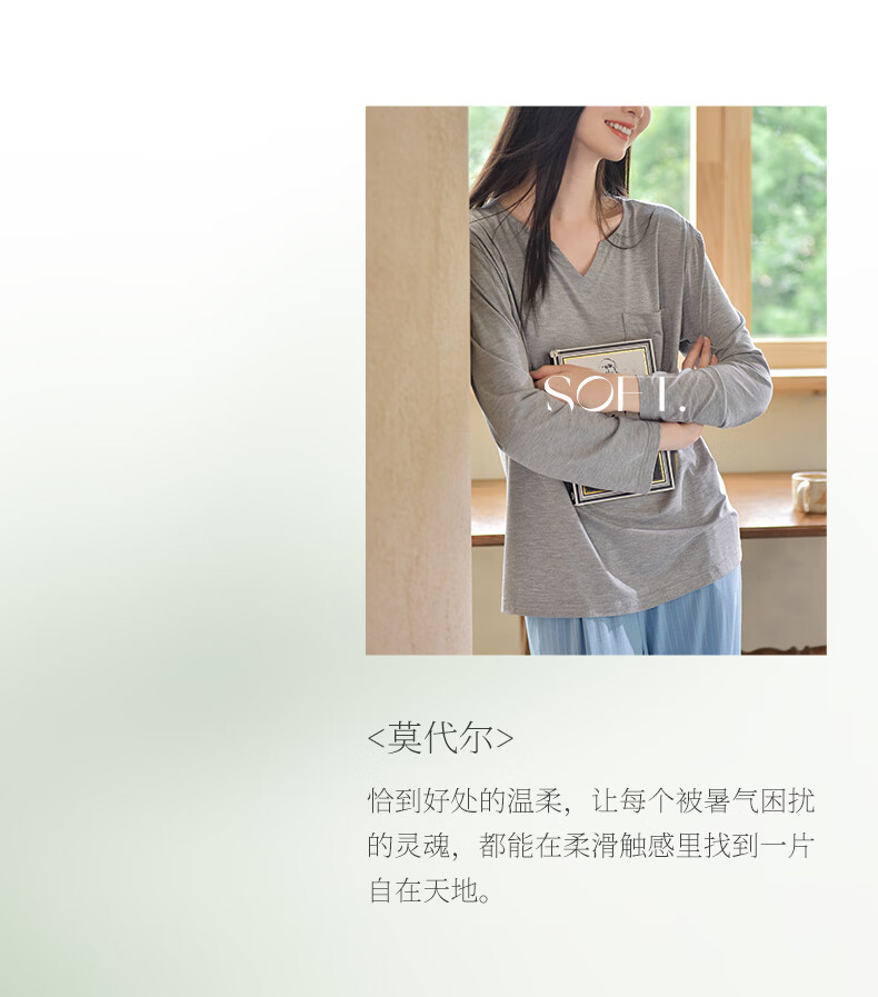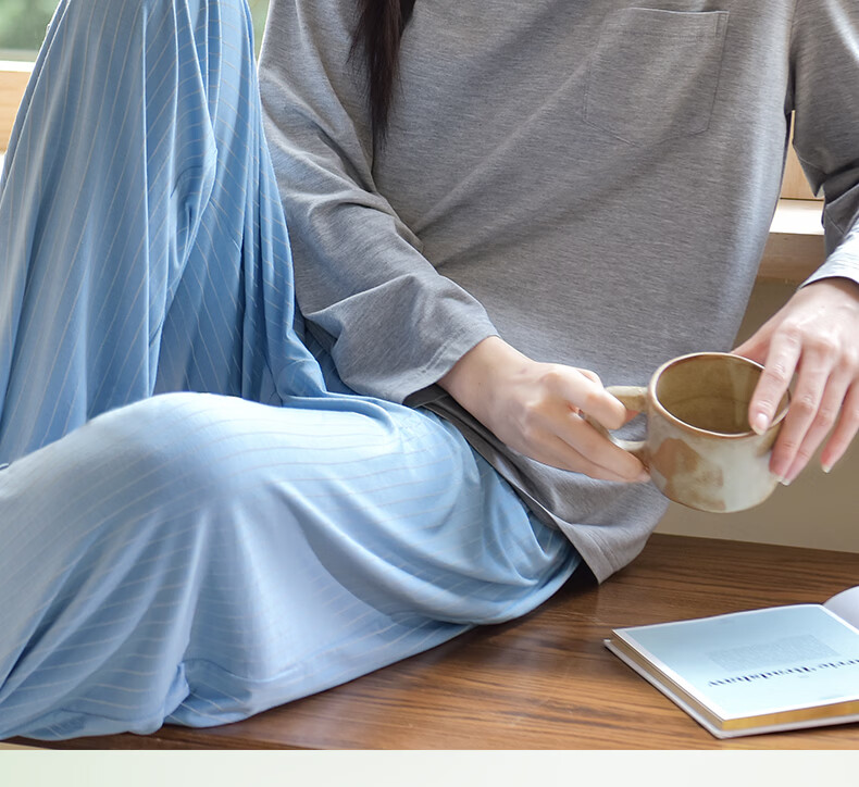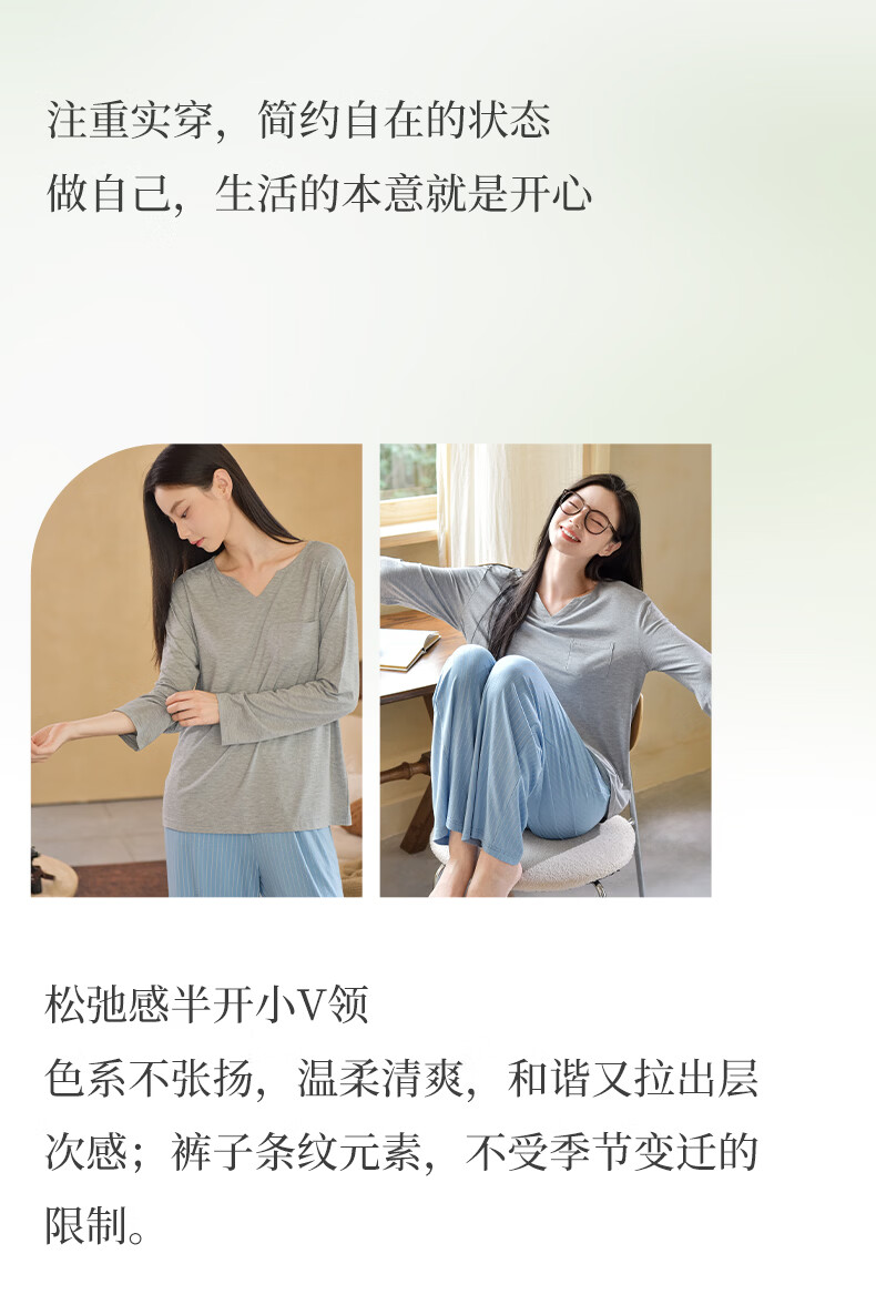 轩靓(XULEN)莫代尔睡衣女春秋款休闲长袖可外穿慵懒风宽松凉感家居服套装 64704花灰 L 建议体重100-120斤