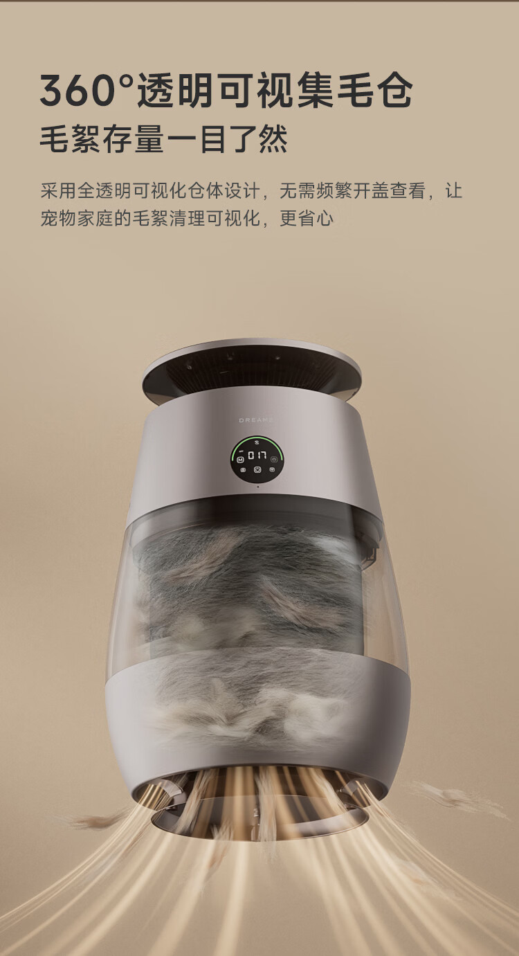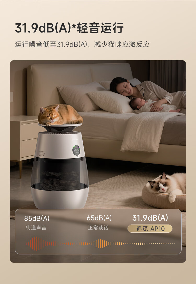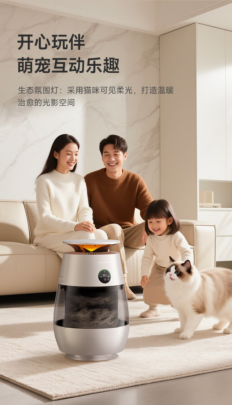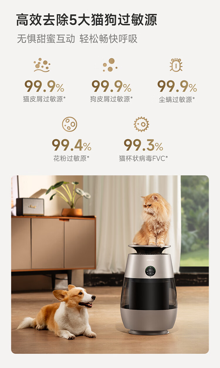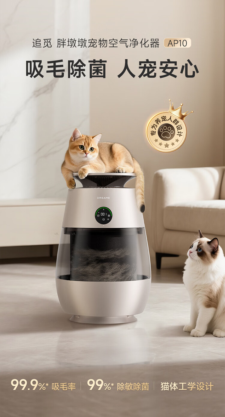 追觅胖墩墩宠物空气净化器强力吸猫毛吸附神器除浮毛室内除螨除尘除过敏原家用除异味养猫专用 深空灰