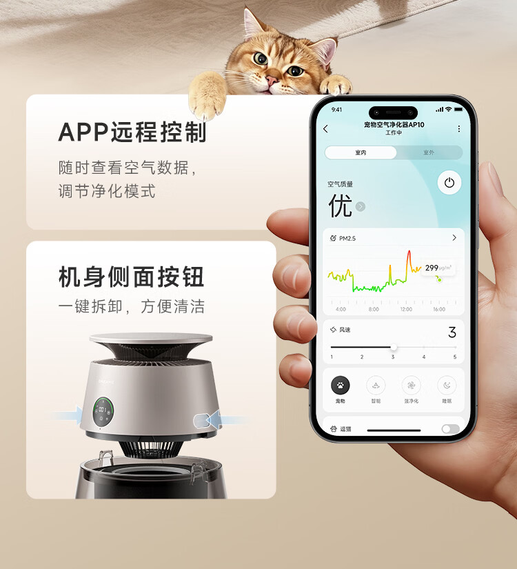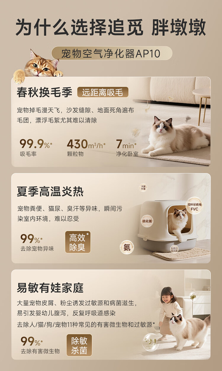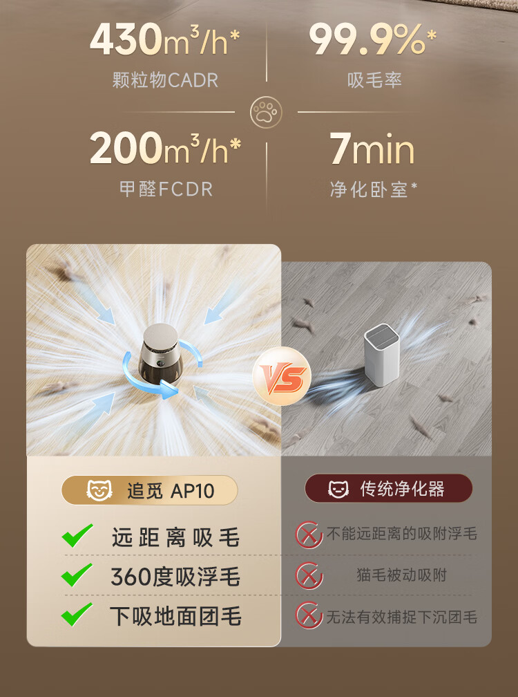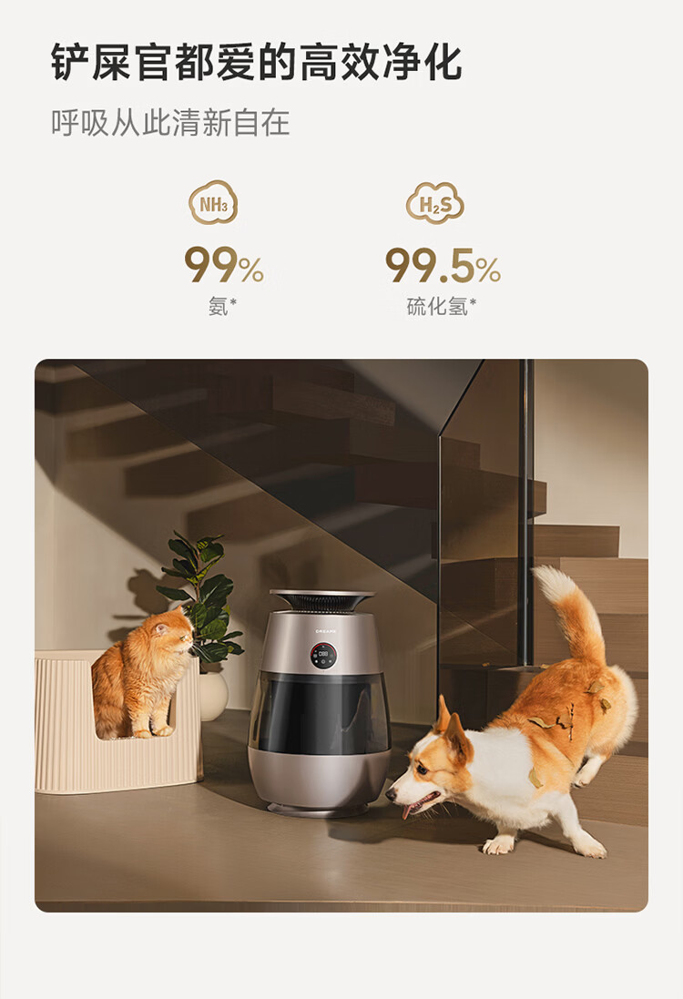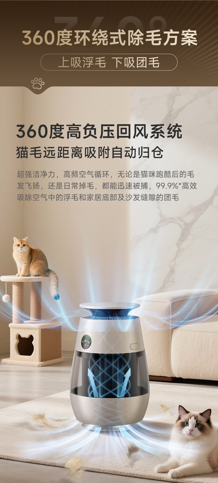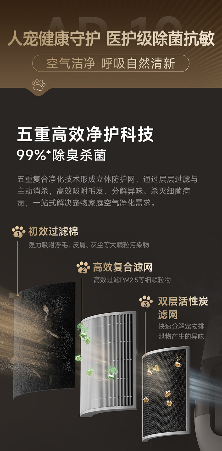 追觅胖墩墩宠物空气净化器强力吸猫毛吸附神器除浮毛室内除螨除尘除过敏原家用除异味养猫专用 深空灰