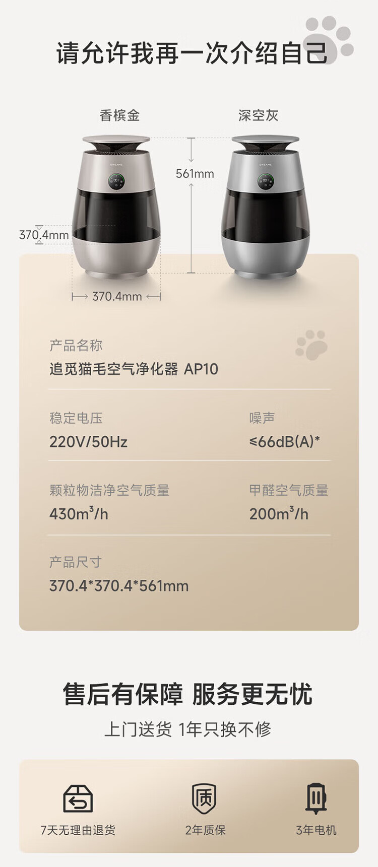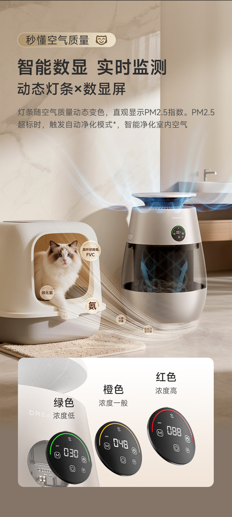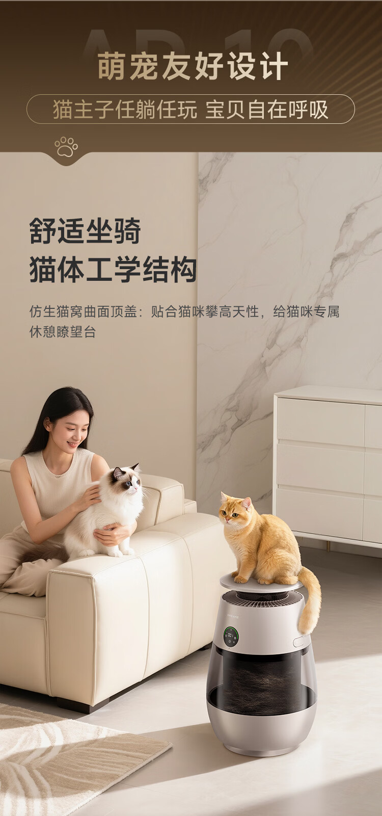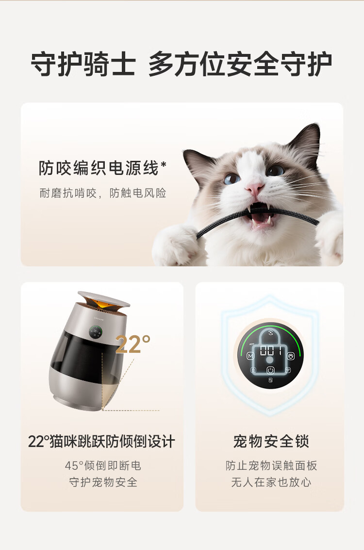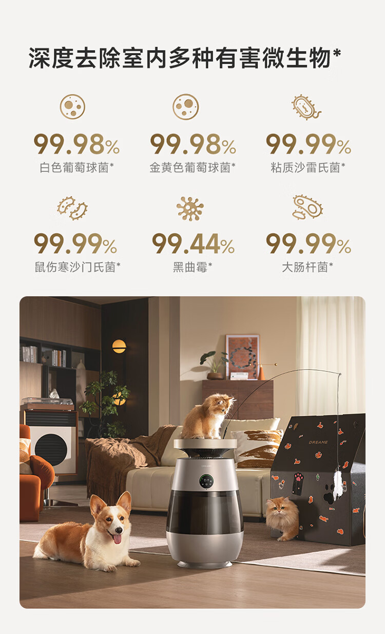 追觅胖墩墩宠物空气净化器强力吸猫毛吸附神器除浮毛室内除螨除尘除过敏原家用除异味养猫专用 深空灰