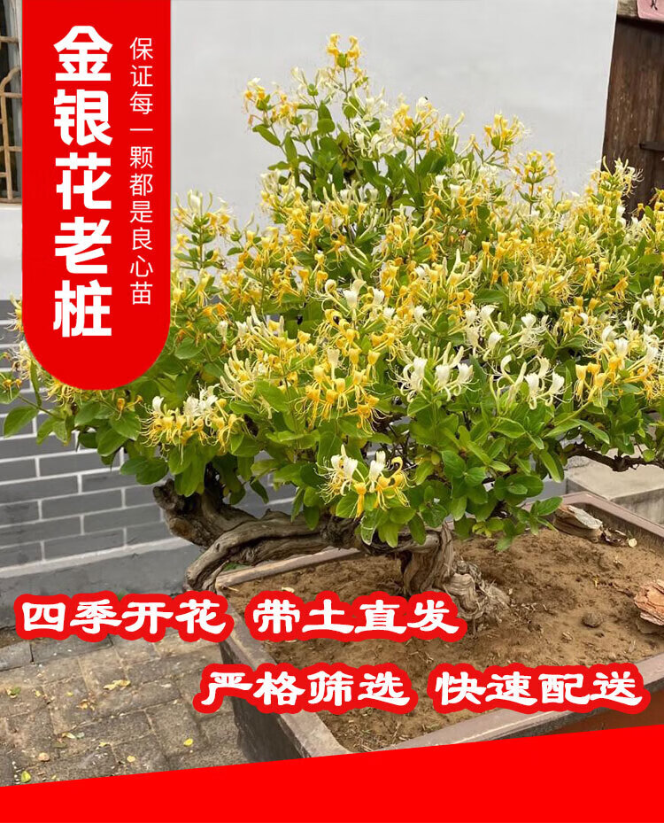 【四季开花】金银花老桩正宗名贵花可食用庭院阳台绿植四季好养 15年四季金银花1棵(粗8-10公分)