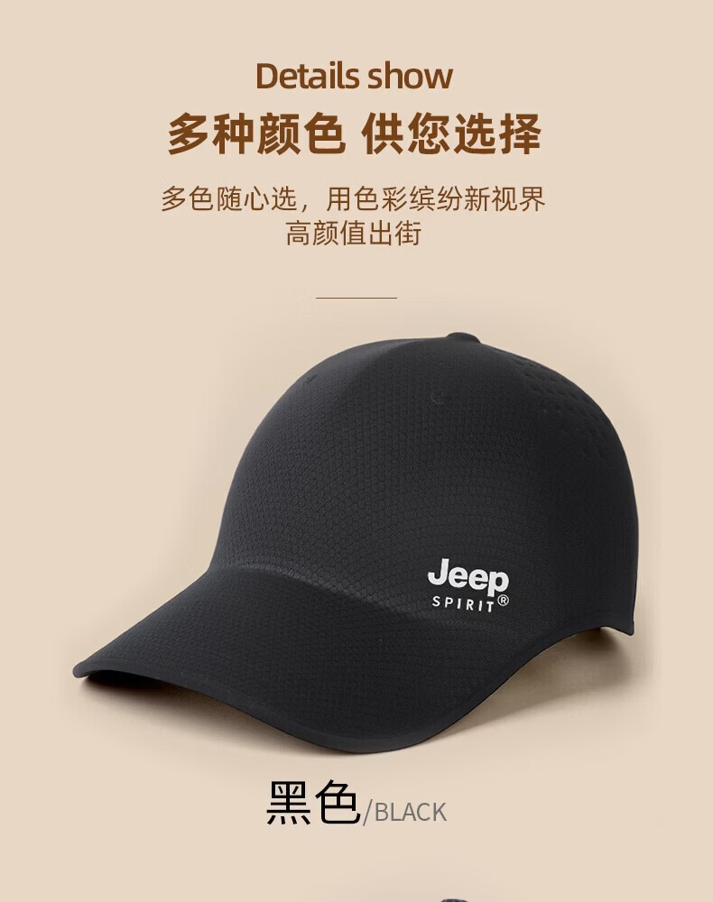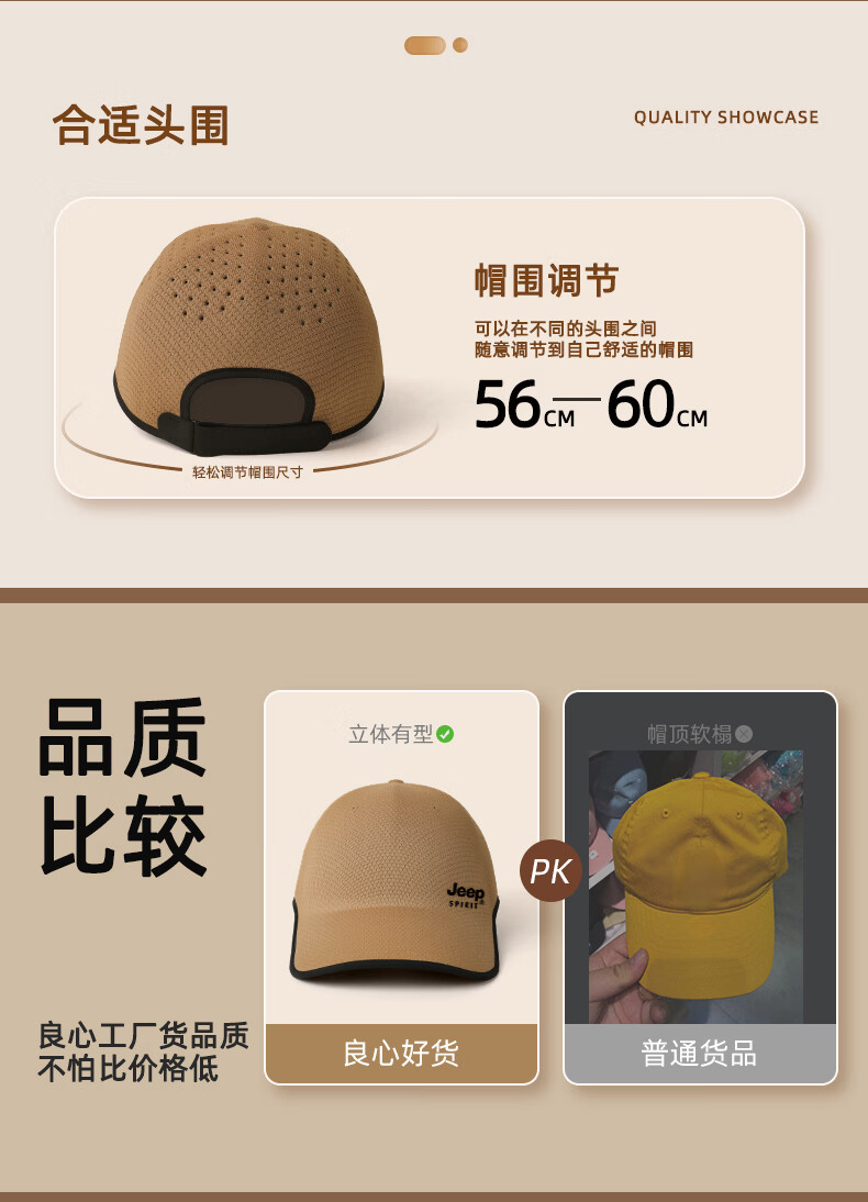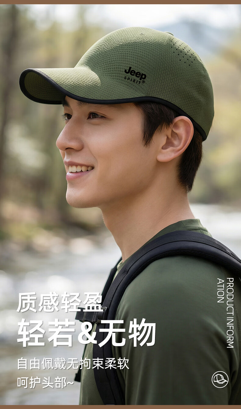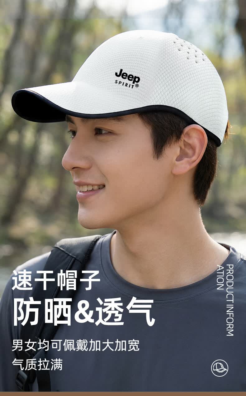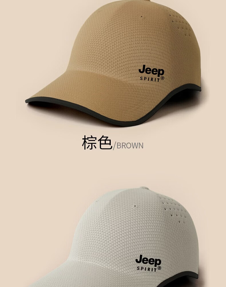 JEEP轻薄鸭舌帽棒球帽男士帽子时尚运动户外遮阳帽全脸防晒帽女防泼水 轻量化防晒棒球帽 棕色 均码