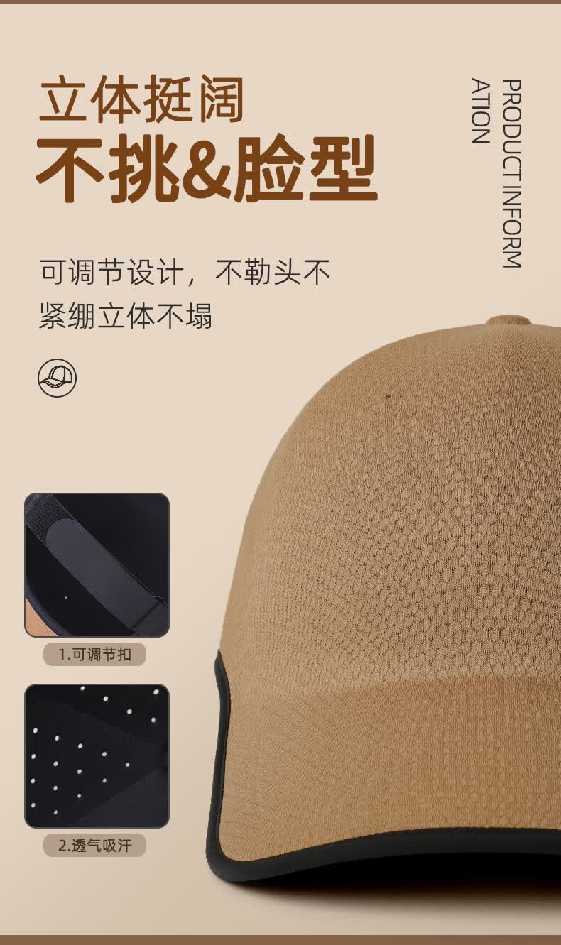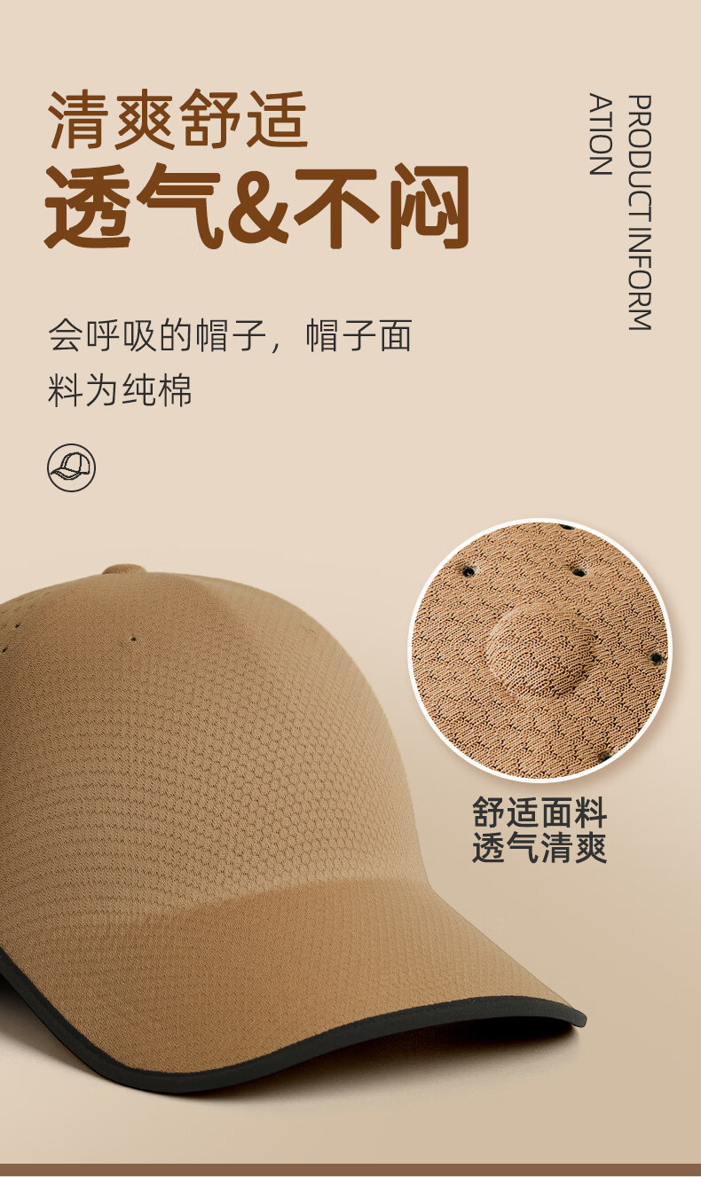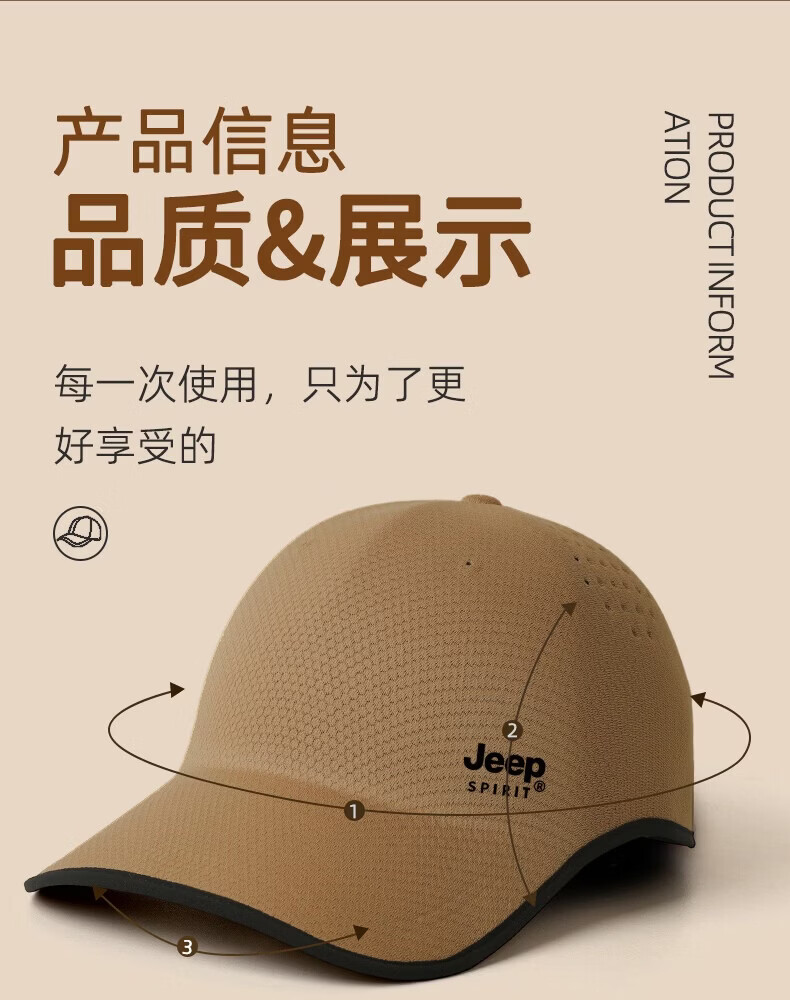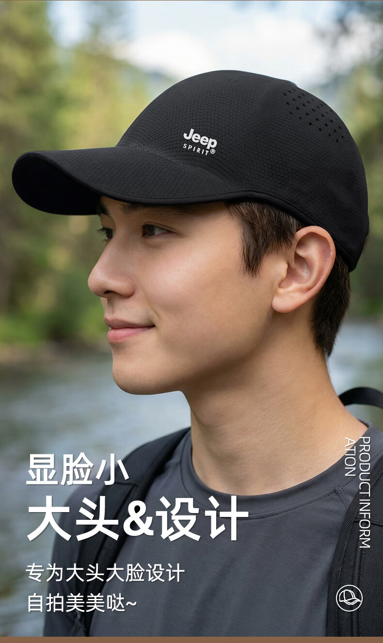 JEEP轻薄鸭舌帽棒球帽男士帽子时尚运动户外遮阳帽全脸防晒帽女防泼水 轻量化防晒棒球帽 棕色 均码