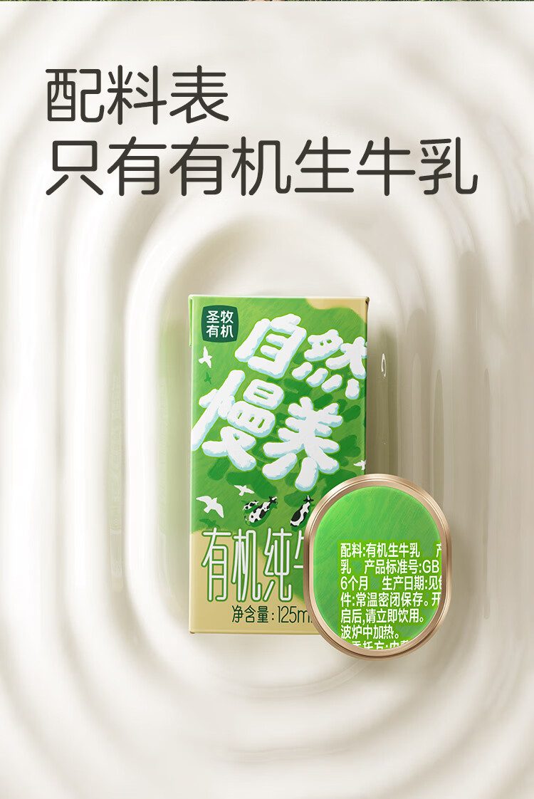 圣小牧有机纯牛奶儿童牛奶纯奶125ml/盒4.5g蛋白质含量150mg原生高钙 【99%拍2件】125ml*10盒